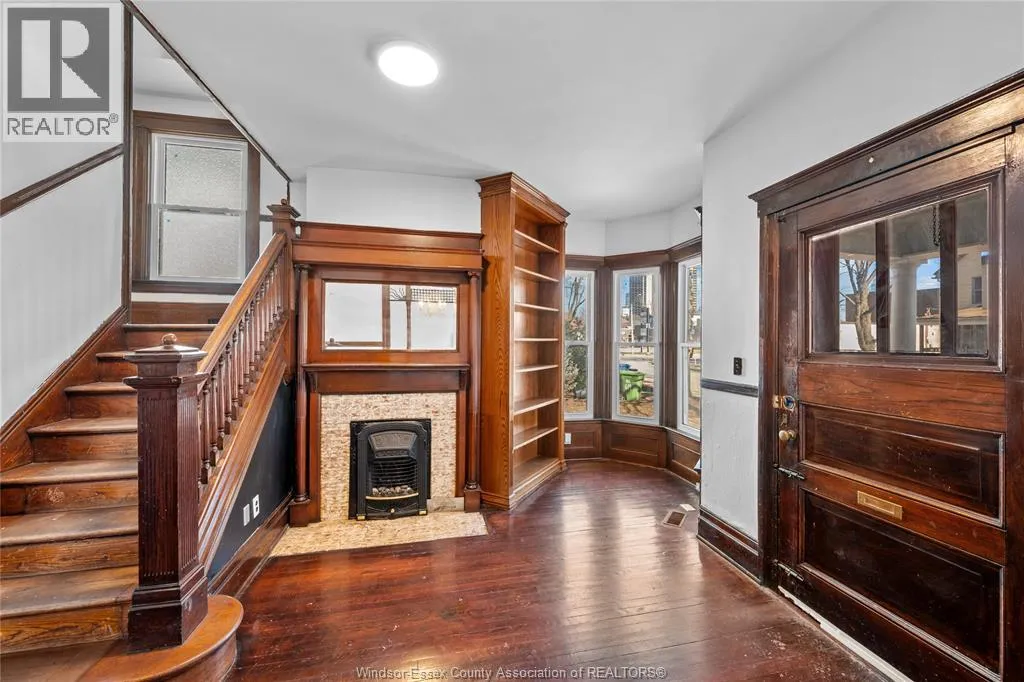 Attention Large Families & Investors! Welcome to 631 Church, an extra-large, Victorian home filled with timeless character and old-world charm. This impressive property offers deep driveway (3cars) 6 bedrooms, approximately 2,100 sq ft of living space as per MPAC, 1 full bathroom, and 2 half bathrooms (bath & powder room), making it perfect for growing families or investors. Step inside to a stunning 9 foot ceiling on main floor, foyer featuring a cozy gas fireplace, beautiful bay windows, and elegant built-in shelving a truly unforgettable first impression. The home showcases beautiful original woodworking throughout, highlighting its classic architectural charm. The full basement provides a laundry area and huge storage space, adding excellent functionality and versatility to the home. Major updates includes new light fixtures and flooring (2025) mostly new windows (2020) and roof shingles (2016). The property also backs directly onto a park, offering added privacy. (id:27476)