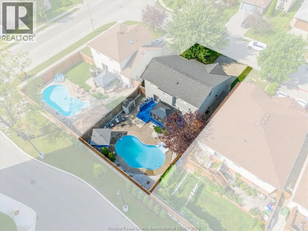 Beautiful 2-story home in highly sought-after South Windsor, built in 2001 and located near top-rated schools including Vincent Massey & Talbot Trail. Just minutes from the 401, E.C. Row, and the Windsor-Detroit border, this home offers the perfect blend of comfort and convenience. Featuring 3 +1 spacious bedrooms and 2.5 baths, the main floor boasts a bright living/dining combo, powder room, main floor laundry, and a cozy family room with fire place & kitchen perfect for entertaining. Upstairs includes 3 generous bedrooms and full bath. The fully finished basement offers family room, bedroom/office & full bath. The entertainer's dream backyard includes outdoor seating, an inground pool and professional landscaping. Lot of upgrades including painting, flooring , fence, electrical fixtures , washrooms, laundry room etc. Located in a family-friendly neighborhood close to all amenities this home checks all the boxes! (id:27476)