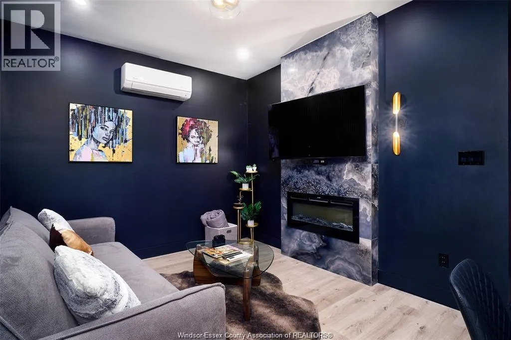 Modern luxury in the heart of historic Walkerville. This stunning 3-bedroom, 1 bathroom home, was built in 2023. Thoughtfully designed with an emphasis on sophisticated style, utility and comfort. The residence features high-end contemporary finishes throughout, including sleek flooring, designer lighting, and a chef-inspired kitchen, with dishwasher, laundry, central air conditioning and a gas fireplace. This home is perfectly suited for professionals seeking a turnkey lifestyle, with this completely furnished property. Additional features include private parking for one vehicle and proximity to Walkersville restaurants, shops and USA Tunnel. Modern construction meets premier location-schedule your private viewing today. (id:27476)