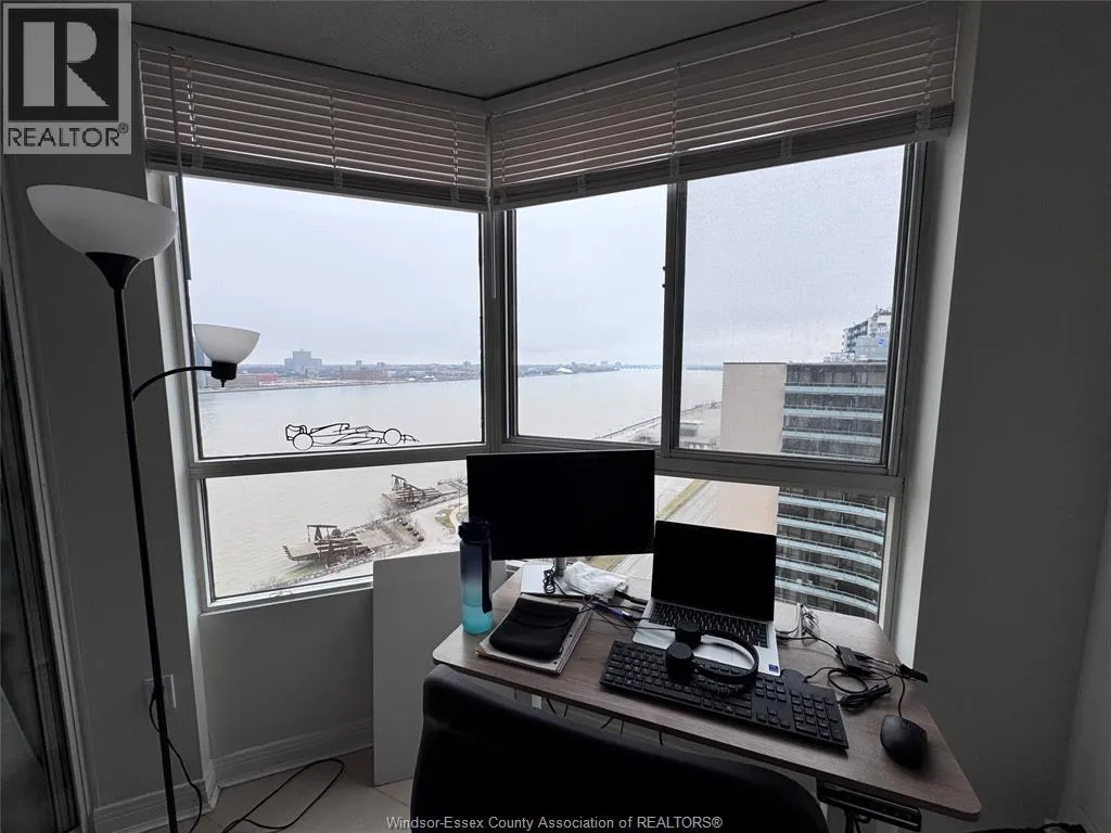 Welcome to waterfront living at its finest at 75 Riverside Drive East. This beautifully maintained and modern 2-bedroom, 2-bathroom condo offers stunning, unobstructed views of the Detroit River and skyline from the comfort of your own home. This spacious unit features a functional layout with a bright open-concept living area, large windows that flood the space with natural light, and a dedicated office/den surrounded by glass - perfect for working from home while enjoying breathtaking water views. The primary bedroom includes a private ensuite bathroom, providing both comfort and convenience. The kitchen is clean and well-maintained with ample storage, while the living and dining areas offer a warm and inviting space to relax or entertain. Residents enjoy access to premium building amenities including a rooftop terrace on the 20th floor with panoramic river views, a second outdoor terrace with BBQs on the 3rd floor, and a fully equipped fitness center. This unit also includes indoor parking for added convenience. Located in the heart of downtown Windsor along the waterfront, you are steps from walking trails, parks, restaurants, and all amenities the core has to offer. A rare opportunity to live in a highly desirable waterfront building - units like this do not come up often. (id:27476)