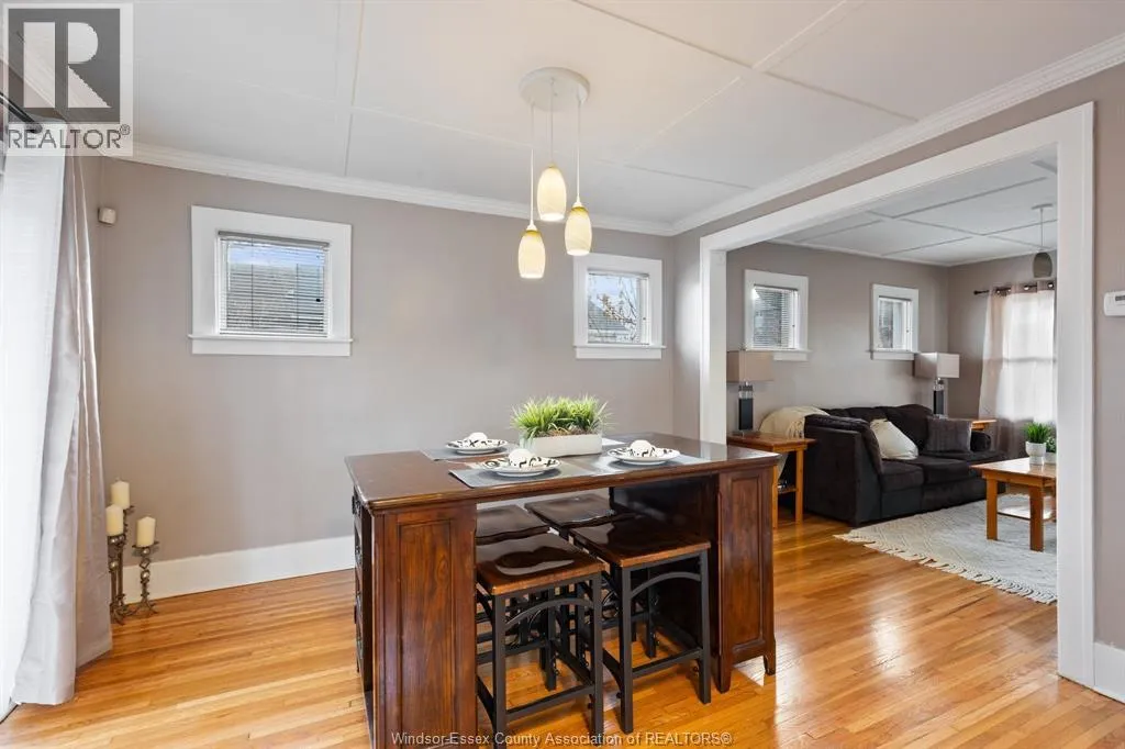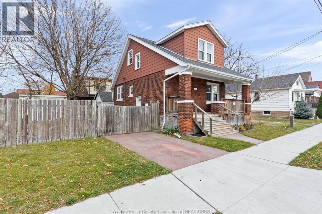 This bright and inviting home has all the essentials! A charming spacious covered front porch for morning coffee. A large foyer at the front door features a stunning wood staircase. The spacious main floor includes a sun-filled living room, dedicated dining area, well-appointed kitchen, and a convenient half bath. Gleaming newly refinished hardwood floors flow throughout the entire home. The upper level offers three bedrooms, two walk-in closets, an electric fireplace, and a full bathroom. A main floor patio door opens to a cozy private deck overlooking the large, fully fenced yard with cement patio, storage shed, and garage. Full basement for tons of storage and laundry. Updates include newer vinyl windows. roof and furnace approximately 8 years old, central air approx. 4 years old, and copper plumbing. Entire home freshly painted. All 5 appliances included! Situated in a great family neighborhood, this home blends comfort, character, and practical upgrades move-in ready and easy to enjoy. Perfect lot for adding an additional dwelling unit for income! (id:27476)