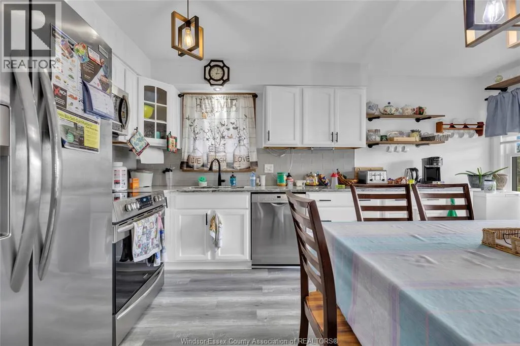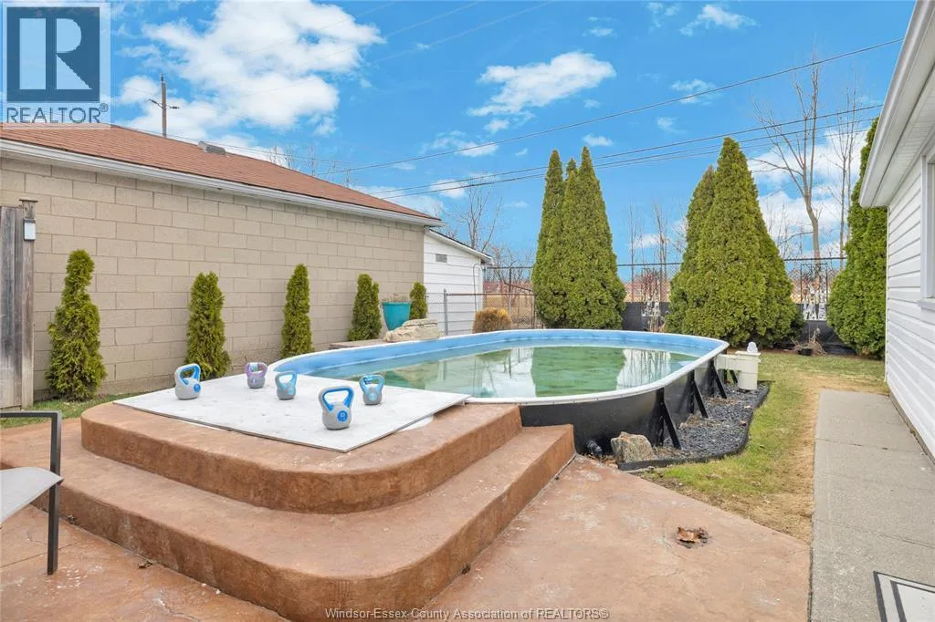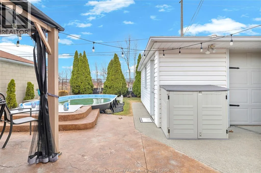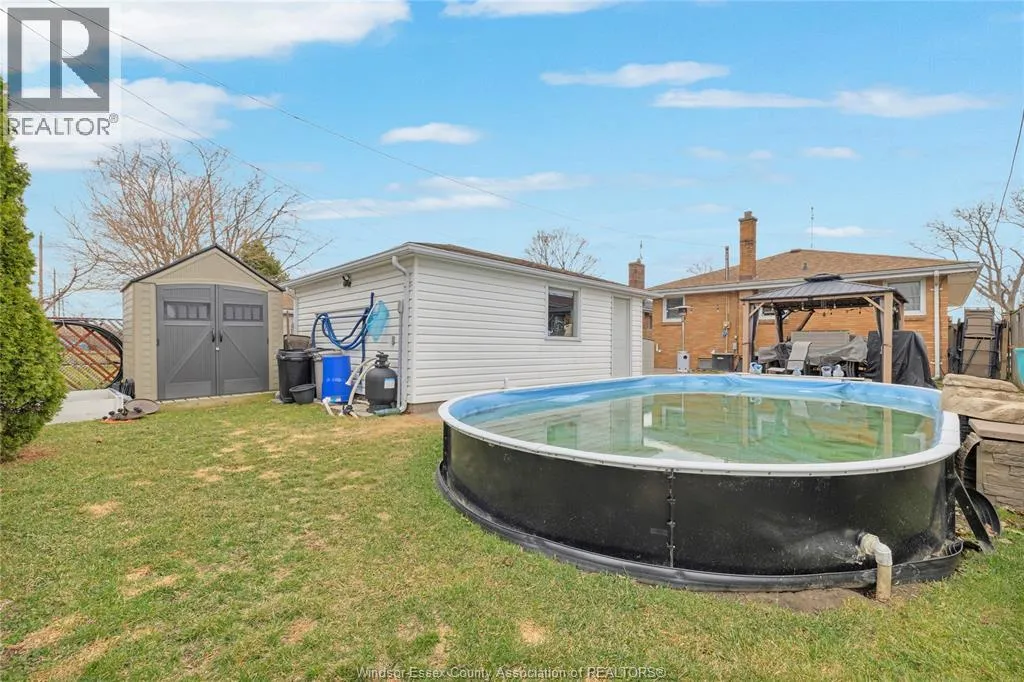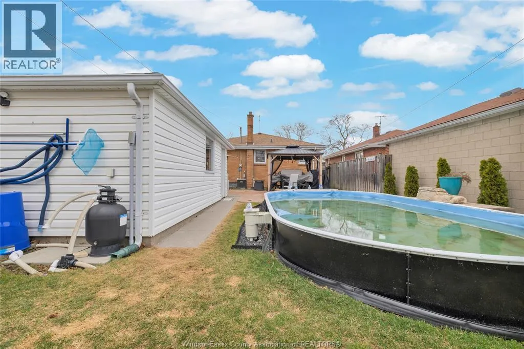Trendy and tastefully renovated brick ranch perfect for entertaining! This gorgeous home features amazing curb appeal, open floor plan, large eat in kitchen (2020) with ample cabinetry, natural light and beautifully appointed upgrades. 3 beds on main plus a full bath(2020). No rear neighbours backing onto Ford test track, fully fenced in backyard with detached 1.5 car garage and on ground pool with waterfall (2020), stamped concrete and gazebo(2021). Finished bsmt with family room, storage with built in shelving and second full bathroom. Home is accessible with ramp and custom front door. close to schools, shopping, walking trails, parks. (id:27476)