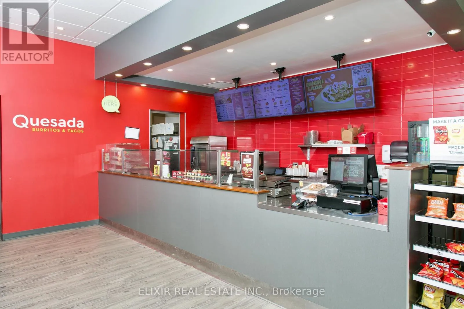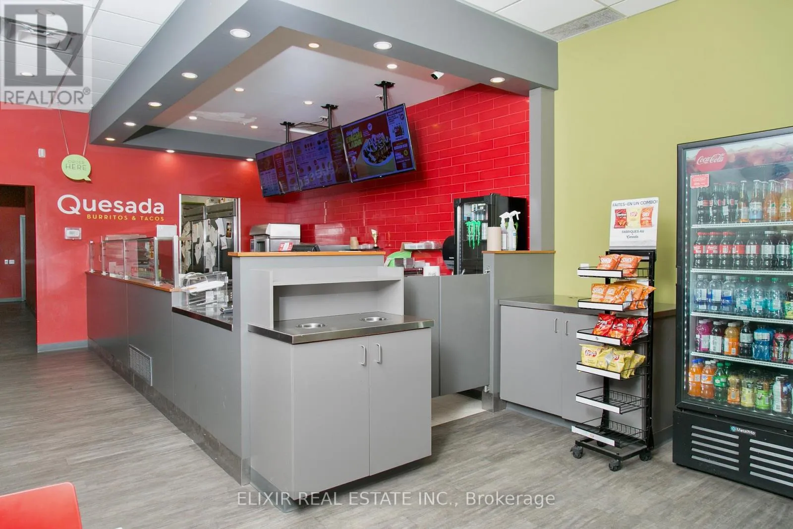Ouellette Ave / University Ave W Turnkey Quesada Burritos & Tacos franchise available in prime downtown Windsor. Located on one of the city's busiest commercial corridors, this high-visibility site benefits from strong pedestrian traffic, nearby offices, residential density, nightlife, and major retail, ensuring consistent customer flow. Successfully operating since 2017, this well-established business offers stable weekly sales of approx. $5,000 with steady year-over-year performance and a loyal customer base. Rent is highly attractive at approx. $1,832/month including TMI (excluding HST), making it a cost-efficient operation with strong upside potential. Backed by a recognized national brand, the business features streamlined operations, franchise support, and a fully equipped turnkey setup including kitchen, prep, and service areas. Ideal for both experienced operators and first-time buyers seeking a proven business in a prime location. (id:27476)