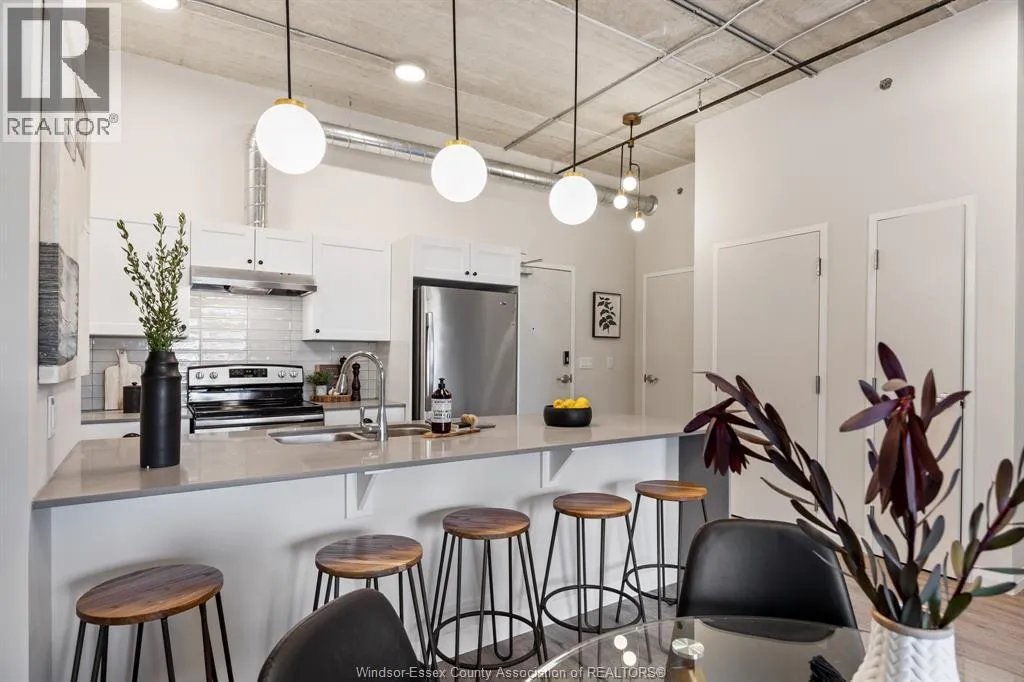 Lauzon Parkway to Forest Glade Dr to Meadowbrook Lane. Main floor convenience, a sunny southern exposure and your own patio that allows a BBQ! Your carefree lifestyle awaits. Luxury can be affordable too! 3 year new extraordinary loft apartments. The quality of construction will certainly impress. Block and concrete construction helps afford peaceful living. Popular Forest Glade community. Close to new Battery Plant and Amazon Warehouse. Short walk to bus stop, park, arena, pickleball courts and schools. Grocer 2 km away. Inside enjoy countless upgrades. Bright, open concept interior. Soaring 12 ft ceilings and massive windows. Gorgeous designer kitchen. Quartz counters. Luxury vinyl and ceramic floors. Sizable in suite laundry with sink. Upgraded lighting. 5 new appliances. Advanced security features. Individual forced air gas heating, c/air & HRV units. EV charging. New BBQ pavilion. 1 designated parking included at no charge. Rent does not include utilities. 1 yr min term with first and last. Note: photos are of our staged identical layout model unit. Paint colours vary. Call now! (id:27476)