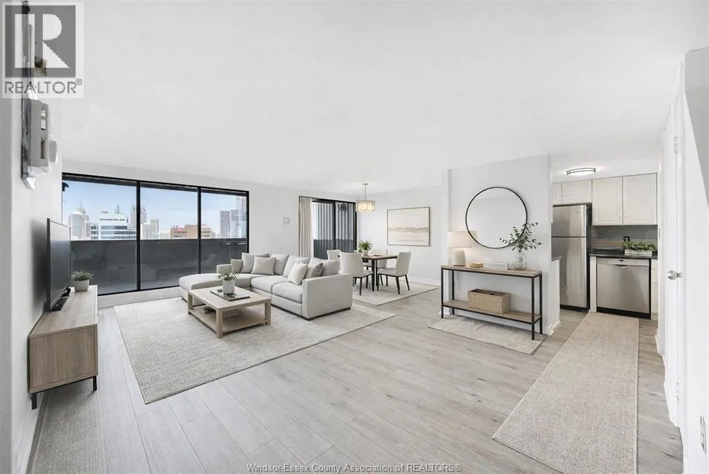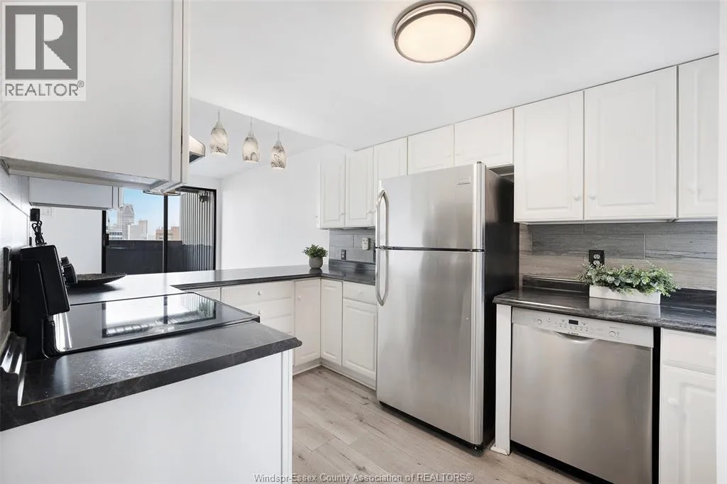 **RARE FIND** THIS EXECUTIVE, NORTH-FACING 2 STORY CONDO IS A VERY RARE FIND, BOASTING STUNNING VIEWS OF THE WATER AND AN IMPRESSIVE PANORAMA OF BOTH WINDSOR AND DETROIT SKYLINES. FEATURING 2 SPACIOUS BEDROOMS AND 2 BATHROOMS, INCLUDING A CONVENIENT MAIN FLOOR POWDER ROOM, THIS HOME COMBINES LUXURY WITH FUNCTIONALITY. THE LARGE OPEN-CONCEPT LIVING AND DINING AREA IS FLOODED WITH NATURAL LIGHT FROM AN EXPANSIVE WALL OF WINDOWS AND A PATIO DOOR, WHICH LEAD TO A PRIVATE BALCONY - PERFECT FOR ENJOYING SUNSETS AND FIREWORKS OVER THE WATER. THE WELL-APPOINTED KITCHEN OFFERS AMPLE CABINETRY, GENEROUS COUNTER SPACE, 3 APPLIANCES AND A WINDOW FOR ADDED BRIGHTNESS. UPSTAIRS BOTH BEDROOMS SHOWCASE BEAUTIFUL VIEWS OF THE WATER, WHILE A COZY LOUNGE AREA CREATES THE IDEAL SPACE TO UNWIND WITH A GOOD BOOK. THERE IS ALSO AN OFFICE NOOK, CATERING TO ALL YOUR WORK FROM HOME NEEDS. ANOTHER AMAZING FEATURE OF THIS CONDO IS THE OPTION TO ENTER OR EXIT FROM BOTH THE 16TH OR 17TH FLOOR, OFFERING ADDED CONVENIENCE AND VERSATILITY TO YOUR EVERYDAY LIVING. YOUâLL LOVE THIS RESORT STYLE BUILDING WITH TONS OF AMENITIES THAT INCLUDE AN INDOOR HEATED POOL, CAR WASH STATION, ELEVATOR, FITNESS CENTRE, PARTY ROOM, RACQUET COURTS, RECREATION CENTRE AND A ROOFTOP TERRACE. THIS EXCEPTIONAL CONDO COMBINES STYLE, COMFORT, AND PRACTICALITY, ENSURING YOU EXPERIENCE A LIFESTYLE THAT TRULY RISES ABOVE THE ORDINARY. (id:27476)