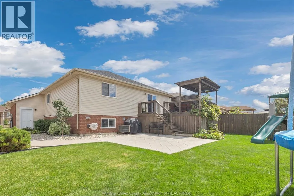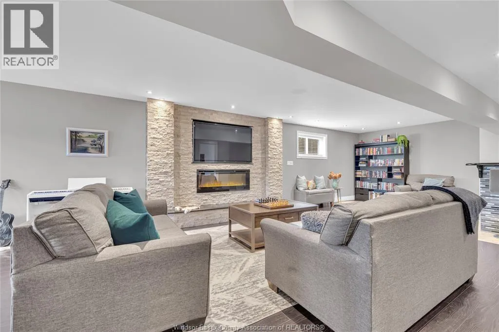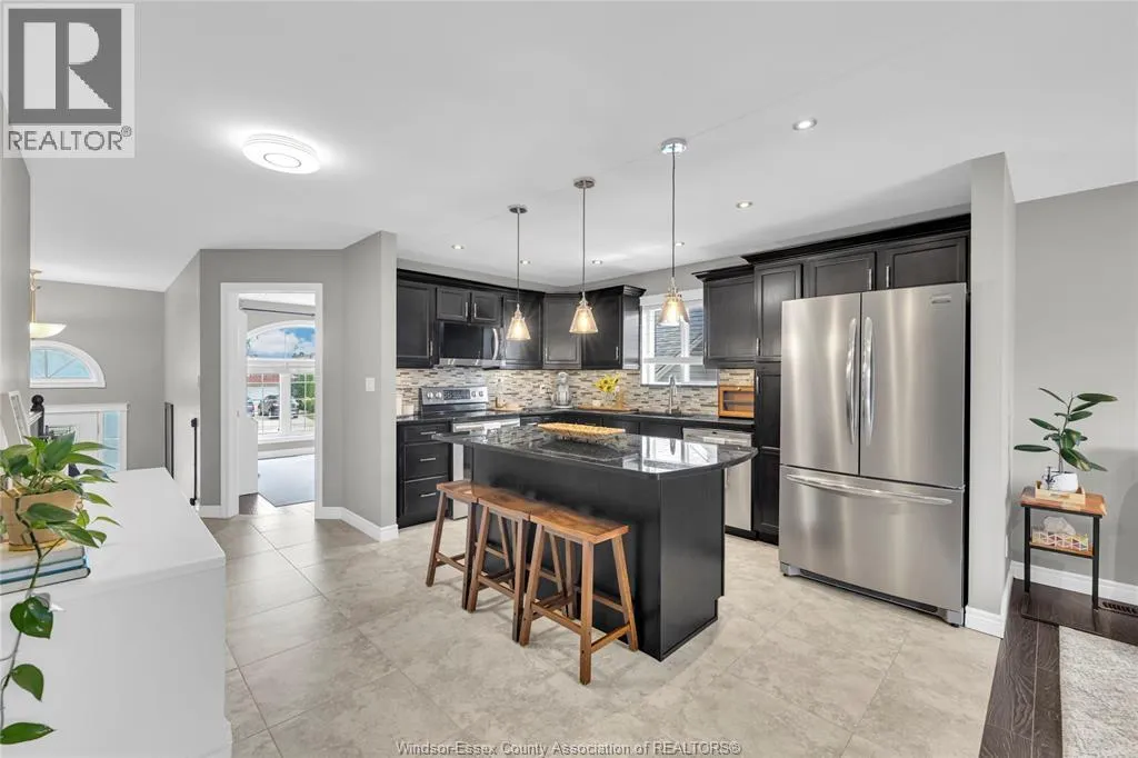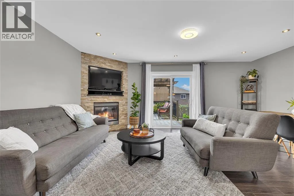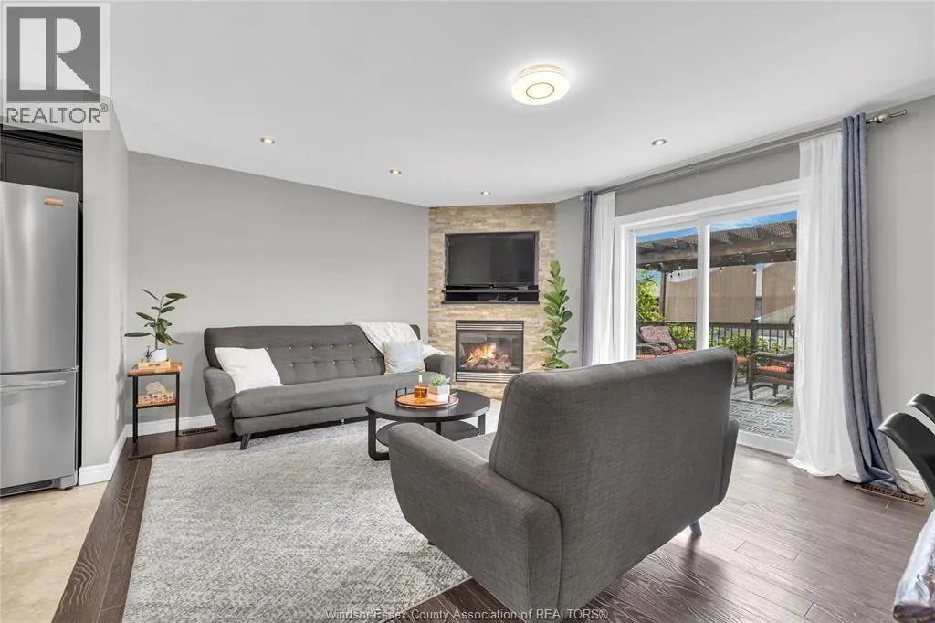 Fully finished, stylish raised ranch offering comfort & modern charm. This 3+1 bedroom and 2 full updated baths. Step into luxury with in-floor heating in all upper level wet areas, newer windows (2016) providing plenty of sunlight. Newer roof (2023) and tankless owned water heater (2017) Beautiful kitchen with centre island and granite countertops that opens to inviting living room with plenty of room for family gatherings. The lower level is designed for relaxation and entertaining boasting custom cultured stone fireplace with built-in 60"" Panasonic smart tv, additional bedroom and separate bar area. The exterior is just as impressive with fully fenced yard complete with a lovely deck draped in grape vines creating a private & picturesque retreat and stamped concrete 16x16 patio. Double garage and stamped concrete 3 car wide driveway. Move-in ready and polished throughout, this home is a true East Windsor gem! (id:27476)