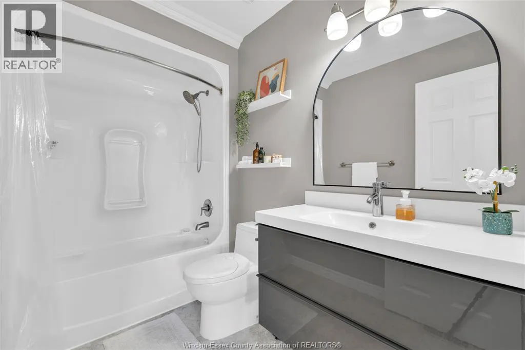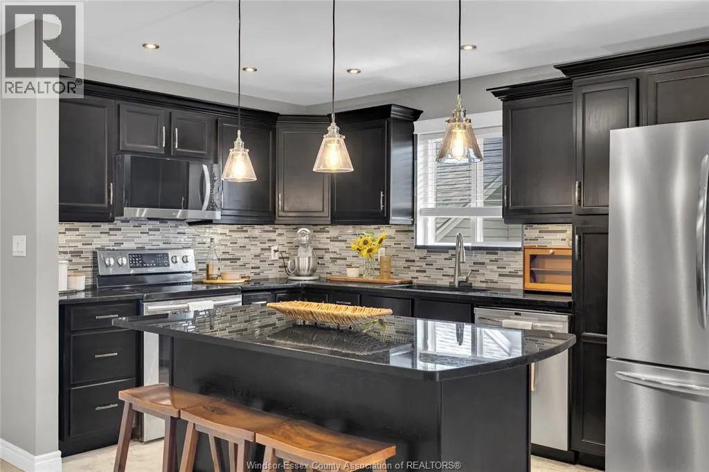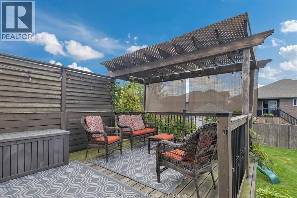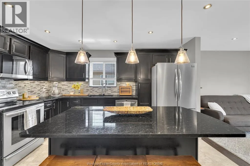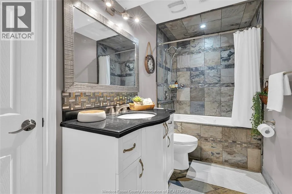 Fully finished, stylish raised ranch offering comfort & modern charm. This 3+1 bedroom and 2 full updated baths. Step into luxury with in-floor heating in all upper level wet areas, newer windows (2016) providing plenty of sunlight. Newer roof (2023) and tankless owned water heater (2017) Beautiful kitchen with centre island and granite countertops that opens to inviting living room with plenty of room for family gatherings. The lower level is designed for relaxation and entertaining boasting custom cultured stone fireplace with built-in 60"" Panasonic smart tv, additional bedroom and separate bar area. The exterior is just as impressive with fully fenced yard complete with a lovely deck draped in grape vines creating a private & picturesque retreat and stamped concrete 16x16 patio. Double garage and stamped concrete 3 car wide driveway. Move-in ready and polished throughout, this home is a true East Windsor gem! (id:27476)