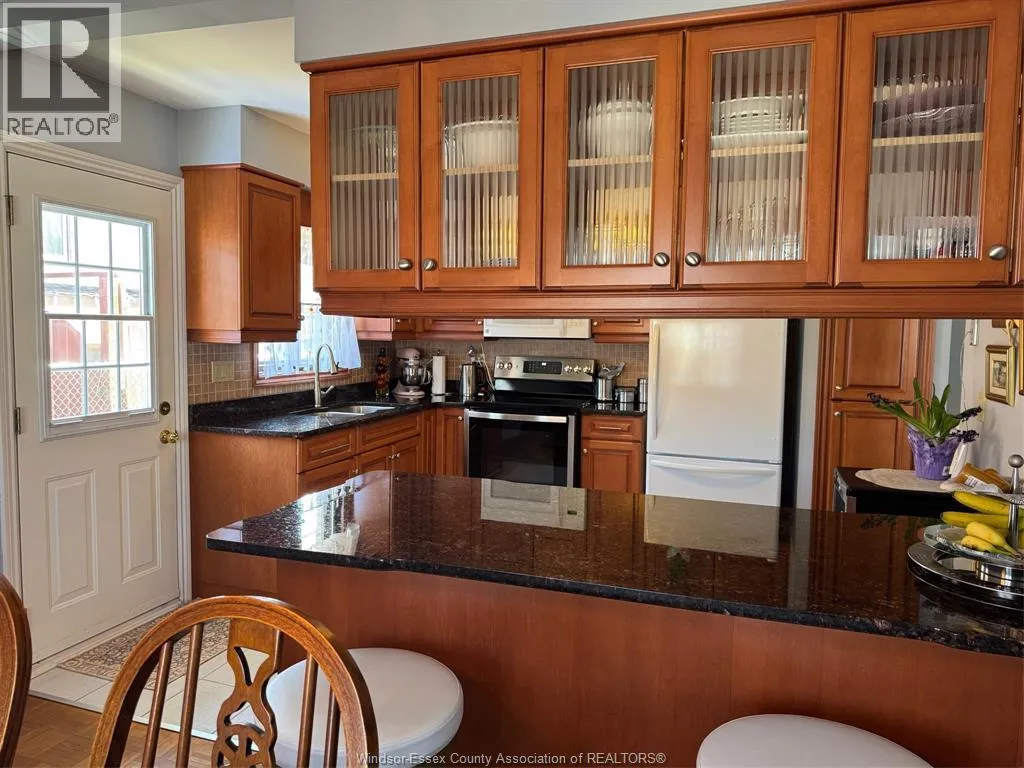 LAUZON RD TO LILAC TO ESPLANADE Beautiful three level back split in prime location of Forest Glade, close to shopping and conveniences. This home features a large living room and dining room, expertly updated kitchen with granite counters and fridge, stove and dishwasher. The second level has three bedrooms and a 4 piece bath. The lower level has a huge family room with lots of light and a gas fireplace, a 3 piece bath, a walk-in sauna and laundry with washer and dryer and storage. The crawl space has lots of room for storage. Large fenced year and a huge concrete driveway for 5 cars! (id:27476)