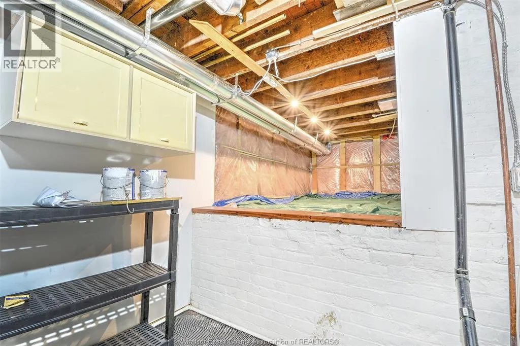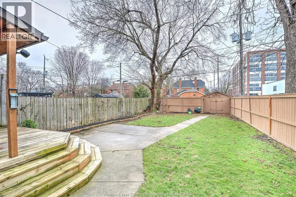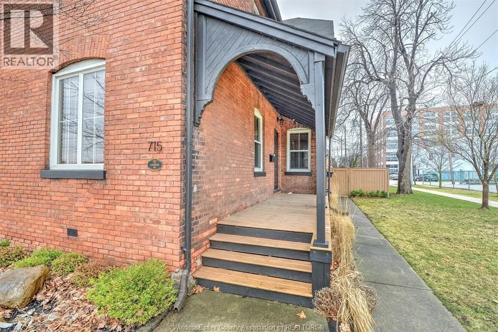 Step into this charming and historically significant 2-storey home, originally built by Hiram Walker. Blending old-world character with modern updates, this turn-of-the-century gem still features exposed brick, a classic covered front porch, hardwood floors, and a rare double staircase. The main floor offers a spacious open-concept living and dining area, a bright office or den that could also serve as a third bedroom, a renovated kitchen with new appliances, and a convenient powder room. Upstairs, youâll find two bright bedrooms, a full bathroom with a beautiful stand-up shower, and laundry. Zoned for commercial and/or residential use, this property offers great potential for live/work flexibility. The backyard is fully fenced and landscaped with a covered deck, two parking spaces, and a wired storage shed ready for an EV charging station. (id:27476)