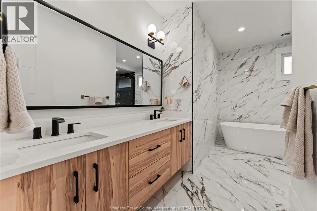 Stunning newer-built luxury home in sought-after South Windsor! Built in 2022, this impressive 2-storey residence offers approximately 3,500 sq ft of refined living space plus a beautifully finished basement. Step inside to a bright, airy great room featuring soaring ceilings, expansive windows, and a striking fireplaceâperfect for both relaxing and entertaining. The open-concept layout flows seamlessly into a designer kitchen complete with sleek cabinetry, premium finishes, and a large island overlooking the dining and living areas. The upper level boasts 4 generously sized bedrooms and 3 full baths, including two private ensuites, along with the convenience of a second-floor laundry room. Elegant hardwood and tile flooring run throughout, adding a modern, cohesive feel. The fully finished basement offers exceptional versatility with a separate grade entrance, additional bedroom, and a cozy living area with fireplaceâideal for extended family or potential in-law suite. Enjoy outdoor living at its finest with a spacious covered back porch and a fully fenced, well-maintained yardâperfect for year-round enjoyment. Double driveway and dual-zone upgraded HVAC system provide added comfort and efficiency. Located within walking distance to Bellewood School (English & French immersion) and nearby parks, and just minutes to the US border and Universityâthis home offers the perfect blend of luxury, convenience, and top-tier education. (id:27476)