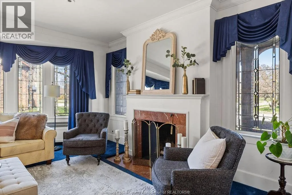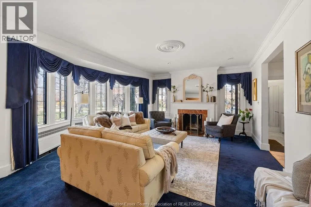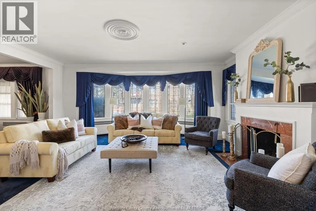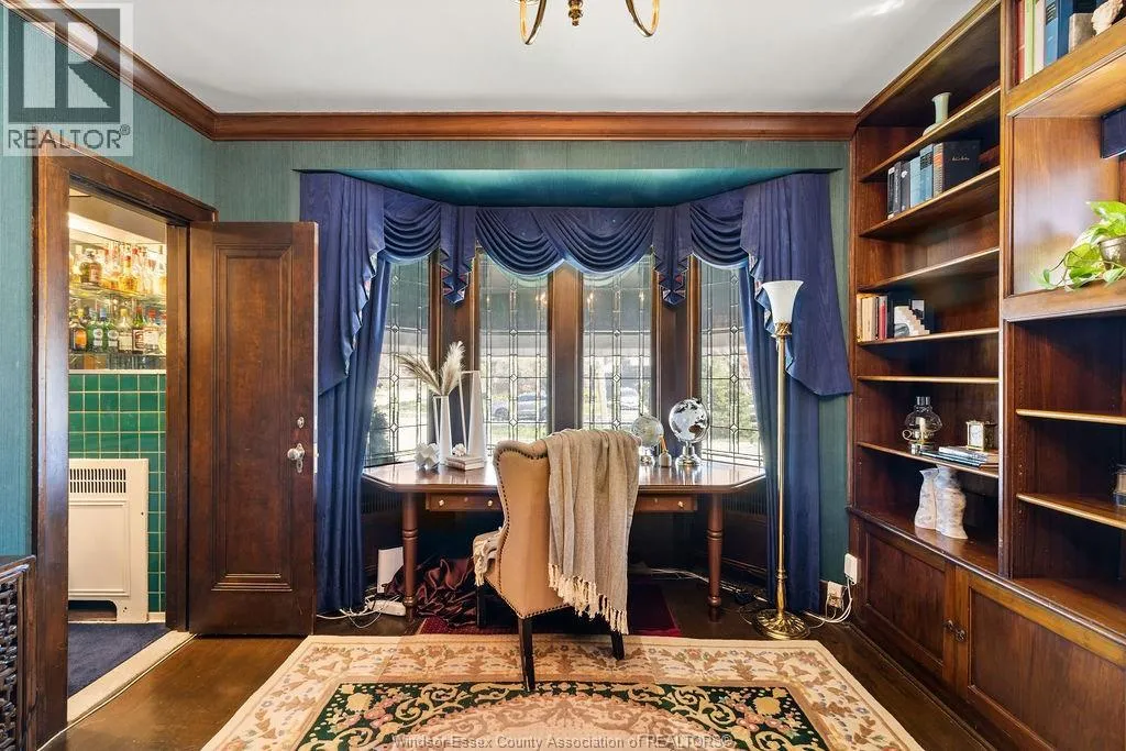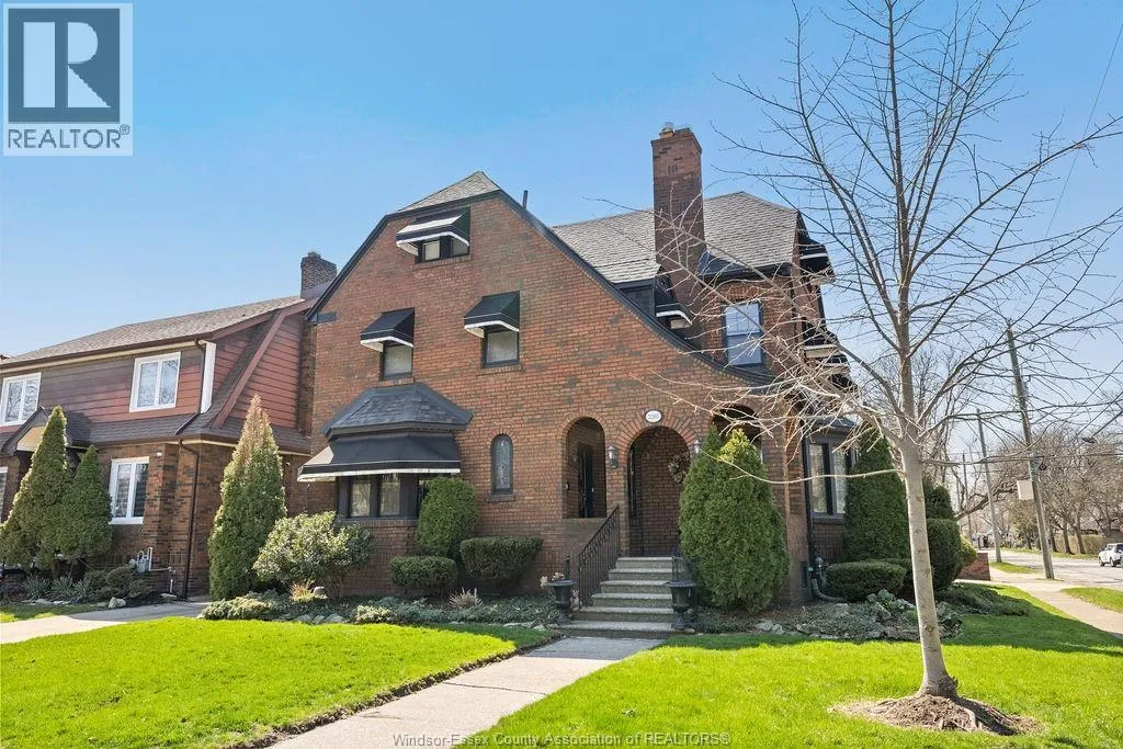 Timeless 2 and a half storey historic home in the heart of Windsor! Featuring 5 bedrooms and 3.5 baths, this well-maintained property offers a spacious living room with natural fireplace, formal dining room, eat-in kitchen, powder room, and main floor office with wet bar. The second level includes a large primary suite with fireplace & 5pc. ensuite, plus 3 bedrooms and a 4pc. bath. Third floor adds a bonus bedroom and 3pc. bath. Finished lower level with sizeable laundry room, games room with bar, and ample storage. Fully fenced yard, detached 2-car garage and side drive(2018). Alarm & sprinkler system. Original hardwood under carpet. Listed on Windsor's Municipal Heritage Register. Close to U.S. border, shopping, parks & trails. (id:27476)