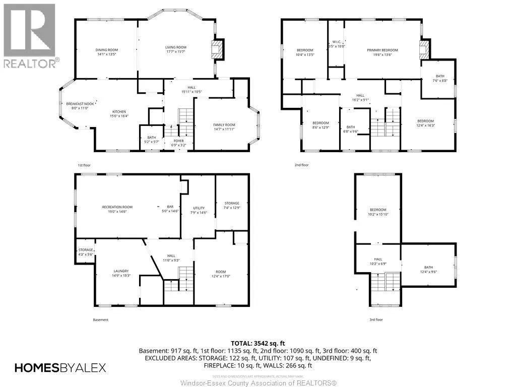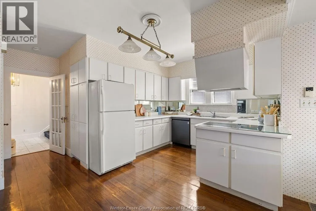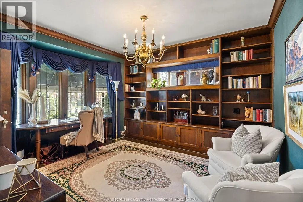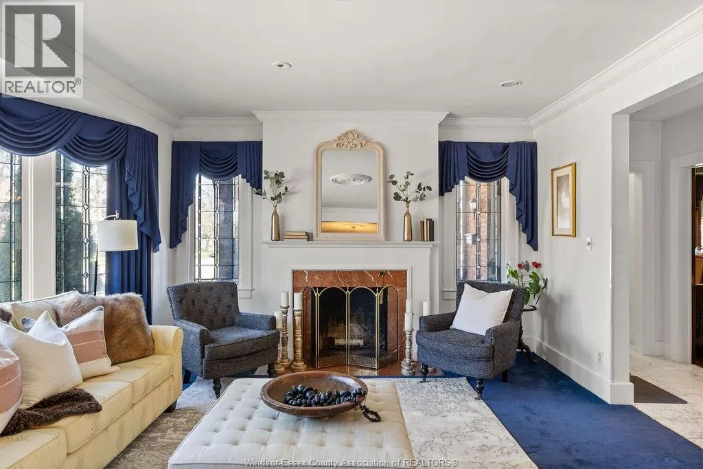 Timeless 2 and a half storey historic home in the heart of Windsor! Featuring 5 bedrooms and 3.5 baths, this well-maintained property offers a spacious living room with natural fireplace, formal dining room, eat-in kitchen, powder room, and main floor office with wet bar. The second level includes a large primary suite with fireplace & 5pc. ensuite, plus 3 bedrooms and a 4pc. bath. Third floor adds a bonus bedroom and 3pc. bath. Finished lower level with sizeable laundry room, games room with bar, and ample storage. Fully fenced yard, detached 2-car garage and side drive(2018). Alarm & sprinkler system. Original hardwood under carpet. Listed on Windsor's Municipal Heritage Register. Close to U.S. border, shopping, parks & trails. (id:27476)