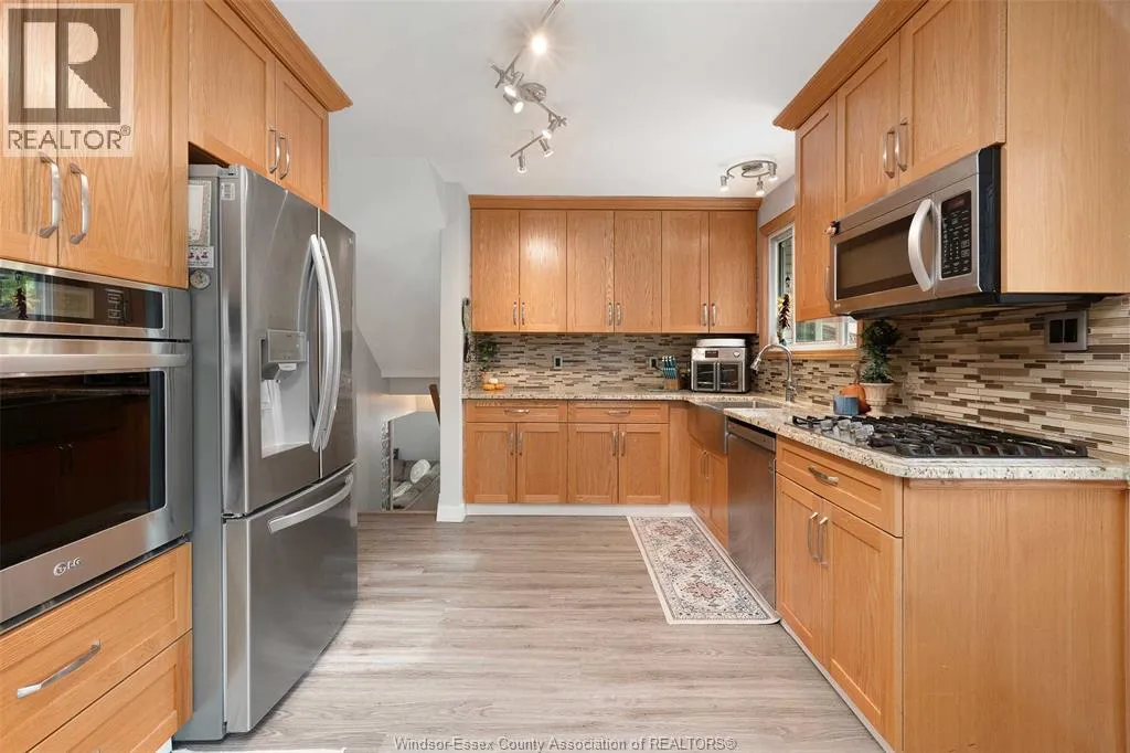 Welcome to 341 Genevieve!!! Brick & Stucco 4 level with bonus room addition, 4 bedroom, 3 bath, sitting on a huge 60'X 167' lot in sought after East Riverside. The main level features a spacious oak kitchen with granite counters, gas cooktop, built in oven, open concept living room/dining room with lots of natural light. On the 3rd level you with find 3 bedrooms with built in closets and a 4 pcs. bath. The large primary bedroom is located in the bonus room addition and features a 4 pcs. ensuite and large walk-in closet. The 3th level features a large family room with gas fireplace, built in entertainment center, computer area and a updated 3 pcs. bath. In the 4th level you will find a rec. room, laundry room with storage and a cold room. Outdoor features include a large detached 24'X 30' garage, swimming pool with sundeck, large patio with pergola, outdoor fireplace, 2 ponds, storage shed and extensive landscaping. (id:27476)