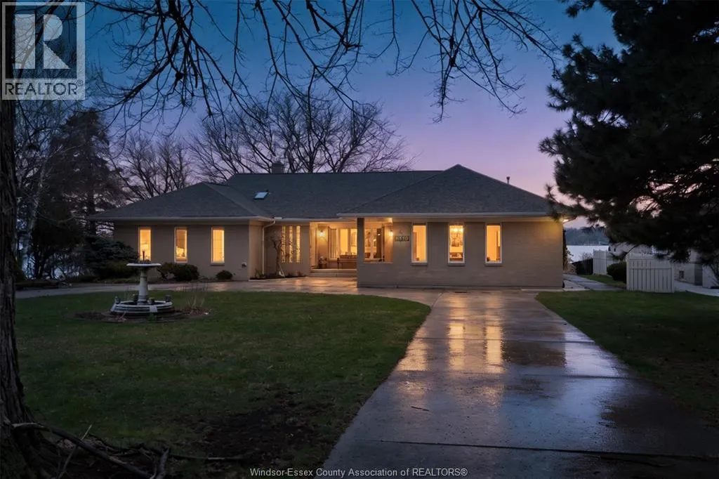 Panoramic Luxury Meets Parkside Serenity Discover an unparalleled waterfront lifestyle at 4470 Riverside Drive East, a stunning ranch-style residence situated on one of Windsorâs most coveted stretches of land. Boasting 100 feet of prime river frontage, this property offers a rare combination of expansive lot size, privacy, and unobstructed, sweeping views of the Detroit River, the iconic city skyline, and the lush greenery of Belle Isle. This home features a spacious and functional layout designed to maximize its world-class location: 3 Generous Bedrooms and 3 Bathrooms. Large formal living and dining rooms flow seamlessly into an oversized family room and a bright, airy sunroomâperfect for morning coffee while watching the ships pass by. Fully finished basement provides additional living space, ideal for a home theatre, gym, or guest suite. Nestled directly next to Goose Bay Park, ensuring no neighbours to the west and a permanent connection to nature. Features a solid breakwall (seawall rebuilt in 2019) providing peace of mind and protection for your shoreline. A circular driveway leads to an oversized 2.5-car heated garage, offering ample space for vehicles and a workshop. Equipped with a full-home backup generator. Professional sprinkler system fed directly from the river. Specifically situated to capture the vibrant sunsets over the Detroit skyline. 4470 Riverside Drive isn't just an address; itâs a front-row seat to the best Windsor has to offer. Enjoy immediate access to the waterfront trail system, local yacht clubs, and the refined dining of the East Windsor corridor. (id:27476)