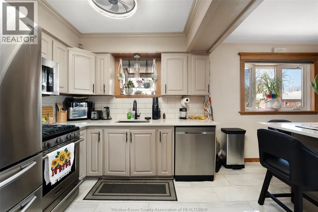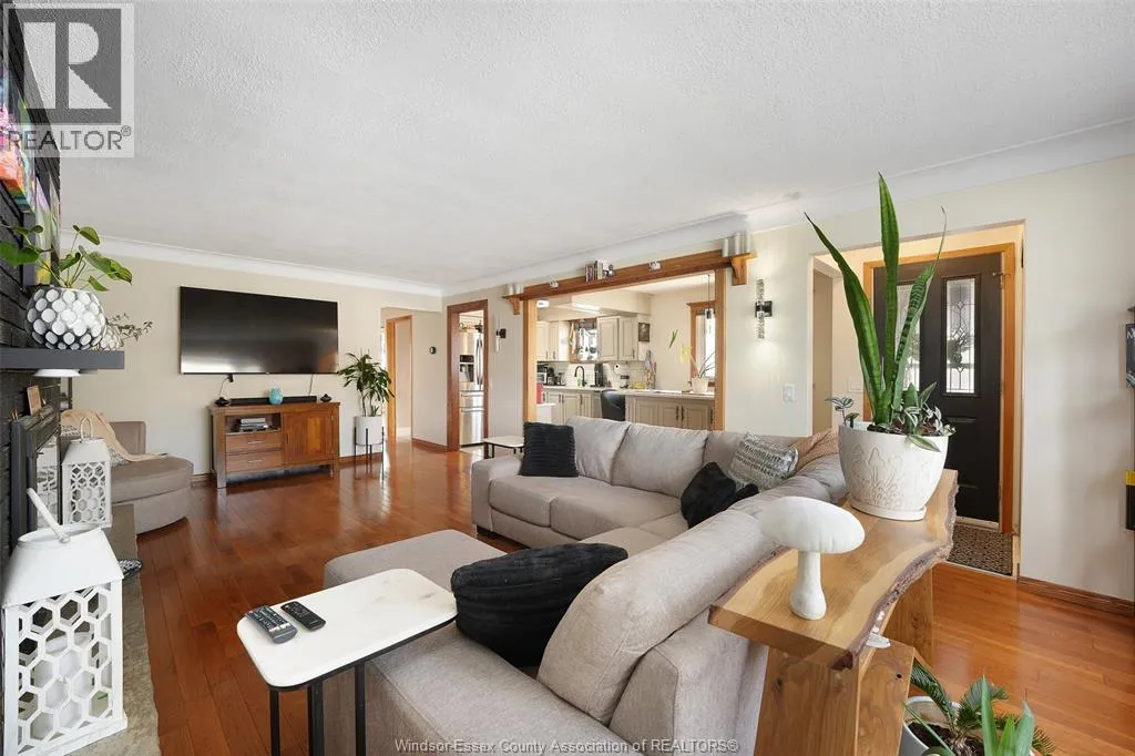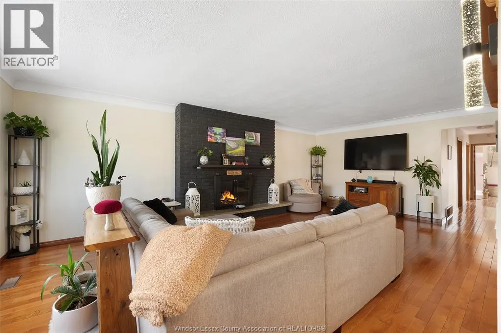 Welcome to 845 Glidden, a standout home in Windsorâs desirable Riverside community. Offering a functional and spacious layout, this property features 4 bedrooms (3 on the upper level and 1 on the lower) along with 2 full bathrooms, making it ideal for families of all sizes. The main floor welcomes you with a bright and comfortable living space complete with a natural fireplace, flowing seamlessly into a dining area finished with beautiful hardwood flooring. The lower level is fully finished, providing additional living space, a full bathroom, and plenty of room for storage, recreation, or a potential in-law setup. Located in a quiet, established neighbourhood, this home is just moments from the scenic Detroit River, with walking trails, parks, and outdoor amenities right at your doorstep. (id:27476)