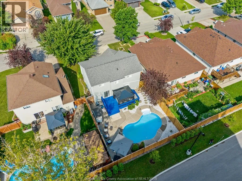 Beautiful 2-story home in highly sought-after South Windsor, located near top-rated schools including Vincent Massey & Talbot Trail. Just minutes from the 401, E.C. Row, and the Windsor-Detroit border, delivering space, comfort & functionality across all three levels. Featuring 3+1 spacious bedrooms and 2.5 baths, the main floor boasts a bright living/dining combo, powder room, main floor laundry, and a cozy family room with fireplace & kitchen perfect for entertaining (bar is movable) . Upstairs includes 3 generous bedrooms and full updated bath. The fully finished basement offers family room, bedroom /office & full bath. The entertainer's dream backyard includes outdoor seating, an inground pool, and professional landscaping. Located in a family-friendly neighborhood close to all amenities this home checks all the boxes! Notable updates & features include: air conditioner & furnace (5 years) , laundry room (2024) , fence (2024), basement (2024) , electrical fixtures (2024) furnace & hot water tank (2016), shed (2017), front door (2019) , all updated light fixtures. Nothing left to do, but enjoy this wonderful home. (id:27476)