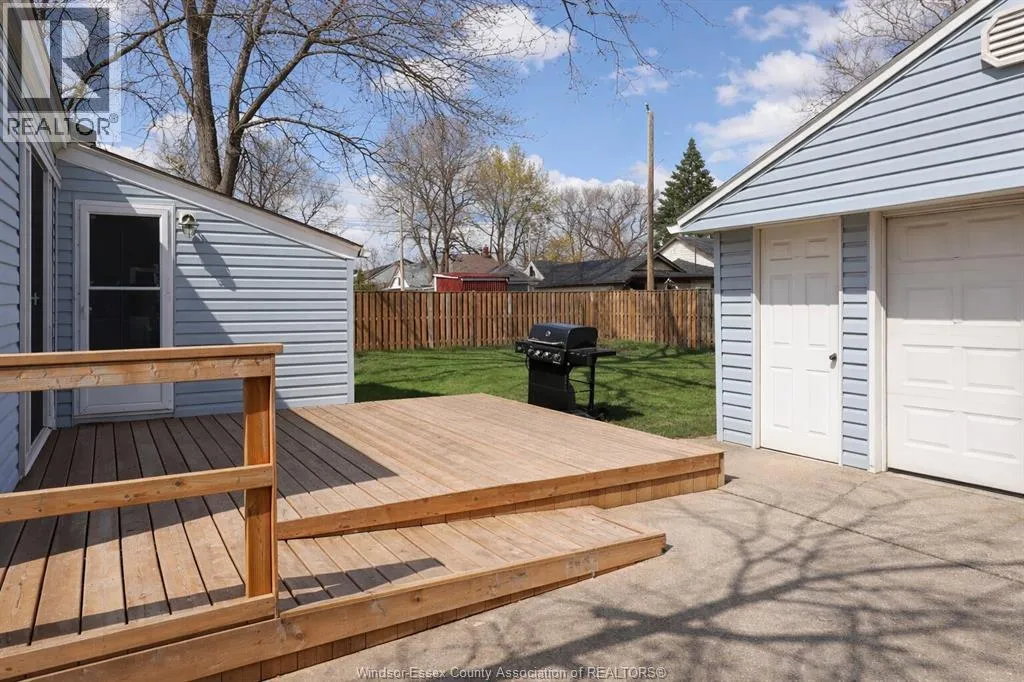 This 1 and a half storey home situated on a double lot features 4 bedrooms, and 1 bathroom. An ideal match for first-time homebuyers or young families looking for a solid investment in a friendly, convenient neighbourhood. The upper level has been recently painted and updated with new flooring. The single car garage features a newer roof (2024) offering excellent storage or workshop potential. The newly installed back deck (2024) is perfect for summer BBQs while overlooking a fully fenced backyard which is a safe and private space for children and pets to play. Situated in a prime Windsor location, this home keeps you connected to everything you need such as schools, public transportation, and shopping. (id:27476)