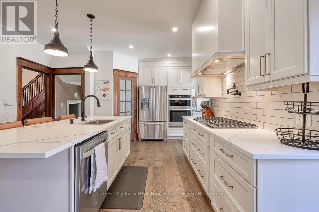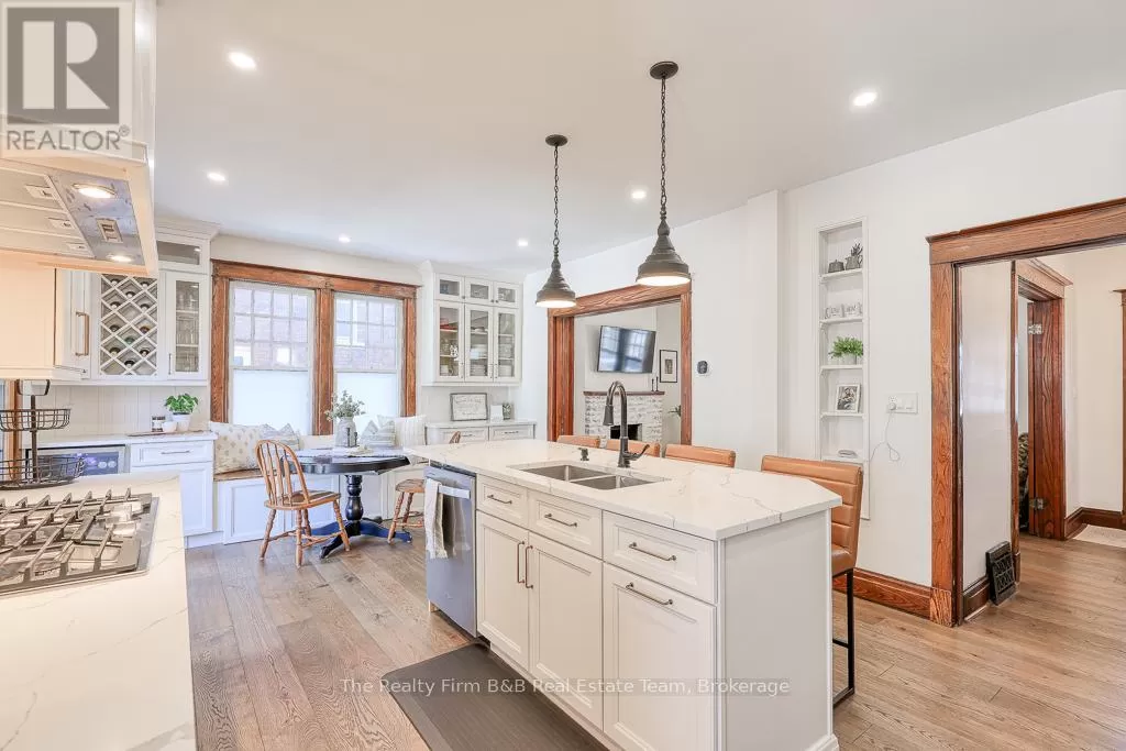 Cross Streets: Ingersoll Ave and Delatre St. ** Directions: Head north on Vansittart Avenue from Dundas turn left on Ingersoll Avenue house will be on the Right. Welcome to 285 Ingersoll Ave, in Woodstock, offering the perfect blend of century charm and modern luxury! A beautifully updated century home that seamlessly combines timeless century details with contemporary comforts. Situated in one of the finest areas with beautiful parks,schools and trails. This 2.5-storey brick home features 4 bedrooms, 2 full bathrooms an incredible brand new eat-in kitchen with ample countertop, cupboard and pantry space, built-in stainless-steel appliances, quartz counter tops, built-in wine rack and pot filler faucet. You will find new hardwood flooring throughout, updated bathroom, fully finished basement with gas fireplace! Outside find a large lot with mature trees basically your own park, storage shed and detached garage as well as a fabulous covered front porch to enjoy lovely evenings! This home offers so much space for families both inside and outside, located near schools, parks, shopping and more! Don't miss seeing it for yourself today! (id:27476)