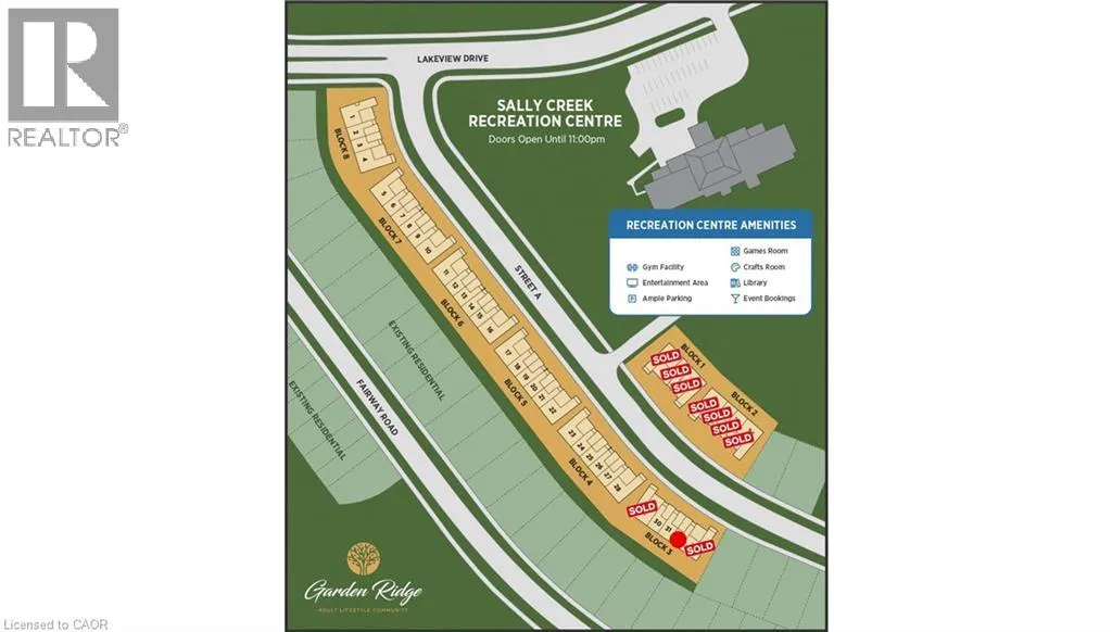 Lakeview Drive to Garden Court Crescent Welcome to Garden Ridge by Sally Creek Lifestyle Homes â a vibrant FREEHOLD ADULT/ACTIVE LIFESTYLE COMMUNITY for 55+ adults, nestled in the highly sought-after Sally Creek neighborhood of Woodstock. Living here means enjoying all that the city has to offer â local restaurants, shopping, healthcare services, recreational facilities, and cultural attractions, all just minutes from home. This FULLY FINISHED AND AVAILABLE NOW freehold, walkout bungalow offers 1845 square feet of beautifully finished total living space â thoughtfully designed for comfort, style, and ease. Inside, you'll love the soaring 10-foot ceilings on the main floor and 9-foot ceilings on the lower level, along with large transom-enhanced windows that flood the home with natural light. The kitchen features extended-height 45-inch upper cabinets with crown molding, quartz countertops, and high-end finishes that balance beauty with function. Luxury continues throughout with engineered hardwood flooring, 1x2 ceramic tiles, three full bathrooms, and a custom oak staircase accented with wrought iron spindles. Recessed pot lighting adds a polished, modern touch. Enjoy the added bonus of a fully finished walkout basement featuring a spacious recreation room, bedroom, and full bathroom. Walk out directly to your private yard, perfect for relaxing or entertaining. Plenty of natural light makes this lower level feel just as welcoming as the main floor. Just move in and enjoy! As a resident of Garden Ridge, you'll have exclusive access to the Sally Creek Recreation Centre â complete with a party room and kitchen, fitness area, games and craft rooms, a cozy lounge with bar, and a library â perfect for socializing or relaxing. You'll also be just a short walk from the Sally Creek Golf Club, making it easy to stay active and connected in every season. Don't miss your opportunity to be part of this warm, friendly, and engaging 55+ community. Quick closing available. (id:27476)