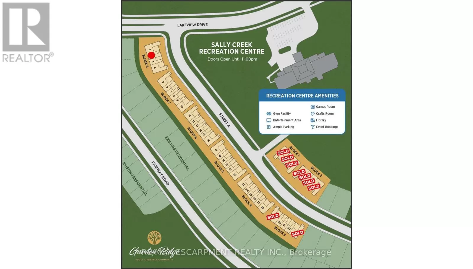 Cross Streets: Lakeview Drive. ** Directions: Lakeview Drive to Garden Court Crescent. Welcome to Garden Ridge by Sally Creek Lifestyle Homes a vibrant FREEHOLD ADULT / ACTIVE LIFESTYLE COMMUNITY for 55+ adults, nestled in the highly sought-after Sally Creek neighborhood. Living here means enjoying all that Woodstock has to offer local restaurants, shopping, healthcare services, recreational facilities, and cultural attractions, all just minutes from home. This to-be-built stunning DIAMOND freehold unit bungalow offers 1,100 sq. ft. of beautifully finished, single-level living thoughtfully designed for comfort, style, and ease. Enjoy the spadous feel of soaring 10-foot ceilings on the main floor and 9-foot ceilings on the lower level, paired with large transom-enhanced windows that fill the space with natural light. The kitchen features extended-height 45-inch upper cabinets with crown molding, elegant quartz countertops, and stylish high-end finishes that balance beauty with function. Luxury continues throughout the home with engineered hardwood flooring, chic 1x2 ceramic tiles, two full bathrooms, and a custom oak staircase accented with wrought iron spindles. As a resident of Garden Ridge, you'll enjoy exclusive access to the Sally Creek Recreation Centre, offering a party room with kitchen, fitness area, games and craft rooms, a cozy lounge with bar, and a library perfect for relaxation or socializing. You'll also love being part of a friendly, welcoming community, just a short walk to the Sally Creek Golf Club, making it easy to stay active and connected in every season. Looking for more space? The builder offers the option to finish the basement, adding an additional 745 sq. ft. of beautifully designed living space to suit your needs. Don't miss your opportunity to be part of this warm, welcoming, and engaging 55+ community. (id:27476)