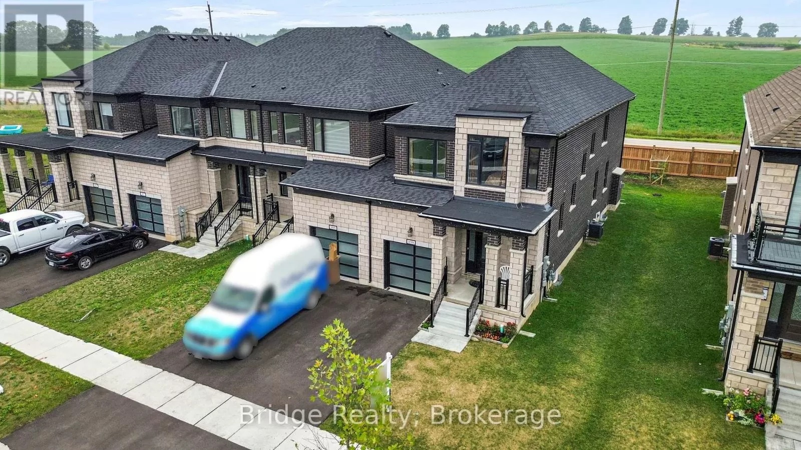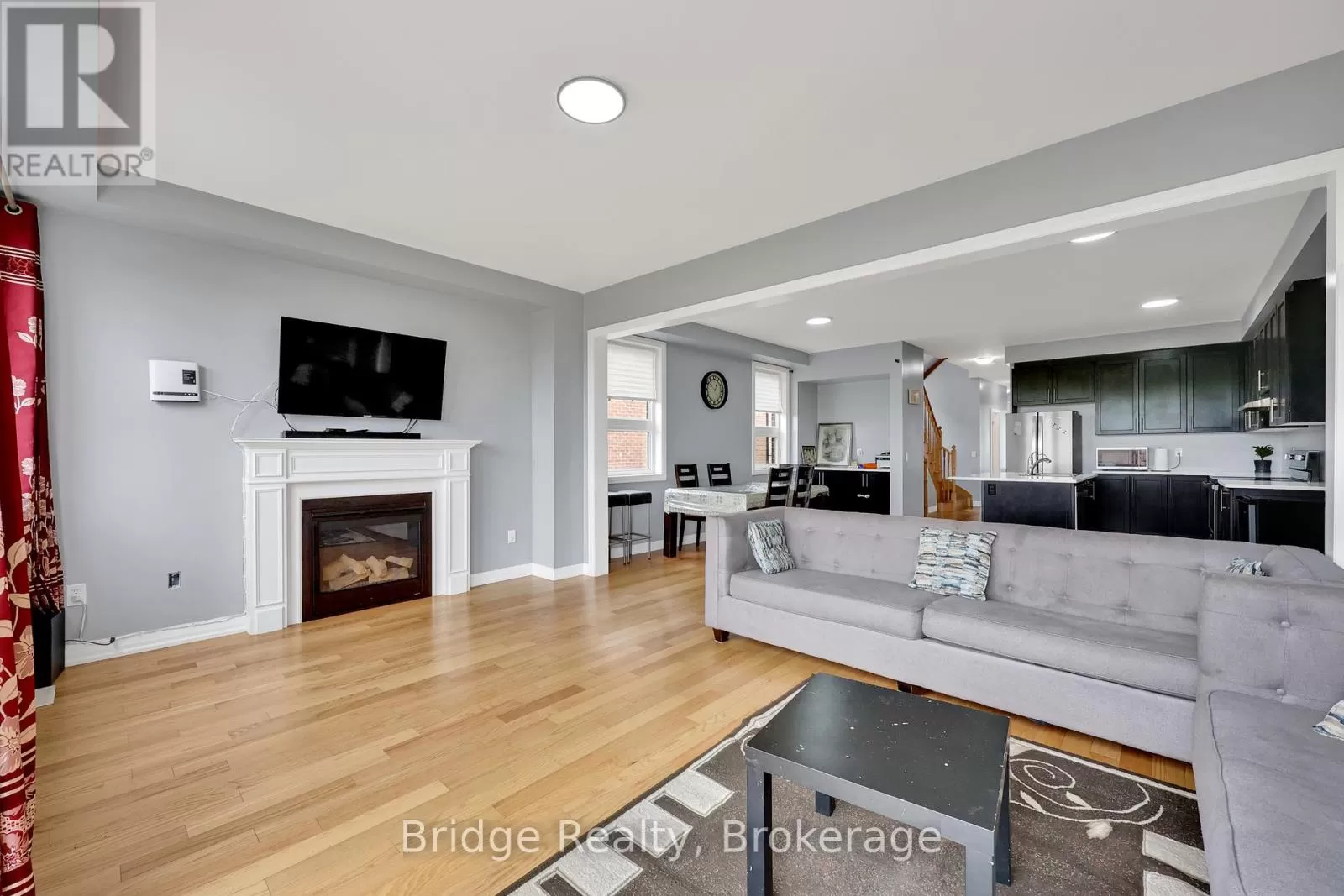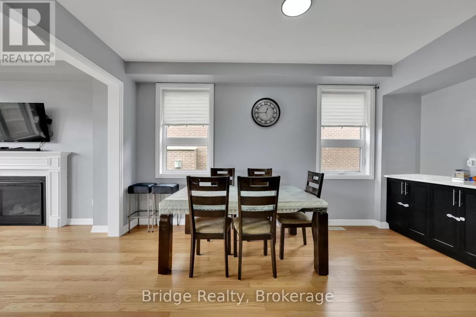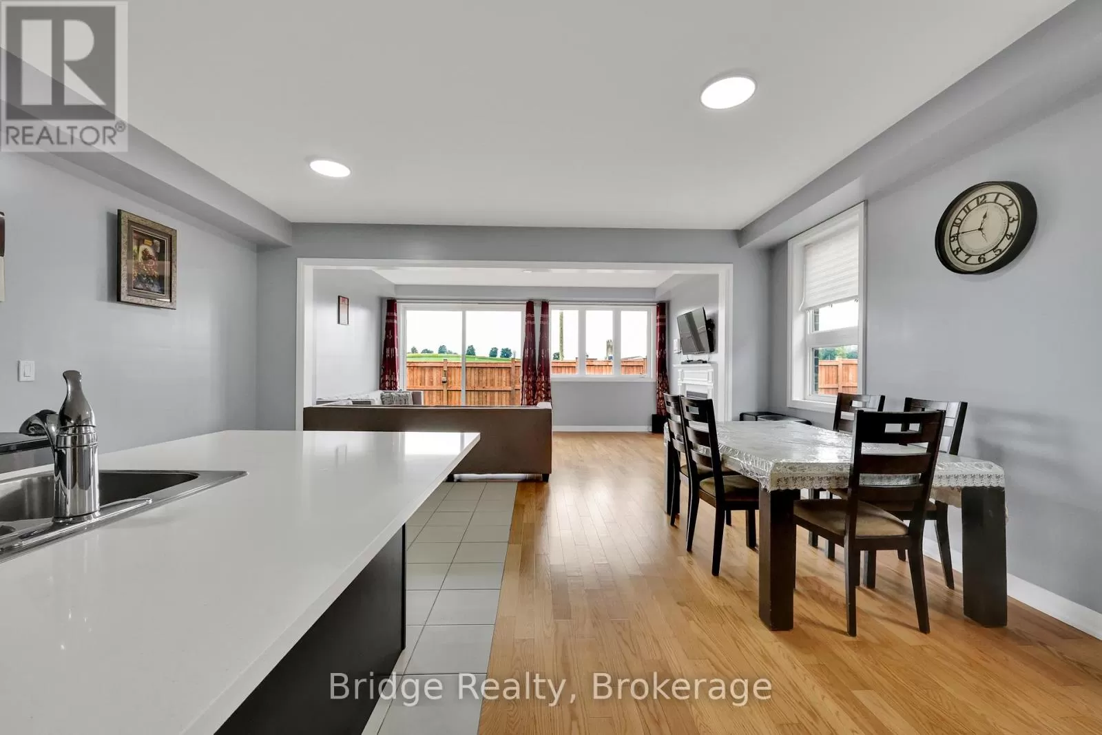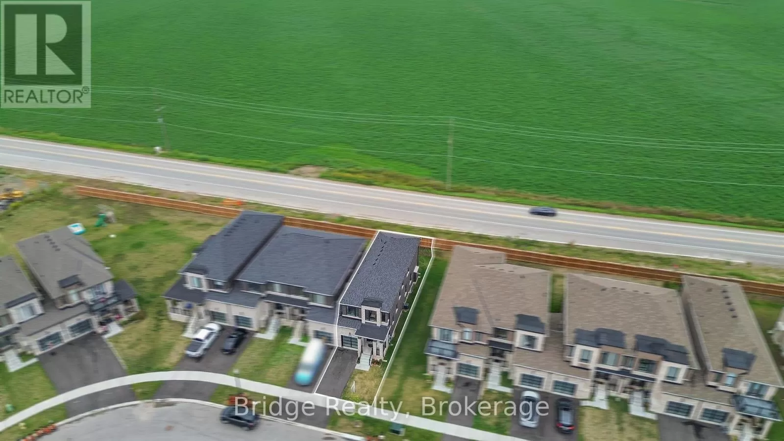 Sobeski Ave & Queenston Blvd This bright and spacious 4-bedroom, 3-bath end-unit townhome offers the feel of a semi-detachedand boasts 2,117 sq. ft. of living space (as per MPAC) with beautiful unobstructed views offarmland at the back. The open-concept main floor is filled with natural light and features alarge great room with a walk-out to the garden, a separate dining area, and oak strip hardwoodflooring throughout. A cozy gas fireplace adds warmth to the living space, while the moderneat-in kitchen showcases quartz countertops and stainless steel appliances. Upstairs, youllfind four generously sized bedrooms, including a primary suite with a luxurious 5-piece ensuitefeaturing a soaker tub and glass-enclosed shower. A second full bath and a convenient laundryroom complete the upper level. The full-height unfinished basement offers ample storage or thepotential for future living space. Parking includes an attached single-car garage and a privatedriveway. Located in a desirable neighborhood, this home is within walking distance to GurdwaraSahib, grocery stores, pizza and Indian restaurants, and the Thames River Conservation Area,and is just minutes from Hwy 401 and other amenities. Dont miss this rare opportunity! (id:27476)
