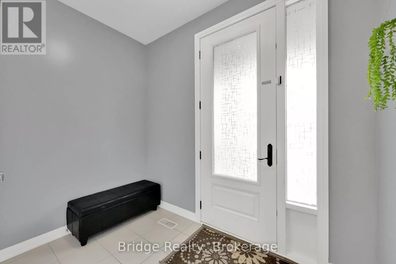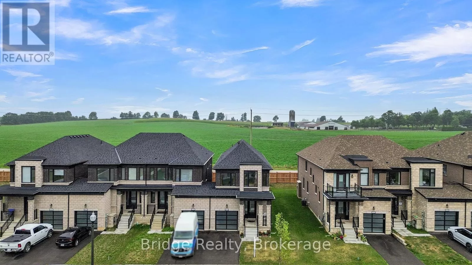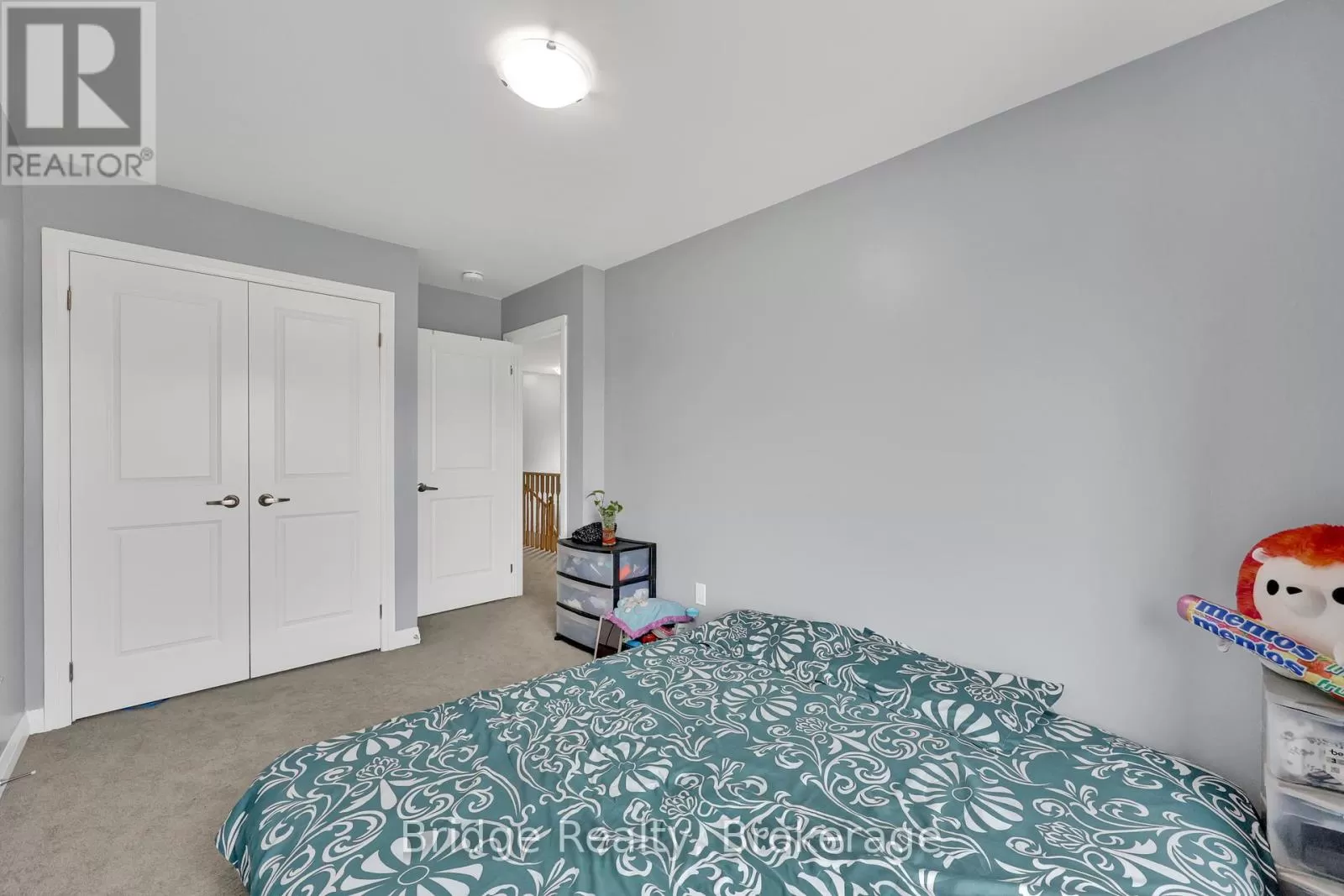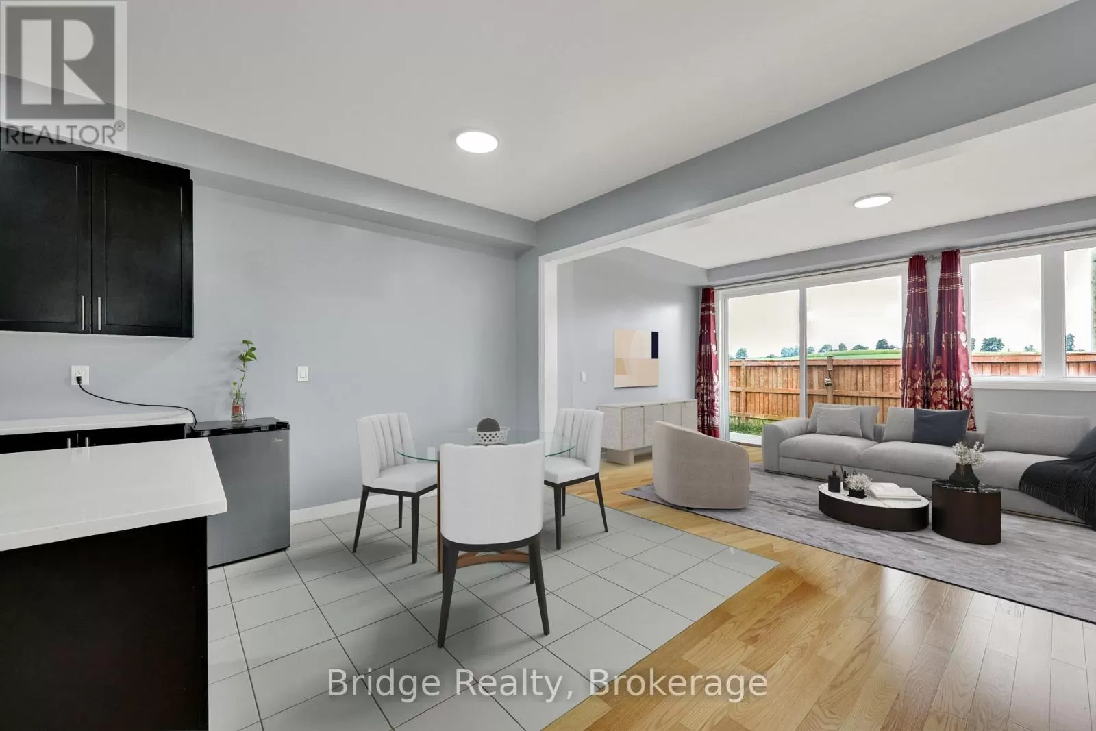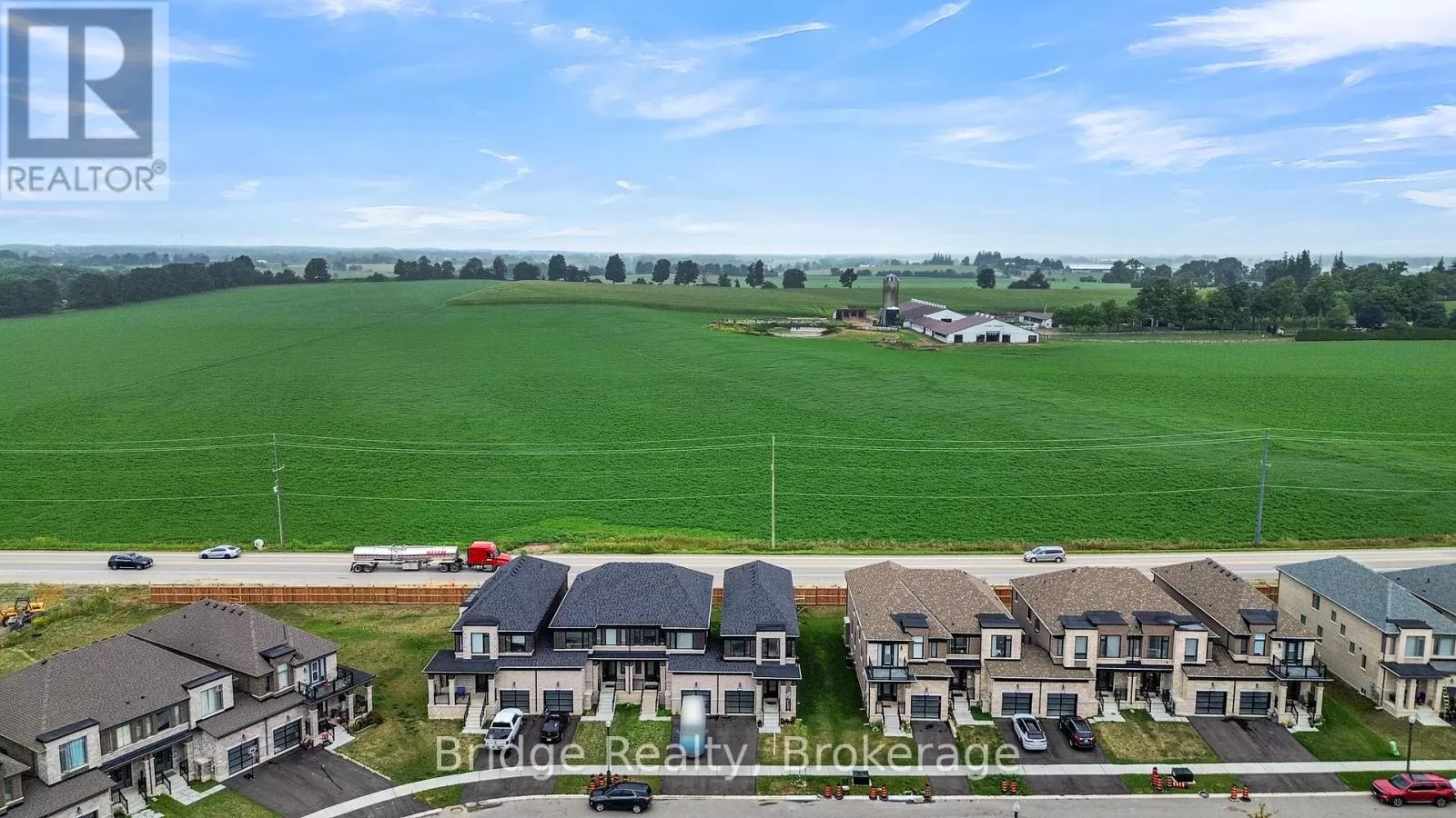 Sobeski Ave & Queenston Blvd This bright and spacious 4-bedroom, 3-bath end-unit townhome offers the feel of a semi-detachedand boasts 2,117 sq. ft. of living space (as per MPAC) with beautiful unobstructed views offarmland at the back. The open-concept main floor is filled with natural light and features alarge great room with a walk-out to the garden, a separate dining area, and oak strip hardwoodflooring throughout. A cozy gas fireplace adds warmth to the living space, while the moderneat-in kitchen showcases quartz countertops and stainless steel appliances. Upstairs, youllfind four generously sized bedrooms, including a primary suite with a luxurious 5-piece ensuitefeaturing a soaker tub and glass-enclosed shower. A second full bath and a convenient laundryroom complete the upper level. The full-height unfinished basement offers ample storage or thepotential for future living space. Parking includes an attached single-car garage and a privatedriveway. Located in a desirable neighborhood, this home is within walking distance to GurdwaraSahib, grocery stores, pizza and Indian restaurants, and the Thames River Conservation Area,and is just minutes from Hwy 401 and other amenities. Dont miss this rare opportunity! (id:27476)