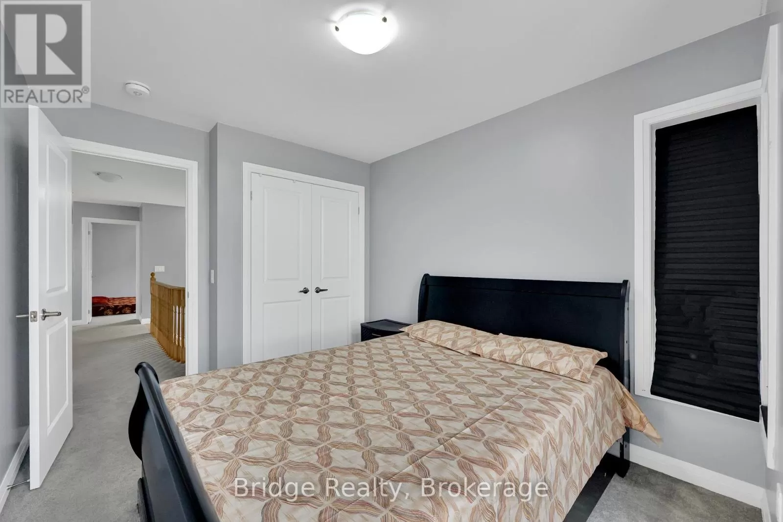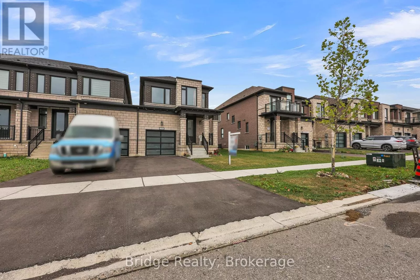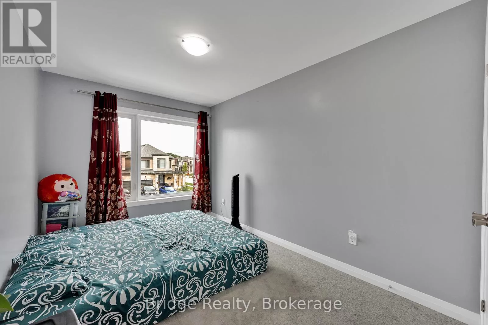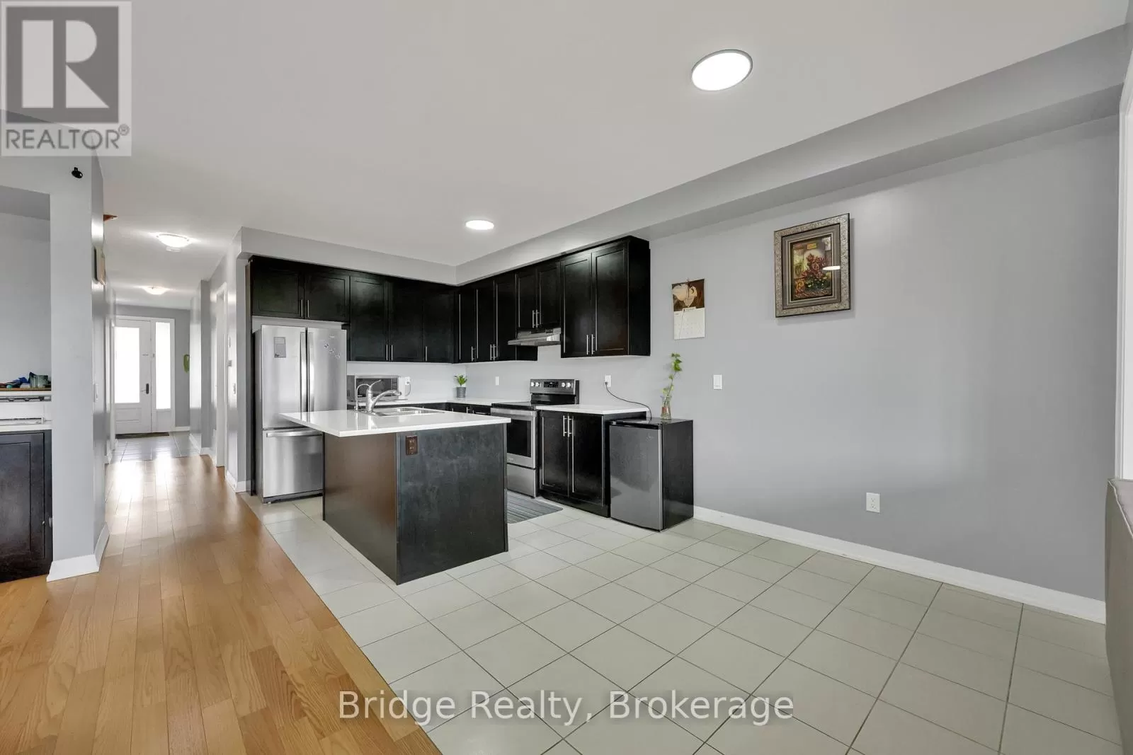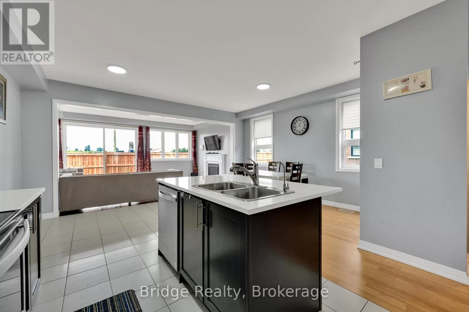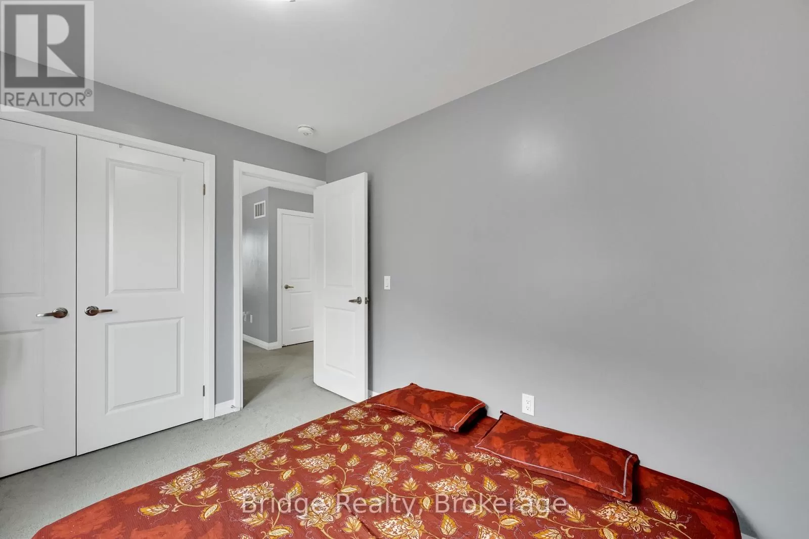 Sobeski Ave & Queenston Blvd This bright and spacious 4-bedroom, 3-bath end-unit townhome offers the feel of a semi-detachedand boasts 2,117 sq. ft. of living space (as per MPAC) with beautiful unobstructed views offarmland at the back. The open-concept main floor is filled with natural light and features alarge great room with a walk-out to the garden, a separate dining area, and oak strip hardwoodflooring throughout. A cozy gas fireplace adds warmth to the living space, while the moderneat-in kitchen showcases quartz countertops and stainless steel appliances. Upstairs, youllfind four generously sized bedrooms, including a primary suite with a luxurious 5-piece ensuitefeaturing a soaker tub and glass-enclosed shower. A second full bath and a convenient laundryroom complete the upper level. The full-height unfinished basement offers ample storage or thepotential for future living space. Parking includes an attached single-car garage and a privatedriveway. Located in a desirable neighborhood, this home is within walking distance to GurdwaraSahib, grocery stores, pizza and Indian restaurants, and the Thames River Conservation Area,and is just minutes from Hwy 401 and other amenities. Dont miss this rare opportunity! (id:27476)