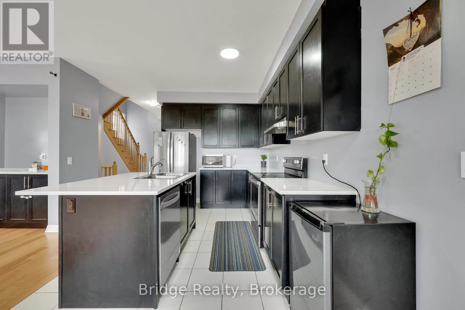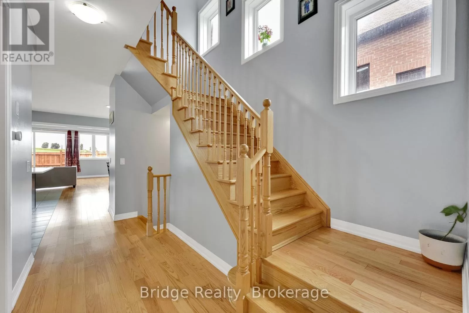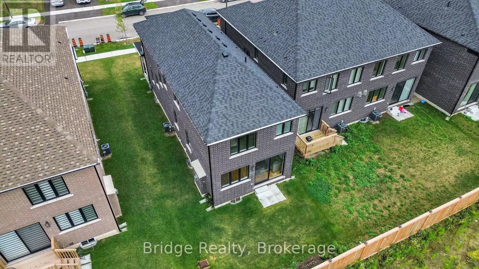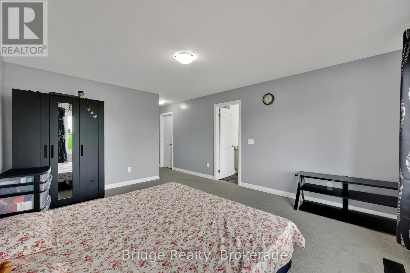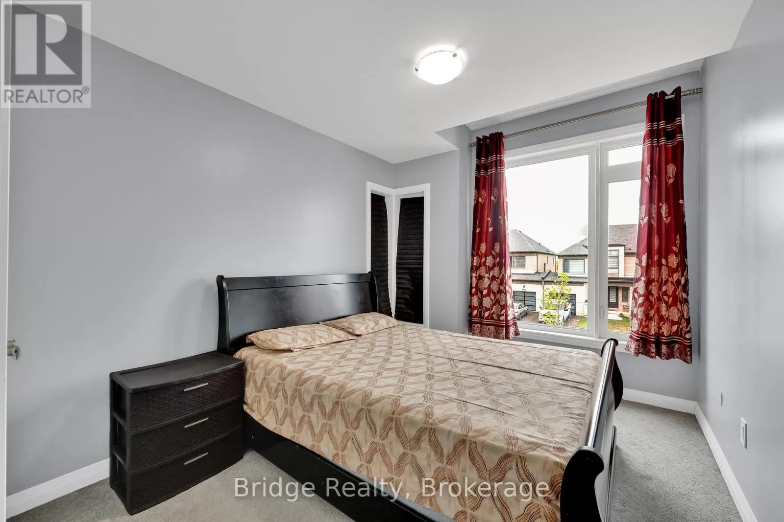 Sobeski Ave & Queenston Blvd This bright and spacious 4-bedroom, 3-bath end-unit townhome offers the feel of a semi-detachedand boasts 2,117 sq. ft. of living space (as per MPAC) with beautiful unobstructed views offarmland at the back. The open-concept main floor is filled with natural light and features alarge great room with a walk-out to the garden, a separate dining area, and oak strip hardwoodflooring throughout. A cozy gas fireplace adds warmth to the living space, while the moderneat-in kitchen showcases quartz countertops and stainless steel appliances. Upstairs, youllfind four generously sized bedrooms, including a primary suite with a luxurious 5-piece ensuitefeaturing a soaker tub and glass-enclosed shower. A second full bath and a convenient laundryroom complete the upper level. The full-height unfinished basement offers ample storage or thepotential for future living space. Parking includes an attached single-car garage and a privatedriveway. Located in a desirable neighborhood, this home is within walking distance to GurdwaraSahib, grocery stores, pizza and Indian restaurants, and the Thames River Conservation Area,and is just minutes from Hwy 401 and other amenities. Dont miss this rare opportunity! (id:27476)