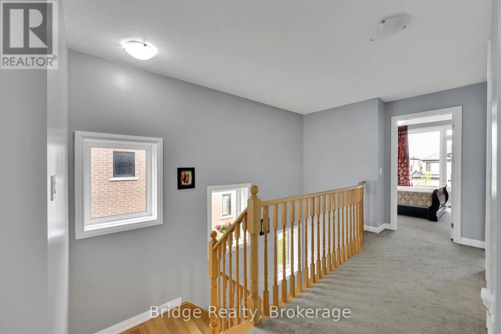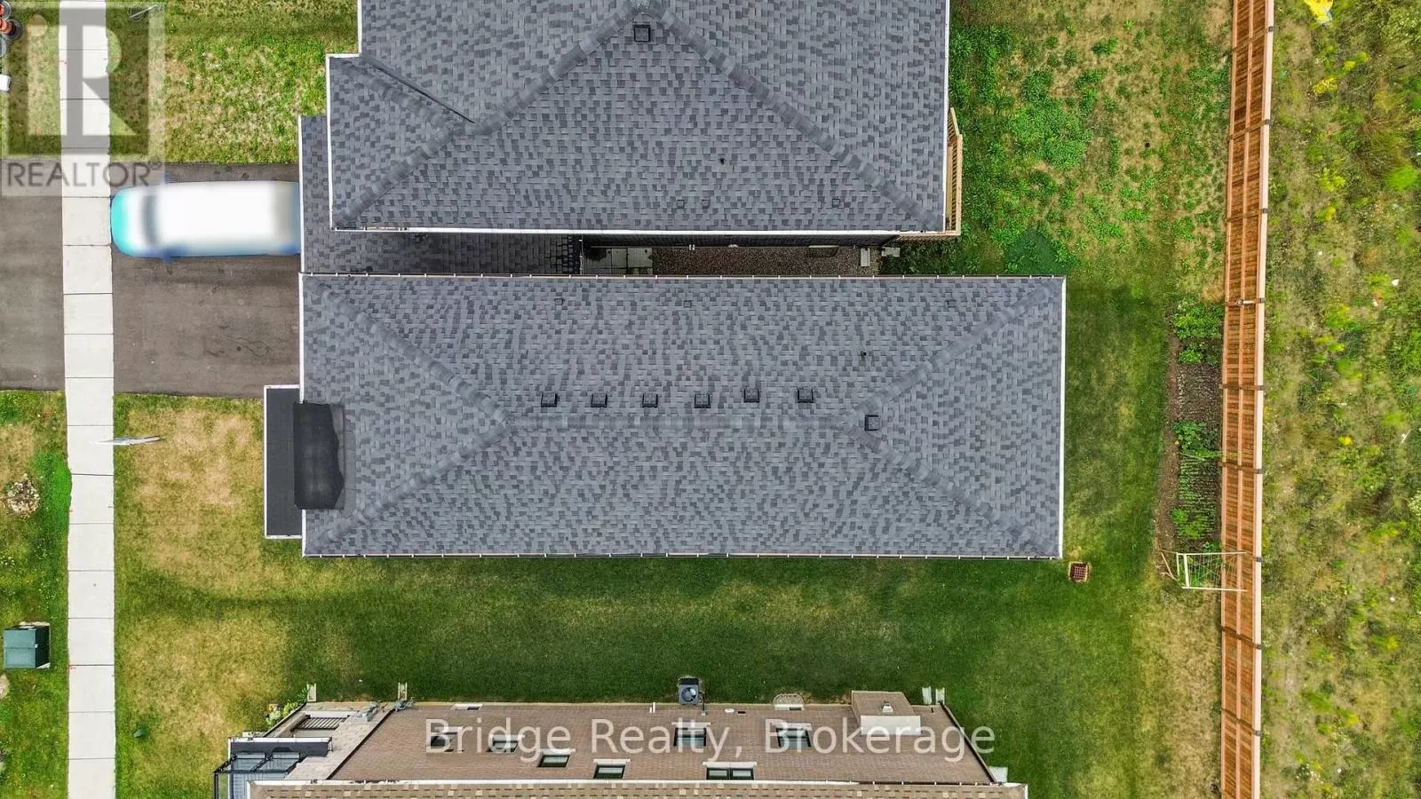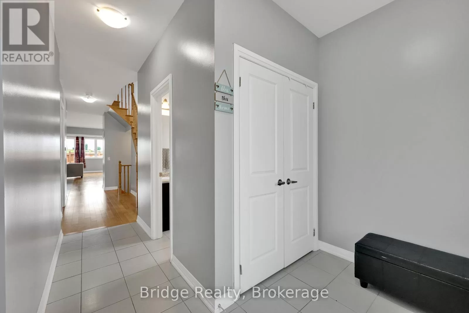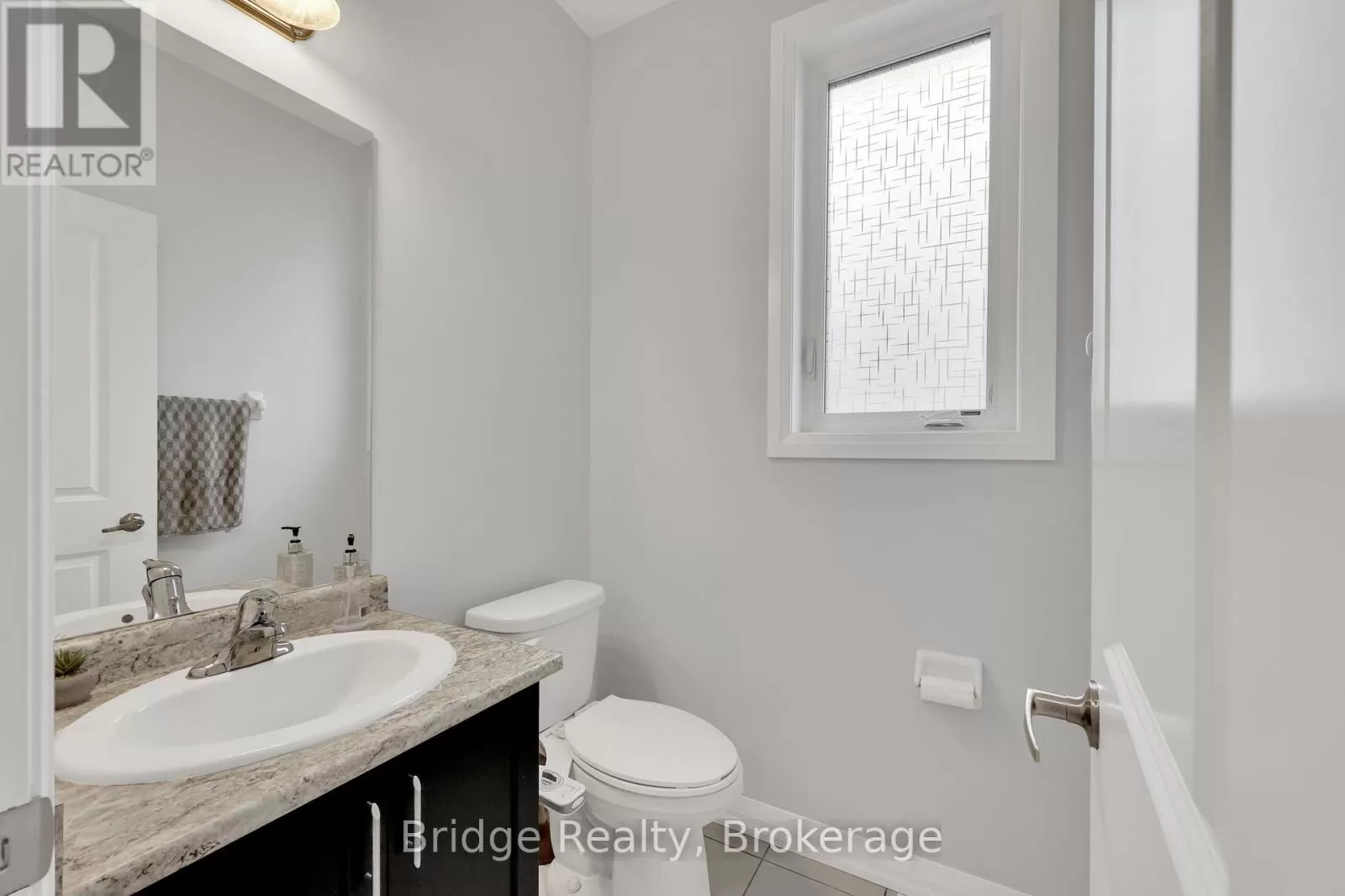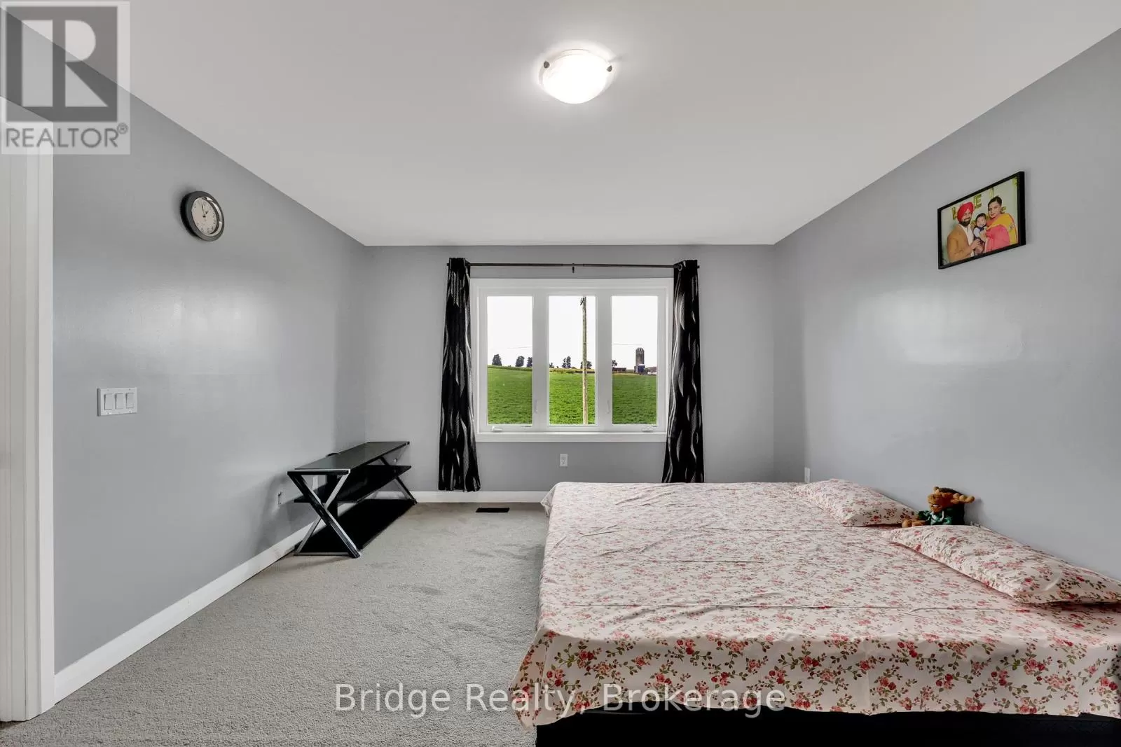 Sobeski Ave & Queenston Blvd This bright and spacious 4-bedroom, 3-bath end-unit townhome offers the feel of a semi-detachedand boasts 2,117 sq. ft. of living space (as per MPAC) with beautiful unobstructed views offarmland at the back. The open-concept main floor is filled with natural light and features alarge great room with a walk-out to the garden, a separate dining area, and oak strip hardwoodflooring throughout. A cozy gas fireplace adds warmth to the living space, while the moderneat-in kitchen showcases quartz countertops and stainless steel appliances. Upstairs, youllfind four generously sized bedrooms, including a primary suite with a luxurious 5-piece ensuitefeaturing a soaker tub and glass-enclosed shower. A second full bath and a convenient laundryroom complete the upper level. The full-height unfinished basement offers ample storage or thepotential for future living space. Parking includes an attached single-car garage and a privatedriveway. Located in a desirable neighborhood, this home is within walking distance to GurdwaraSahib, grocery stores, pizza and Indian restaurants, and the Thames River Conservation Area,and is just minutes from Hwy 401 and other amenities. Dont miss this rare opportunity! (id:27476)