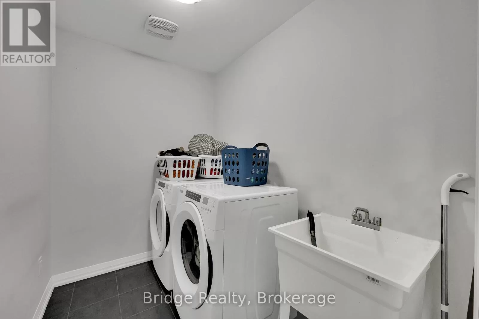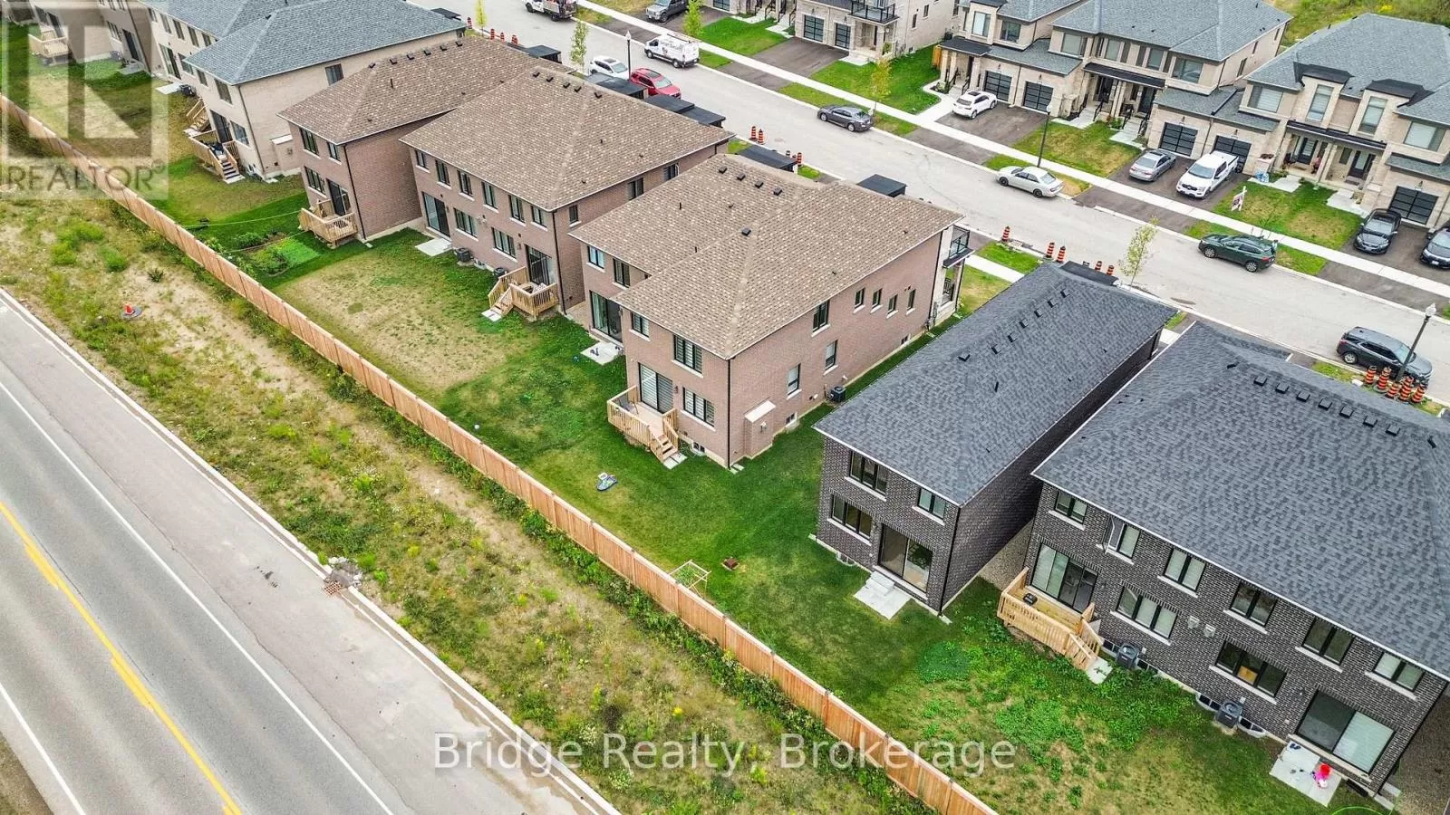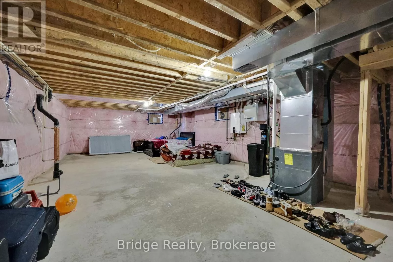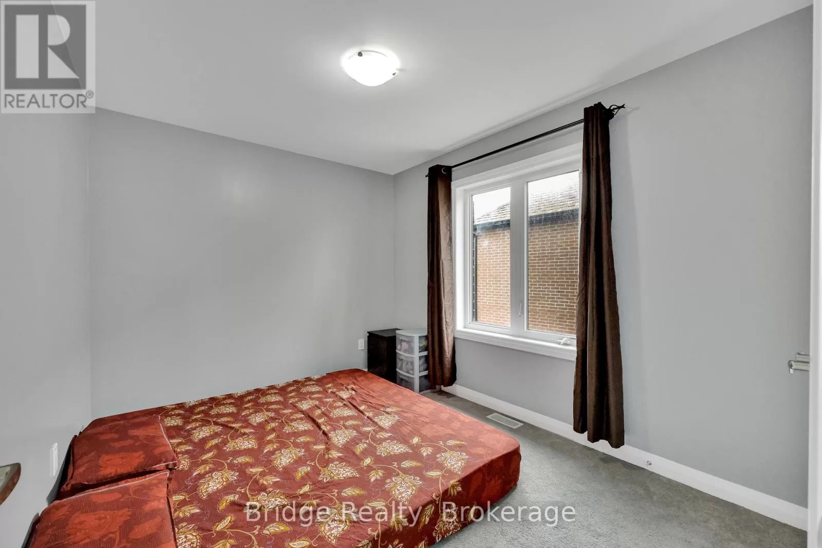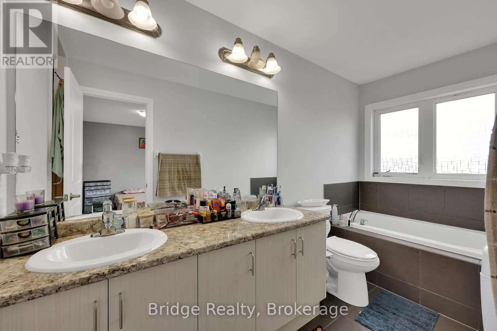 Sobeski Ave & Queenston Blvd This bright and spacious 4-bedroom, 3-bath end-unit townhome offers the feel of a semi-detachedand boasts 2,117 sq. ft. of living space (as per MPAC) with beautiful unobstructed views offarmland at the back. The open-concept main floor is filled with natural light and features alarge great room with a walk-out to the garden, a separate dining area, and oak strip hardwoodflooring throughout. A cozy gas fireplace adds warmth to the living space, while the moderneat-in kitchen showcases quartz countertops and stainless steel appliances. Upstairs, youllfind four generously sized bedrooms, including a primary suite with a luxurious 5-piece ensuitefeaturing a soaker tub and glass-enclosed shower. A second full bath and a convenient laundryroom complete the upper level. The full-height unfinished basement offers ample storage or thepotential for future living space. Parking includes an attached single-car garage and a privatedriveway. Located in a desirable neighborhood, this home is within walking distance to GurdwaraSahib, grocery stores, pizza and Indian restaurants, and the Thames River Conservation Area,and is just minutes from Hwy 401 and other amenities. Dont miss this rare opportunity! (id:27476)