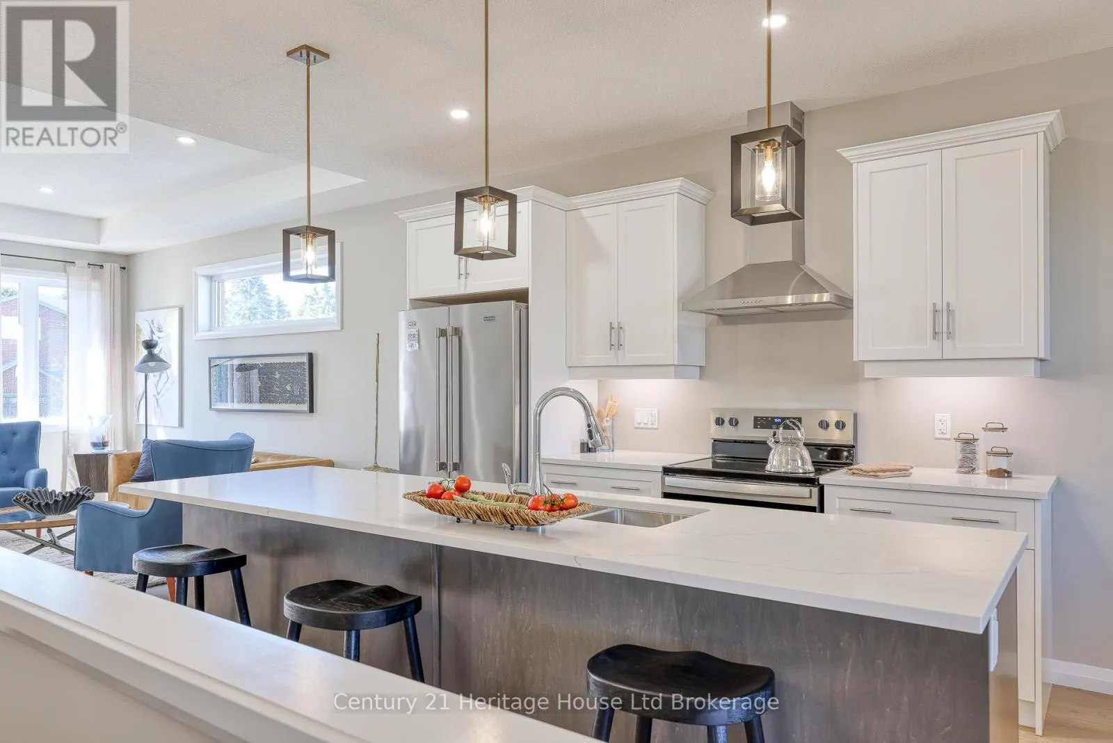 Cross Streets: Canrobert. ** Directions: Mill Street to Fifth Avenue, Go West to Anderson turn Right Property on the Right. Turn your dream home into a Designer Masterpiece on us - receive $15,000. in Hunt Homes BONUSBUCKS with this home inquire for details. Welcome to a truly rare opportunity to own a brand-NEW thoughtfully designed open floor plan bungalow townhouse in this quiet enclave in the heart of Woodstock. Buy from a renowned local builder, Hunt Homes, known for their exceptional quality and craftsmanship. Ideally located close to all amenities incl. bus line, shopping, parks and 401 corridor. Step inside and experience the bright, open concept design offering 1300+ sq ft or modern living. Enjoy east-facing morning sun from your dinette with a walk-out to your own balcony, and west-facing sunsets rom the great room with 6 ft patio doors leading to your 10x12 deck. Designed with lifestyle in mind, this modern bungalow boasts 9 ceilings throughout the main floor creating a bright and airy ambiance. The thoughtfully designed kitchen features stone countertops, crown molding, under-cabinet lighting with cabinet valance, a large island with breakfast bar ideal for both casual dining and hosting. You'll love the hard surface flooring throughout (no carpet), the generous primary suite with 3-piece Ensuite featuring a tile and glass walk-in shower, and the spacious second bedroom with a nearby 4-piece bathrm with tiled tub surround. Accessibility features such as ability for level entrance with wheelchair access, we've even completed the rough in for an interior elevator. Additionally there is single-car garage, paved driveway, fully sodded lot, central air, Energy Recovery Ventilator (ERV) for improved air quality and humidity control and large windows for an abundance of natural light. Ask about our lower level finish pkg offering large family rm, bedroom and 3pc bath with w/walk in shower. Enjoy carefree living with a low fee for just$150/month covering road maintenance and lawn care-never cut your grass again! New Build taxes to be assessed. Photos/virtual tour of Builder's Model (id:27476)