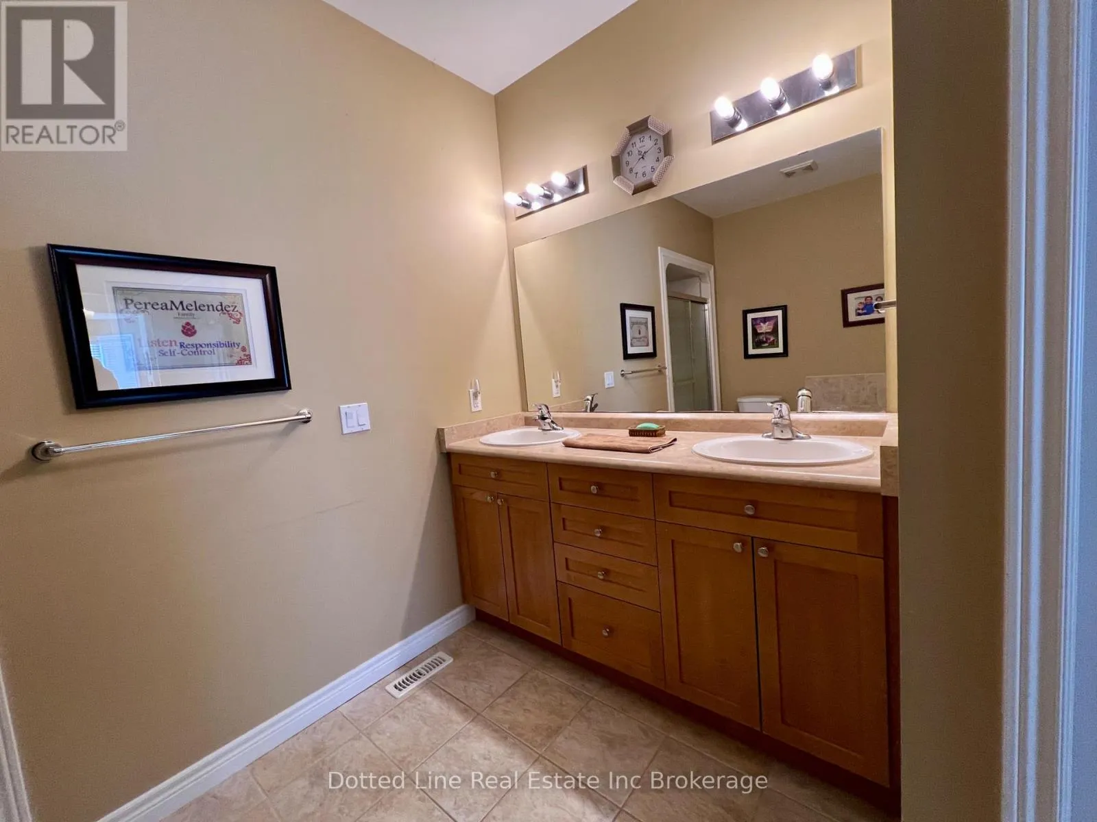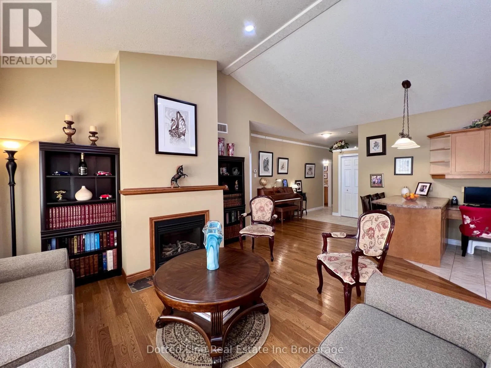 Cross Streets: Vansittart and Lakeview. ** Directions: Travel North on Vansittart, Turn East on Lakeview, Turn South on Eastview and Enter Condo Development on the Right. Welcome to care-free condo living in one of Woodstocks most desirable Adult Communities in north end location. Nestled in a private Adult Community surrounded by nature and walking trails, this spacious 2+2 bedroom bungalow condo offers the perfect blend of comfort, convenience, and style.From the moment you step inside, the open-concept design invites you in. A vaulted ceiling elevates the living and dining space, where large windows frame serene views of mature trees and even a glimpse of Pittock Lake. The kitchen, complete with a peninsula breakfast bar and built-in desk area, is designed to keep conversations flowing while meals are prepared.The main level features two generously sized bedrooms, including a bright and welcoming primary suite with a luxurious 5-piece ensuite featuring a corner tub, double sinks, and in-suite laundry. Step out from the dining area onto your private deck to relax and enjoy the sights and sounds of nature.The fully finished lower level expands your living space with two additional bedrooms, a cozy rec room with gas fireplace, a full 3-piece bathroom, and plenty of storage perfect for guests, family, or hobbies. An attached double garage and double driveway add convenience and practicality to this beautiful home.Located just steps from trails and minutes from local favourites like Sally Creek Golf Club, Brickhouse Brewpub, Cowan Sportsplex, and everyday amenities, this condo offers more than a home, it offers a lifestyle. Carefree living, abundant space, and a sought-after Adult Community location all come together at 500 Lakeview Drive, Unit 11. (id:27476)