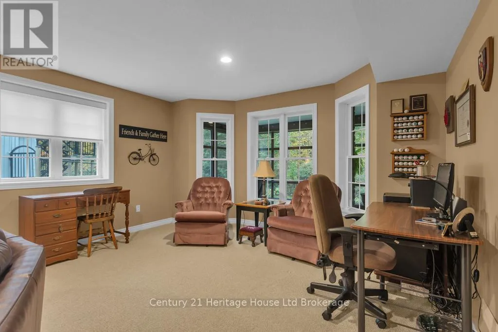 Cross Streets: Finch. ** Directions: From Lansdowne Ave, Turn East onto Finch Ave, Left onto Parrott Pl. This custom-built executive style bungalow sits on a pie shaped lot backing onto a wooded creek. With stunning curb appeal this well appointed home is sure to impress. The kitchen, dining area, living room and primary bedroom sit at the back of the home taking full advantage of the stunning view the wooded creek has to offer. Starting at the front door you will find a lovely den/office on your left, hardwood flooring leads you to the living room with custom built-ins surrounding a gas fireplace. The efficient kitchen, with loads of cabinetry, overlooks the dining area. Off the kitchen is a convenient main floor laundry. The large primary suite is complete with a 5 piece en-suite, including a corner jet tub and a walk-in closet. The deck can be accessed from the dining area or primary suite. A great place to enjoy morning coffee or an evening meal while enjoying the view. Rounding out the main floor is a powder room, perfect for guest. The lower level has a very large family room complete with more custom built-ins. This large family room has a walkout to a screened in patio complete with lighting and interlock pavers. Imagine enjoying a summer evening out there! Completing this level is 2 bedrooms and a 4 piece bathroom. This lower level is perfect for the tweens, teens or young adults of the family! (id:27476)