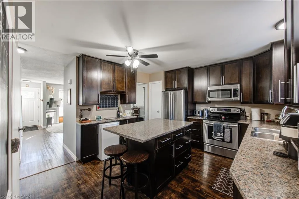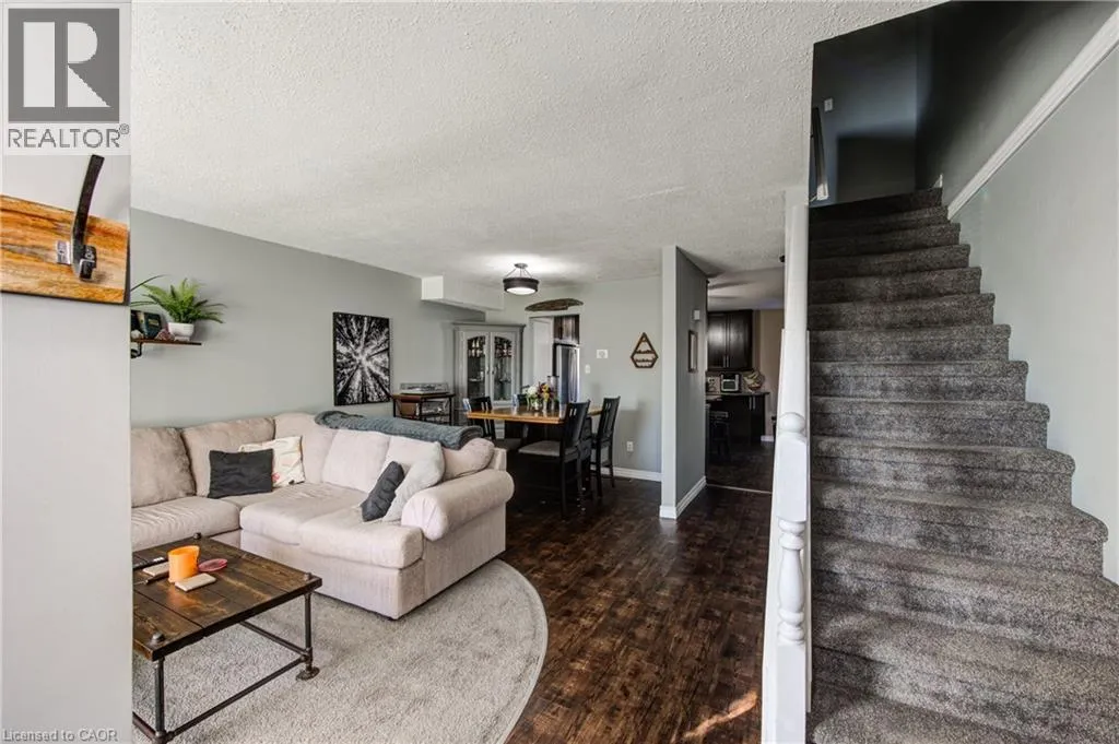 FROM LANSDOWNE TURN WEST ONTO NELLIS ST. PROPERTY IS ON THE RIGHT. Welcome to this beautifully maintained 3-bedroom, 1.5-bathroom two-storey townhome offering comfort, convenience, and modern living. Perfectly situated in a family-friendly neighbourhood, this home is just minutes from shopping, schools, scenic trails and highway access - everything you need right at your doorstep! Step inside to discover a bright, main floor featuring a modern kitchen with updated cabinetry, sleek countertops, and newer appliances. The spacious living and dining areas are perfect for entertaining or relaxing with loved ones. Upstairs, you'll find three generous bedrooms and a full bathroom - ideal for a growing family or guests. The partially finished basement offers additional living space, perfect for a rec room, home office, or gym. Enjoy outdoor living in your fully fenced yard, perfect for kids, pets, or summer BBQs. Whether you're a first-time buyer, downsizing, or investing, this home has it all - style, space, and an unbeatable location. (id:27476)