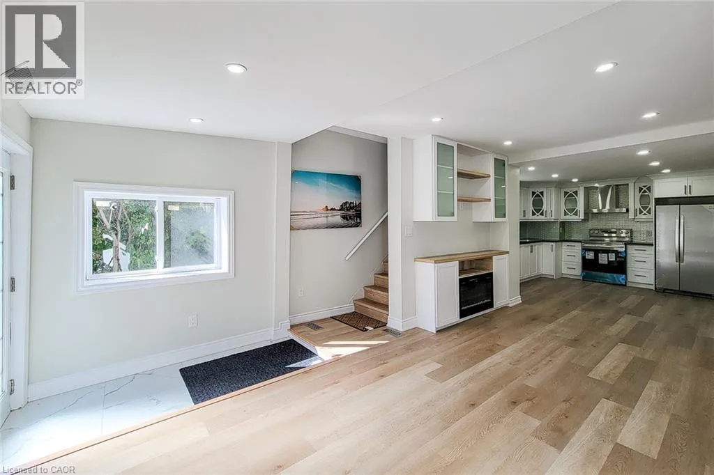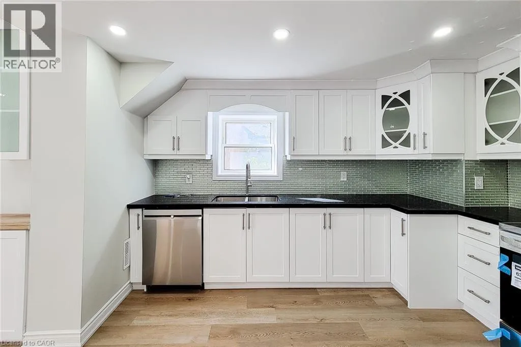 Hwy 401 - Exit 232 (Hwy 59 N) - Right on Devonshire Ave - Left on College Ave - Property on Corner Lot (opposite College Ave Secondary School) Beautifully renovated 4-bed, 4-bath detached home on a spacious corner lot! Features a fully finished basement & main-floor bachelor suite with separate entrance & income potential. Modern kitchen with stainless-steel appliances, 9 mm vinyl flooring & sleek accent walls. Bright open layout, parking for 8 cars, and backyard ready for a 300â400 sq ft garden suite. Across from a school, minutes to Hwy 401 & south-side amenities , stylish design, prime location & smart investment in one! (id:27476)