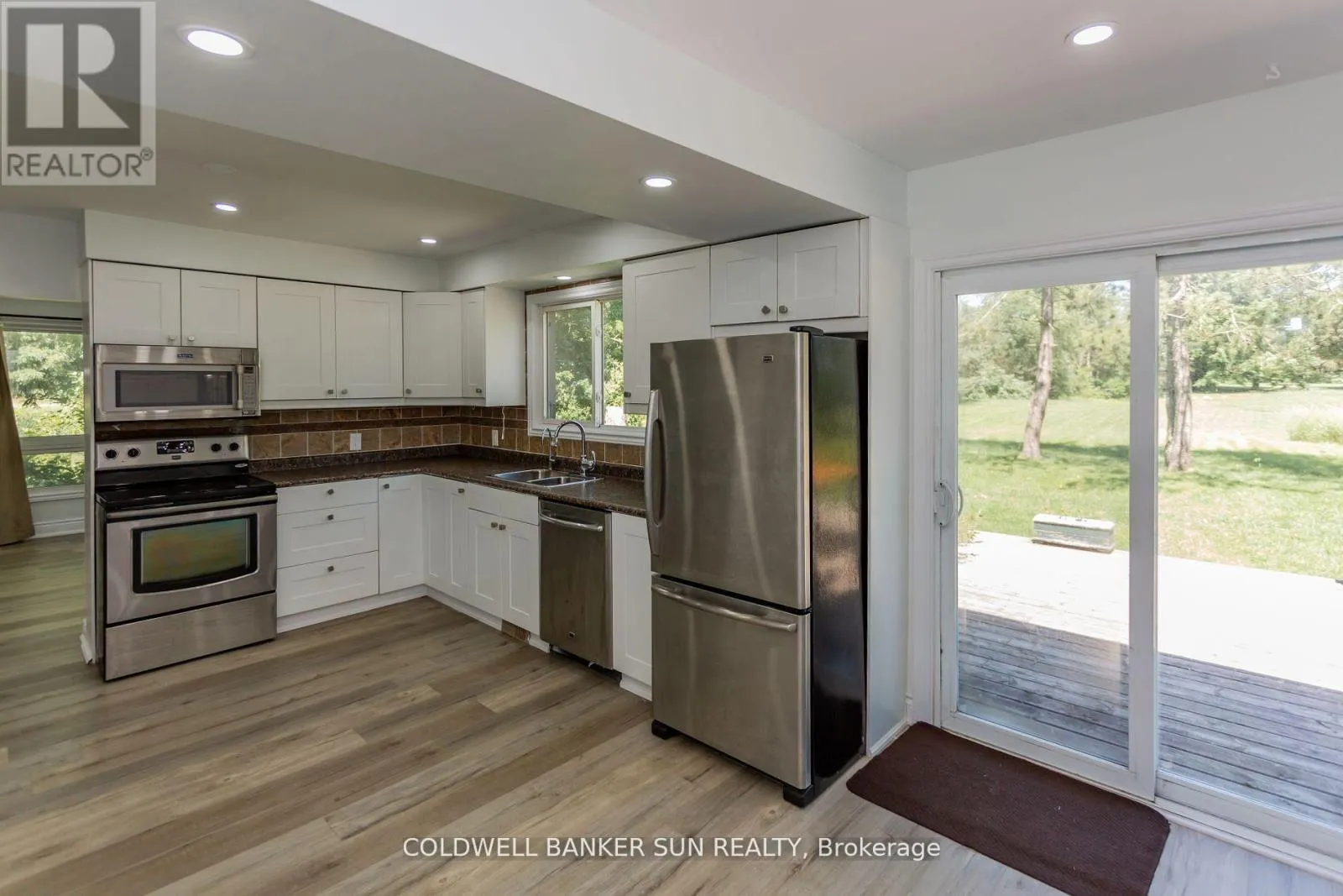 Cross Streets: Blandford Rd. ** Directions: Hwy 401 Westbound, exit 238 and head East, property is located on the right hand side. Fully upgraded 2-bedroom bungalow situated on over 3 acres of land just 2 minutes from Hwy 401 and Toyota. This beautiful country property offers the perfect blend of privacy and convenience. Featuring new vinyl flooring throughout, fresh paint, and an updated kitchen with stainless steel appliances, this home is move-in ready. Enjoy abundant pot lights and a walkout to a large deck overlooking hundreds of feet of open land and mature bush ideal for relaxing or entertaining. The outbuilding, constructed using storage containers and wood, is heated and provides excellent space for a workshop or additional storage. A new central A/C system was installed in summer 2025. Flexible options available, the buyer can assume the existing tenant or take vacant possession upon closing. Kindly respect tenants privacy and personal belongings during all showings. Pictures were taken prior to tenant occupancy. (id:27476)