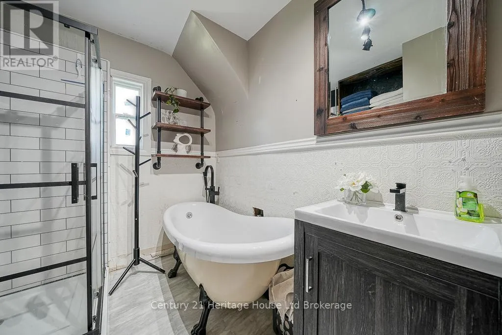 Cross Streets: Parkinson Road. ** Directions: Parkinson Rd to South Street. Wake up to peaceful park views and enjoy family living at its best in this spacious South side Woodstock home. Overlooking Southside Park, it's perfect for quiet walks or family picnics. Inside, enjoy a bright layout with a large living room, dining area, and updated kitchen featuring white cabinetry and subway tile. The main floor bedroom and full bath add convenience, while the enclosed front porch is ideal for morning coffee. Upstairs offers three roomy bedrooms, and the finished lower level includes an in-law suite with its own kitchen, bath, and two bedrooms. Situated on a quiet corner lot with a double detached garage, close to highways, schools, and shopping-this home truly has it all! (id:27476)