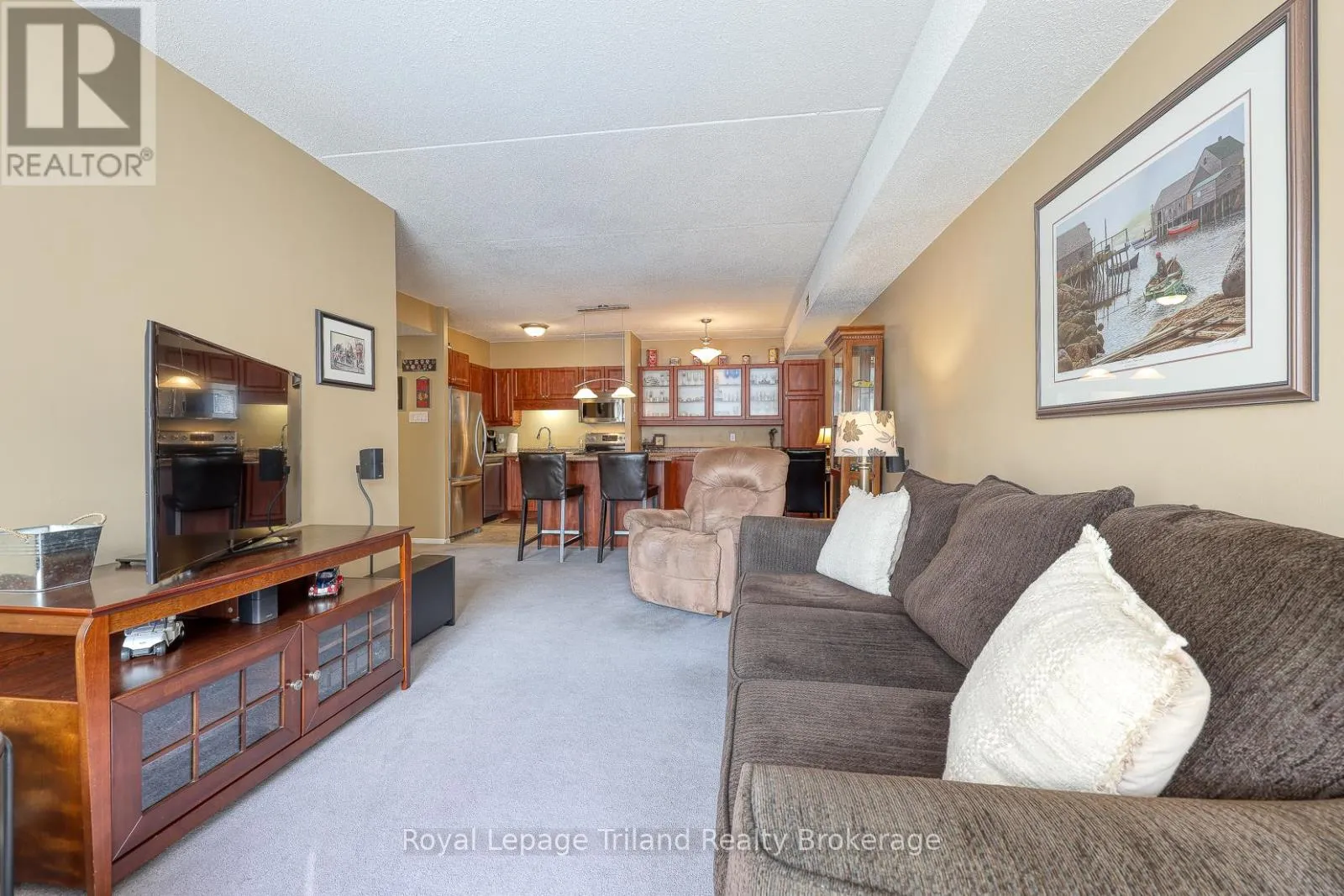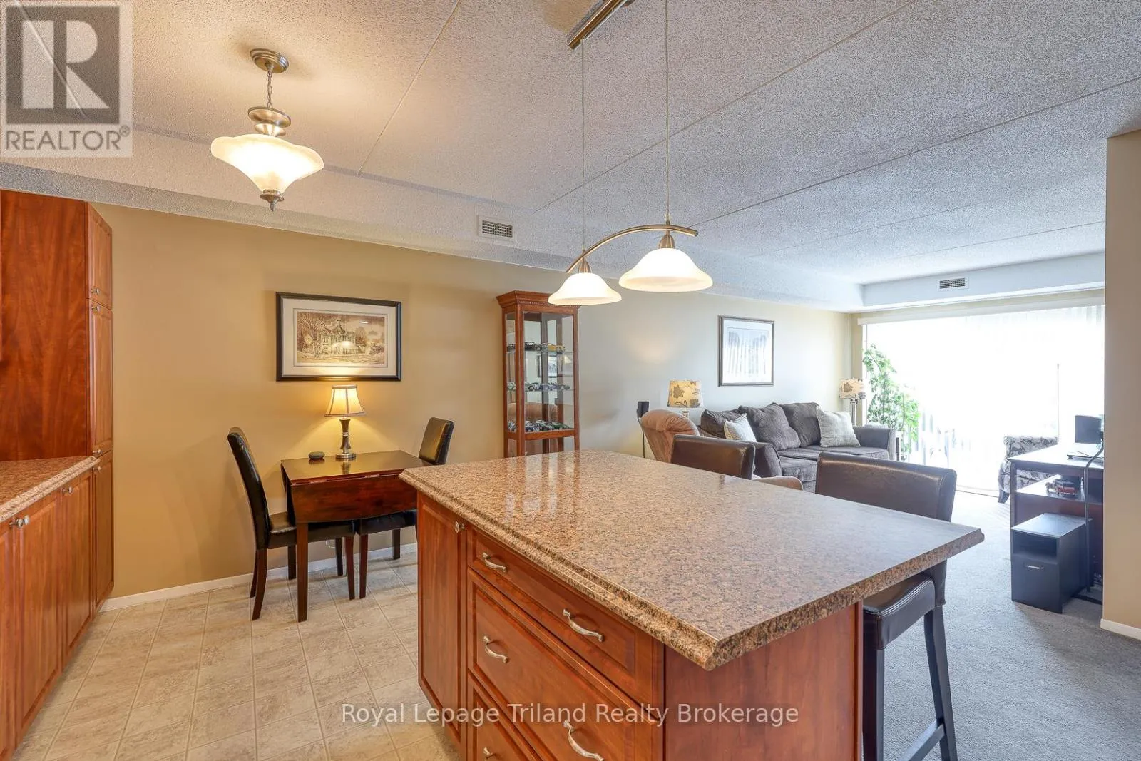 Cross Streets: Parkinson Rd / Ferguson Drive. ** Directions: Dundas Street, West on Parkinson, South on Ferguson. Don't miss your opportunity to own this move in ready 3 bedroom, 2 bath condo. Perfect for those looking for maintenance free and secure living plus the chance to simplify your lifestyle. From the moment you enter you will see pride of ownership. The kitchen, dining, living area is an open concept that allows for wonderful friend/family gatherings. The kitchen has been beautifully remodelled with ample cupboards, counter space and a handy breakfast island. Truly the heart of the home. Off the living room is a newer sliding door that opens to the private balcony. The primary bedroom is complete with a walk in closet and its own 4 piece ensuite. 2 other bedrooms and another 4 piece bath as well as a utility room with in-suite laundry complete the floor plan. Updates include: Furnace & A/C (2017), Newer Fridge, Stove, Washer, Dryer, Dishwasher (2023), Water Softener (2023), Hot Water Tank rental (2024). Residents have access to an onsite gym as well as a gathering (party) room. Easy access to the 401/403 corridor and close to all amenities including community complex, arena, pool, hospital, shopping, eateries and Southside park. Whether you are down sizing or investing this is a move in ready home tastefully decorated thru out. (id:27476)