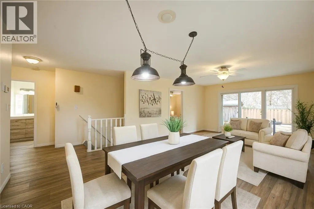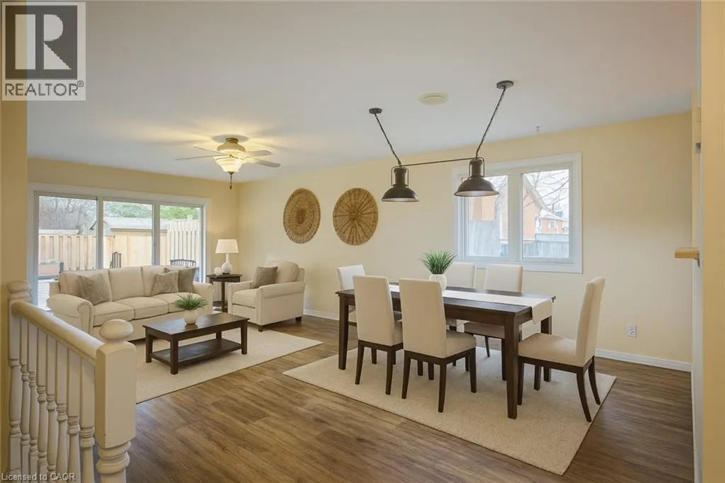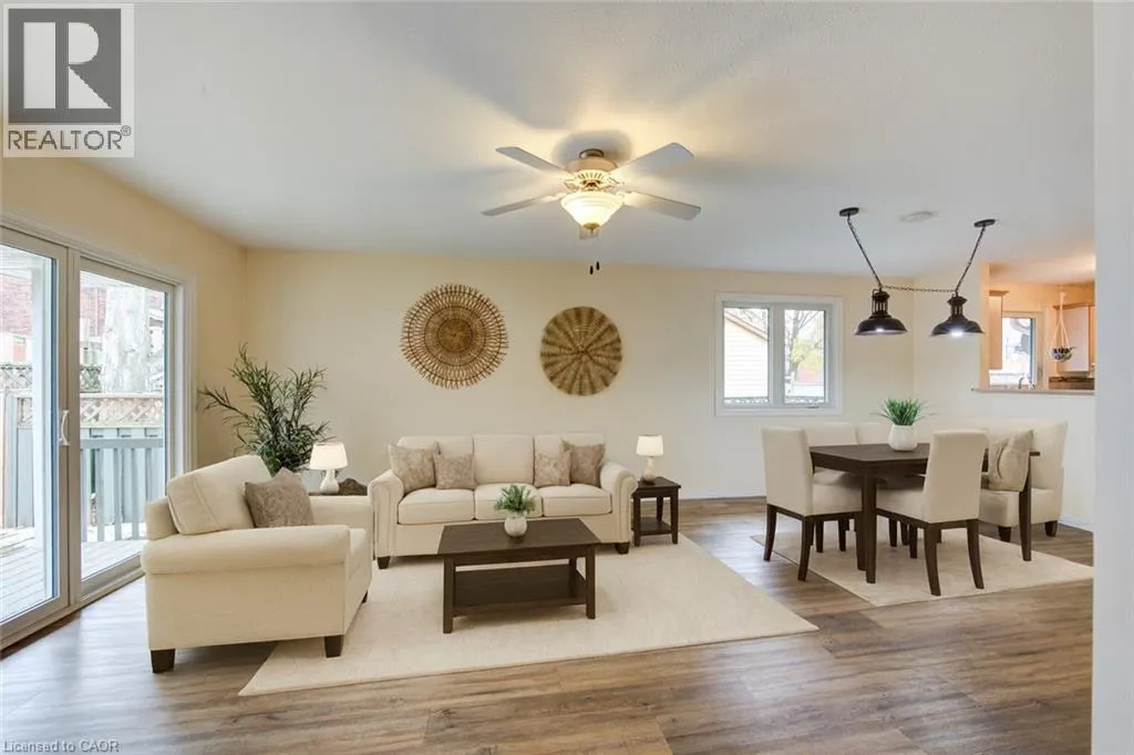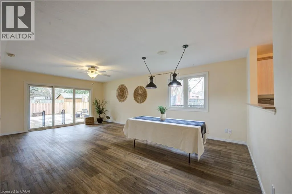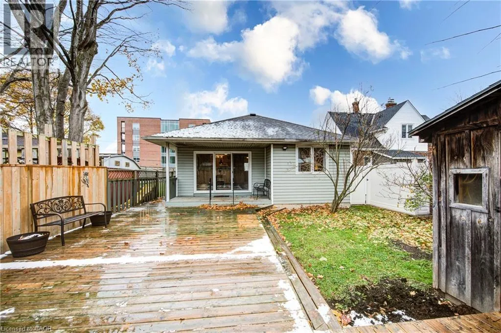 From Dundas Street take Vansittart Ave North. Left on Ingersoll Ave. Left on Oxford Street. Welcome to this bright and well-cared-for 3-bedroom, 2-bathroom bungalow situated on a quiet, mature street in Northwest Woodstock. This charming home offers comfortable one-floor living with thoughtful accessibility features and valuable updates throughout. The main level includes two spacious bedrooms, including a primary suite with a walk-through closet and convenient cheater access to the 4-piece bathroom. The galley kitchen features Corian countertops and ample cupboard space, opening into a combined dining and living area filled with natural light. A new Centennial patio door leads to a covered deck and a second large deck overlooking the private backyardâperfect for morning coffee or outdoor entertaining. This home is wheelchair accessible, featuring a ramp from the garage and a Stairlift installed in 2021 that provides easy access to the lower level. The partially finished basement offers a spacious recreation room, a third bedroom, a 3-piece bathroom, laundry room, and a workshop/storage areaâideal for hobbies or additional living space. Updates & Features: Centennial Windows installed 2022; Furnace & AC 2017; Stairlift: 2021; Water Softener & Hot Water Tank 2021; Refrigerator 2018; Gemstone Exterior Lighting 2024; Washer/Dryer 2009; Roof approx. 12 years old. Bright, clean, and move-in ready, this home offers exceptional value in a desirable neighbourhood. A wonderful opportunity for downsizers, first-time buyers, or anyone seeking accessible bungalow living. (id:27476)
