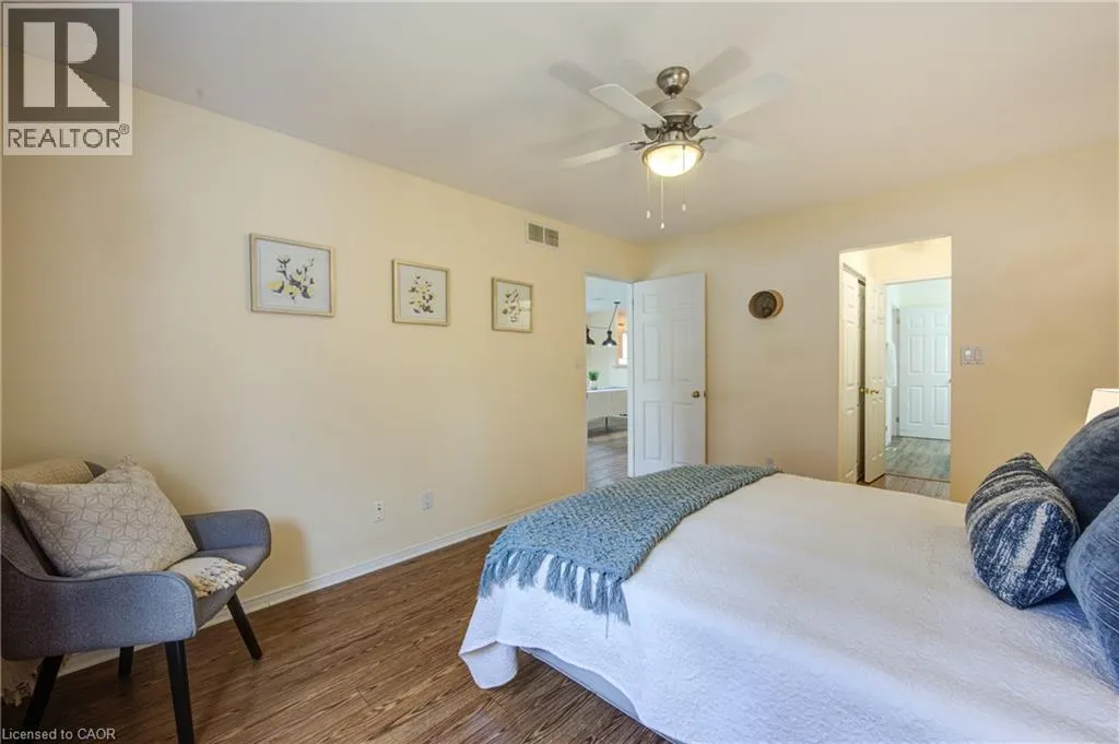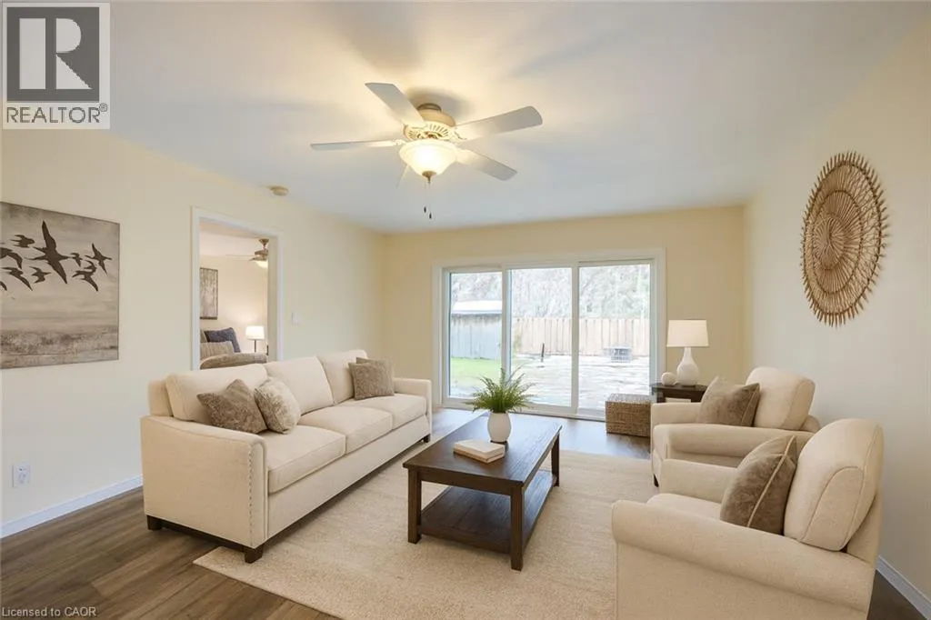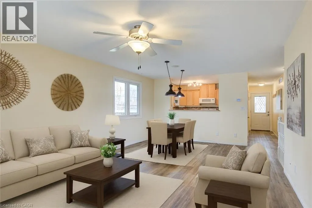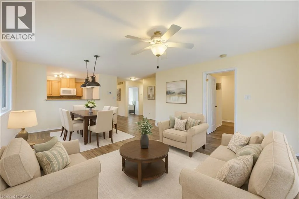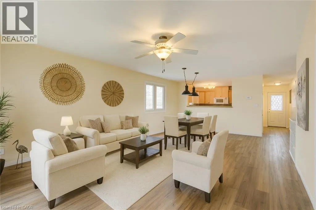 From Dundas Street take Vansittart Ave North. Left on Ingersoll Ave. Left on Oxford Street. Welcome to this bright and well-cared-for 3-bedroom, 2-bathroom bungalow situated on a quiet, mature street in Northwest Woodstock. This charming home offers comfortable one-floor living with thoughtful accessibility features and valuable updates throughout. The main level includes two spacious bedrooms, including a primary suite with a walk-through closet and convenient cheater access to the 4-piece bathroom. The galley kitchen features Corian countertops and ample cupboard space, opening into a combined dining and living area filled with natural light. A new Centennial patio door leads to a covered deck and a second large deck overlooking the private backyardâperfect for morning coffee or outdoor entertaining. This home is wheelchair accessible, featuring a ramp from the garage and a Stairlift installed in 2021 that provides easy access to the lower level. The partially finished basement offers a spacious recreation room, a third bedroom, a 3-piece bathroom, laundry room, and a workshop/storage areaâideal for hobbies or additional living space. Updates & Features: Centennial Windows installed 2022; Furnace & AC 2017; Stairlift: 2021; Water Softener & Hot Water Tank 2021; Refrigerator 2018; Gemstone Exterior Lighting 2024; Washer/Dryer 2009; Roof approx. 12 years old. Bright, clean, and move-in ready, this home offers exceptional value in a desirable neighbourhood. A wonderful opportunity for downsizers, first-time buyers, or anyone seeking accessible bungalow living. (id:27476)