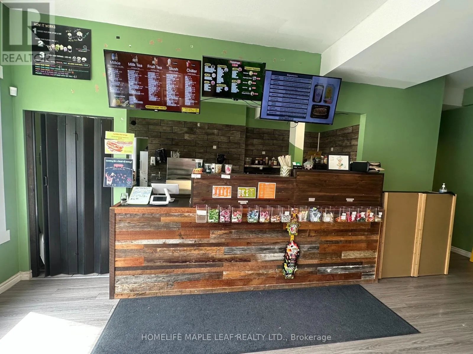 Cross Streets: Mill St & Dundas st. ** Directions: West on Dundas Street, cross over Oxford Street and property is on the right. This turnkey BoBar Beverage Co. business is ready for immediate takeover. Specializing in bubble tea and specialty drinks crafted from proprietary recipes, it offers strong potential for expansion into food or retail. Features an open layout with room for additional seating, ample on-site parking, and a low all-inclusive lease. All equipment, furnishings, and recipes are included. Approx. 1,200 sq. ft. main floor + 200 sq. ft. basement with excellent exposure on Dundas Street. Suitable for various uses, including restaurant, pizza, convenience, or beverage concepts. Lease at $3,000.00 + HST/month. Act fast-won't last! (id:27476)