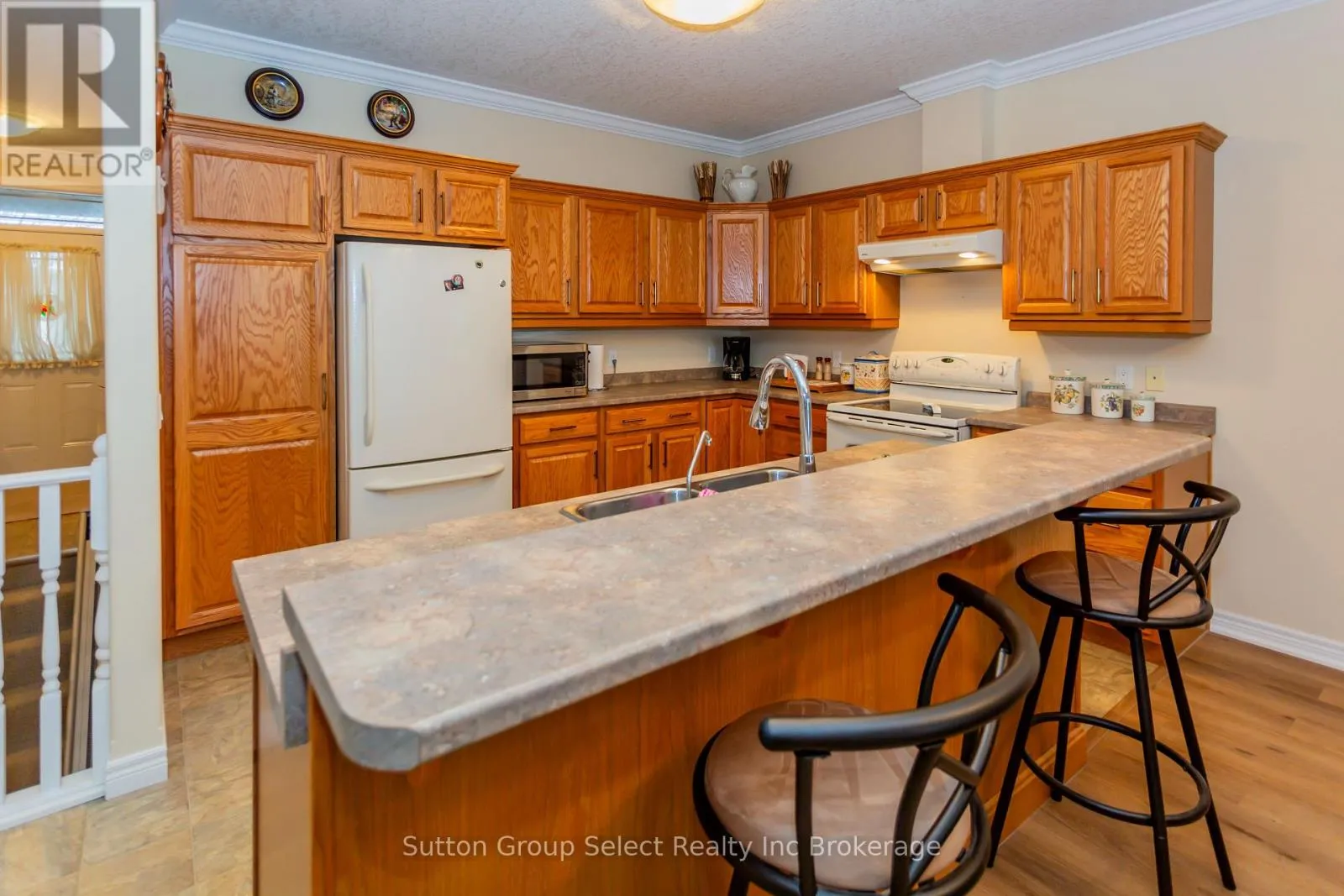 Cross Streets: Hummingbird and Spitfire. ** Directions: Hummingbird to Spitfire. 22-540 Spitfire is a bunglow townhouse, 1 car garage attached, 2 bedroom, 2 bathroom. Enter the foyer, a bedroom/office with California shutters to front of unit. Spacious and bright open concept kitchen, dining area and living room. Beautiful oak cabinets, island with sink and breakfast bar. The dining/living, primary bedroom has pleasing laminate flooring. Sliding glass door to deck. Enjoy the green space behind the unit. The primary bedroom has California shutters, 2 large closests and access to bathroom. Laundry is in the main level. The basement level has a spacious family room with gas fireplace, bedroom, 3 pc bath with step in shower and utility room. Close to shopping, 401/403, walking trails, Cowan Park. (id:27476)