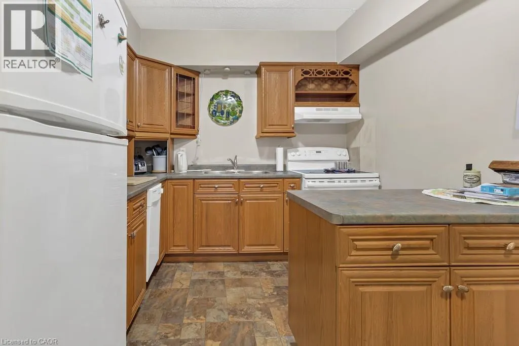 From Parkinson Rd turn south onto Ferguson Dr. Looking for a pristine 2 bedroom, 2 bath home that is worry and maintenance free? This wonderful residence has a newer kitchen (2012), and is move in ready with an open concept kitchen / dining room / living room with patio doors to a terrace balcony. A large entryway closet and storage room off the main foyer are perfectly placed for great functionality. The Primary bedroom has an ensuite 4 pc bathroom and a spacious walk-in closet. You will also find another generous bedroom and a 2nd - 4 pc bathroom. In suite laundry hook ups are present, also on-site laundry facilities can be utilized. Also Included are the fridge, stove, and dishwasher. Also included in this secured entrance facility is an exercise room, a party /meeting room for family and friend get togethers, an elevator for easy living and storage lockers available as well. Parking is simple and hassle free and lots of it. Conveniently located minutes from 401/403, great shopping, Southside Park for all your exercise and relaxation needs, with many restaurants close by for your dining pleasure. (id:27476)