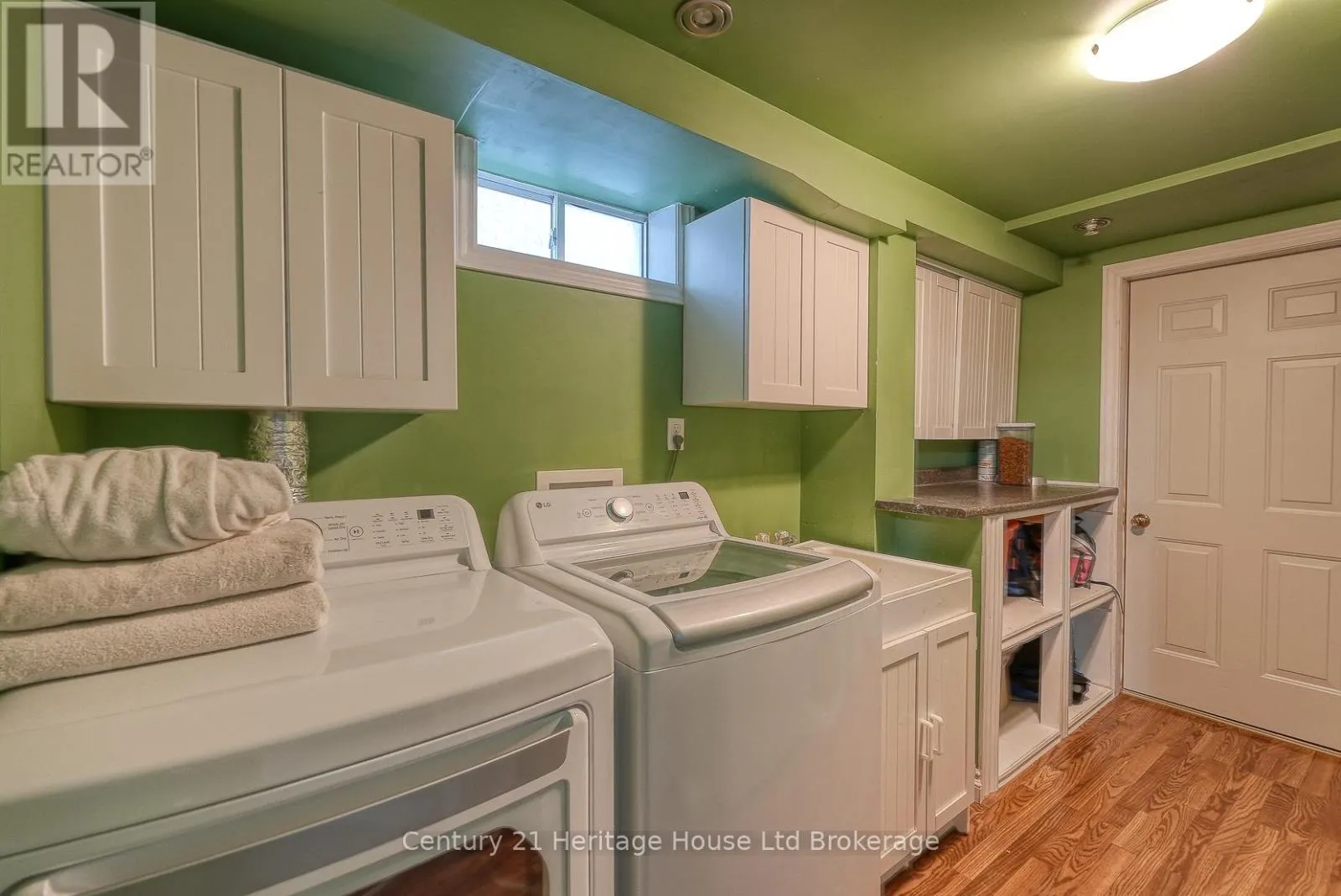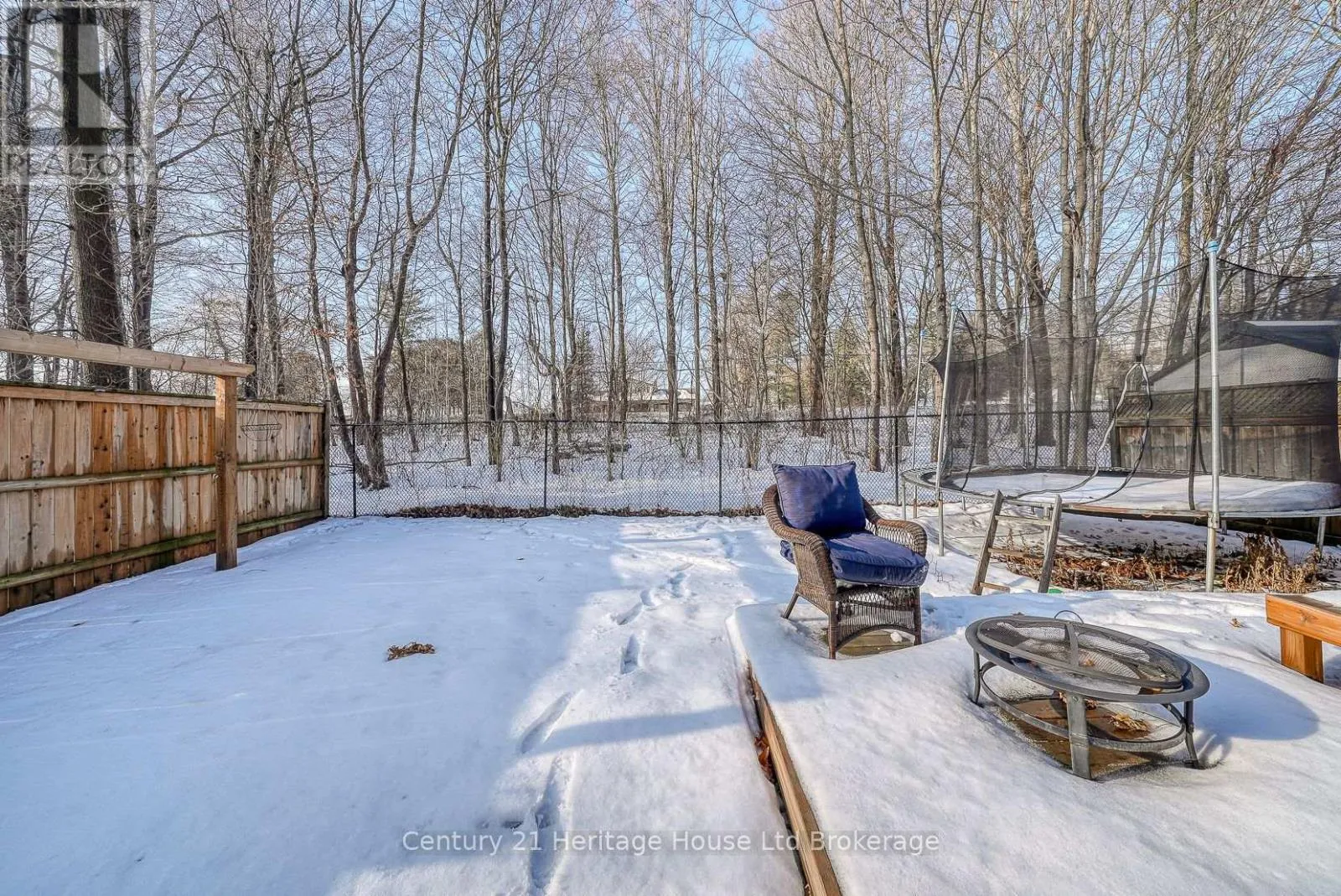 Cross Streets: MILL STREET. ** Directions: NORTH ON MILL STREET, RIGHT ONTO PEMBERSPASS, RIGHT ONTO POTTERS WAY. Welcome to this beautifully upgraded two-storey home in the desirable South Woodstock community, situated on a private lot with no rear neighbours. This spacious family home offers 4 bedrooms, 3.5 bathrooms, a double-car attached garage, and a fully finished basement. The striking brick exterior is complemented by a double-wide freshly sealed driveway (2022) and inviting front porch. Inside, enjoy a tiled foyer with garage access and powder room, hardwood floors and custom wainscoting in the formal dining room, and a living room with coffered ceilings open to the stunning kitchen featuring a large island, pendant lighting, modern countertops, chic cabinetry, and an updated walk-in pantry (2022). Patio doors lead to a new deck (2021) and fully fenced private yard. Upstairs, the primary suite features his-and-hers closets (2020) and a luxurious ensuite with glass shower, quartz countertop, and corner jetted tub. One of the additional bedrooms features a fireplace installed in 2024 and new windows added in 2025. Three additional bedrooms and a full bathroom complete the second level. The finished basement includes a rec room with fireplace and custom built-ins, bonus room with closet, laundry, 3-piece bath, and a custom kids' playhouse. Additional updates include a new A/C unit (2022). Close to schools, community complex, hospital, and with quick highway access-this home has it all (id:27476)
