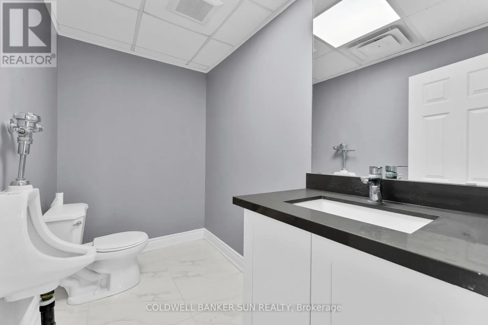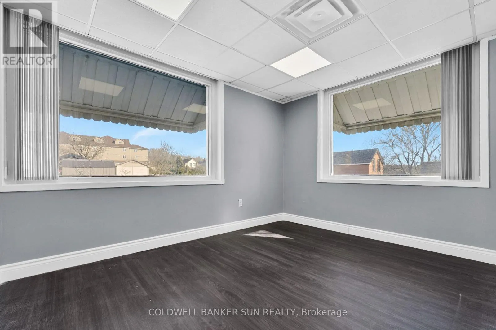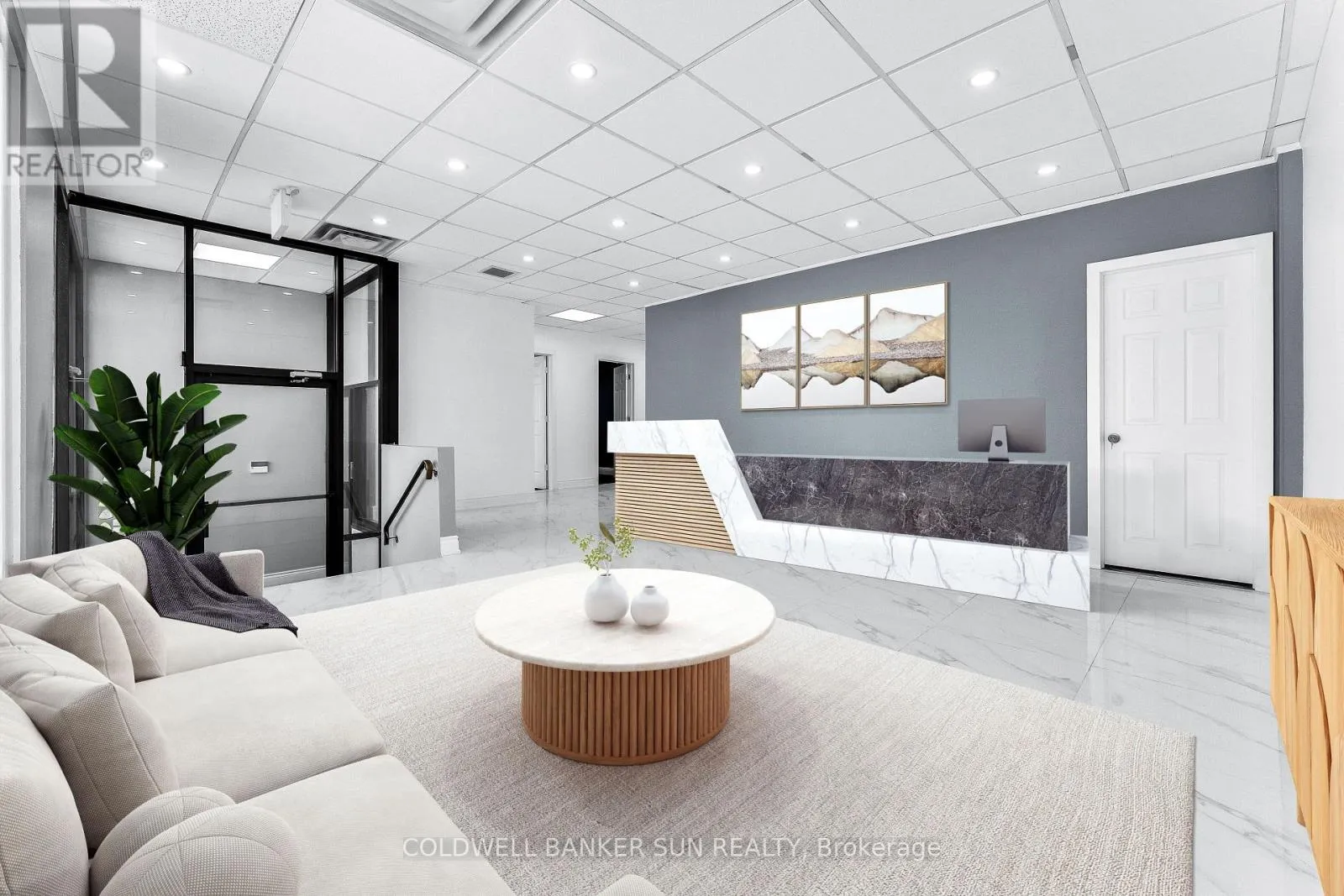 Cross Streets: Dundas St and Mill St. ** Directions: Access the property through back door via Hay lane off Mill St. Use the garage door code to enter. Beautifully Renovated Central Commercial Zone C5 Unit with Mixed-Use Zoning! This spacious 3487.50 sq. ft. main-floor unit offers multiple offices, a reception area, a common work area, a meeting room, a filing room, A rough in kitchenette two bathrooms, and two staircases leading to city-approved indoor 5 +legal parking. Over $300,000 has been invested in renovations, including five legal indoor parking spots equipped with two HRVs, a CO sensor, an automatic door opener, and a separate heated furnace. Additional upgrades include a new flat roof with warranty, a new furnace, a new garage door, updated flooring, fresh paint, and more. A fantastic opportunity for a versatile commercial space! The current zoning allows the following uses Doctors Office with Pharmacy, an appliance sales and service shop, an artist studio, an assembly hall, an automobile service station a bake shop, a Bank or financial institution, a bar or nightclub, a brewers retail outlet, a business or professional office, a catalogue store, a commercial club, a commercial school, a convenience store, a customer contact centre office, a department store, a drug store, a dry cleaner's distribution station, a dry cleaning establishment, an eating establishment, a finance office, a florist shop, a fraternal lodge or association, a furniture store, a health club, a laundry shop, a medical clinic. (id:27476)