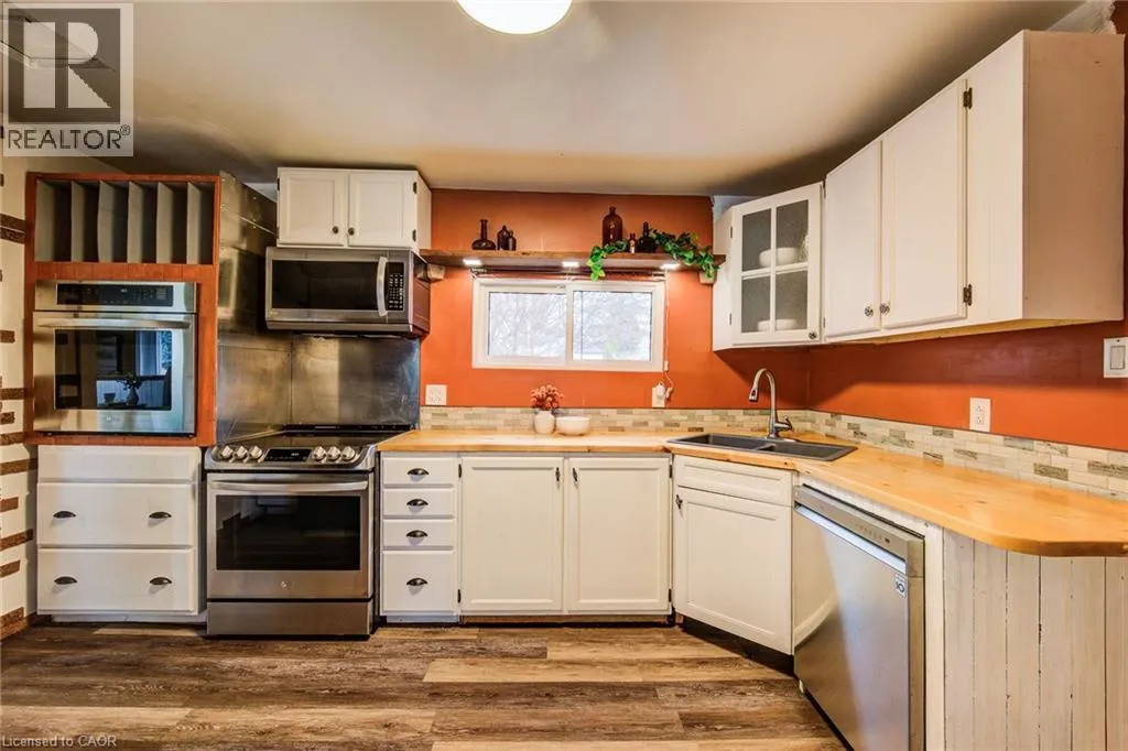 heading South on Wilson St. which turns into Cedar turn left/East onto Norwich Ave. and house is up on the left/West side of street Step into the charm of yesteryear with this inviting bungalow, originally built in 1850 and thoughtfully updated over time to blend character with everyday comfort. Offering approximately 1,035 sq. ft. (approximately), this single-family home is ideal for first-time buyers, downsizers, or those seeking a manageable property in a convenient commuter-friendly location. The home features 3 bedrooms, including a spacious primary, with two additional bedrooms in the original portionâperfect for kids, guests, or even the option to combine into one larger space. The bright living room offers a cozy atmosphere with high ceilings while the adjoining dinette provides a charming spot for meals with views to the outdoors. The updated 3-piece bathroom (renovated in 2019) showcases a modern walk-in shower and was fully redone. The kitchen is tucked just off the enclosed breezeway/mudroom that connects the home to the oversized single detached garageâan ideal setup for everyday convenience. Enjoy outdoor living with expansive multi-level decking, complete with a pergola, perfect for entertaining or relaxing. A 10x12 elevated shed provides additional storage for tools and equipment, while the double-wide asphalt driveway accommodates up to 4 vehicles. Key updates include a newer asphalt shingle roof (2022), mostly updated vinyl windows, and a new forced air gas furnace with efficient heat pump system (installed October 2024). The home is serviced by municipal water and sewer and features a 100 amp breaker panel (updated in 2013) with copper wiring. The basement offers additional storage, laundry space, and a walk-up to the backyard. Located in a great commuter area with easy access to major highways (401/403) and nearby amenities, this property offers a unique opportunity to own a piece of history with modern touches and plenty of potential. Donât miss your chance to make this charming home your own! (id:27476)
