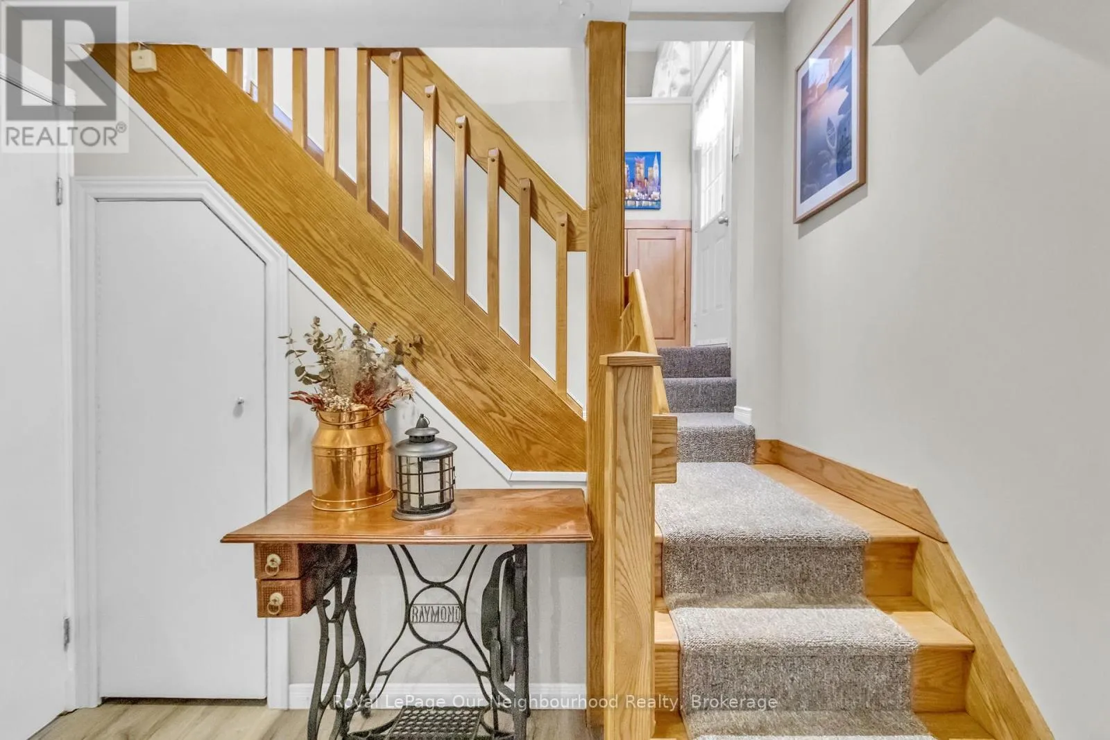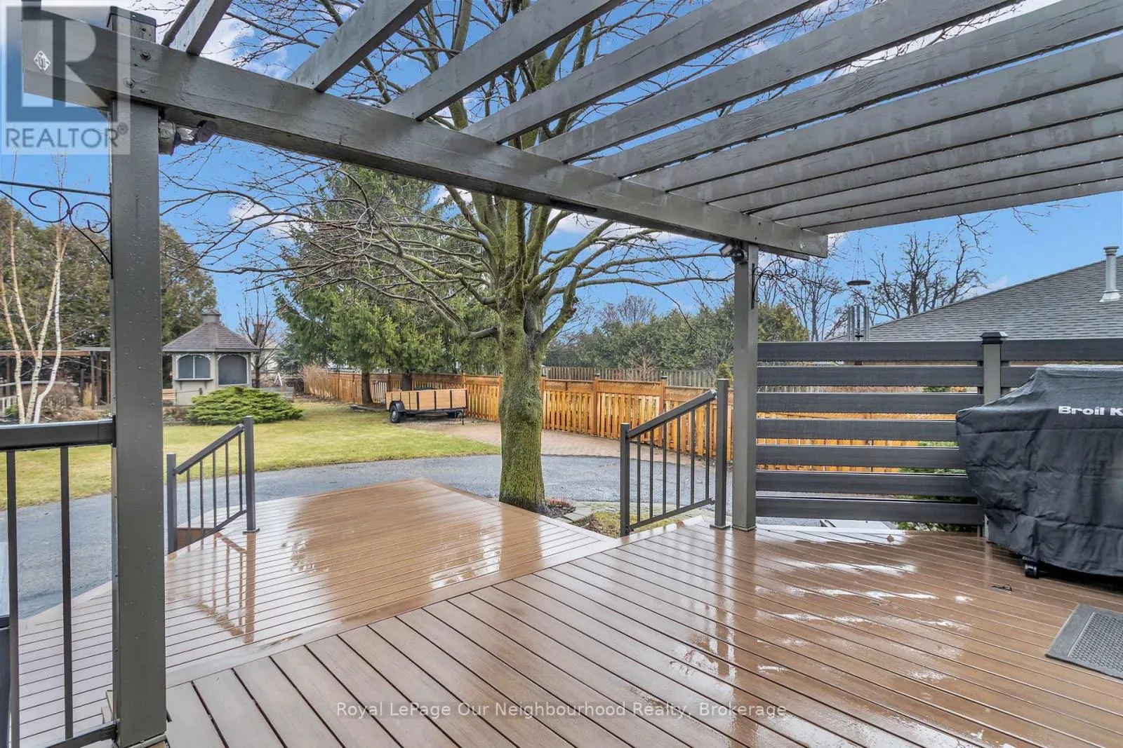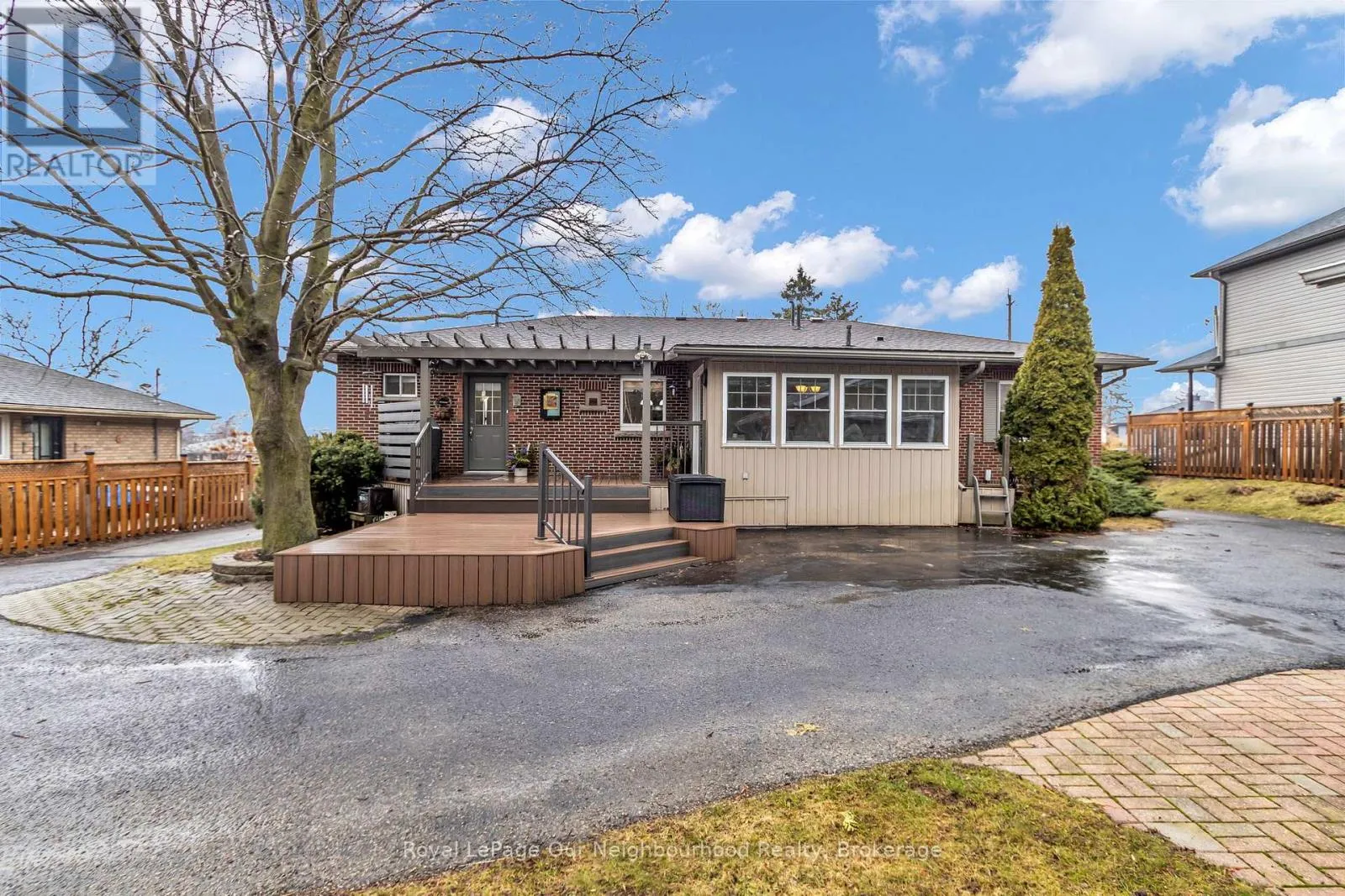 Cross Streets: Dundas and Clarke. ** Directions: Head East on Dundas Street and turn Right at Clarke St. N. A rare offering in Woodstock - where refined living meets exceptional functionality. This beautifully maintained bungalow offers 2+2 beds, 2 full baths, and a fully finished lower level, thoughtfully designed for both everyday comfort and entertaining. The main floor features a sun-filled living room with hardwood floors, while the updated kitchen showcases stainless steel appliances, an island, glass cabinetry, and generous workspace. A 4-season sunroom extends your living area and provides a seamless connection to the outdoors. The main level also includes a spacious primary bedroom with built in's, a fireplace and rotating wardrobe and a well-appointed 5-piece bathroom, and an additional bedroom-ideal for family or a home office. Convenient main floor laundry adds to the functionality and includes an insulated crawl space for additional storage below. The lower level offers a warm and inviting family room with gas fireplace, custom built-ins, and additional bedrooms-ideal for guests, extended family, or flexible living arrangements, with potential for a separate front entrance for added versatility. Step into a private backyard retreat featuring a multi-level composite deck with pergola, a covered gazebo, and tranquil pond features with koi and goldfish. Surrounded by mature landscaping, this peaceful setting attracts an array of wildlife including herons, hawks, kingfishers, and cardinals, creating a rare natural escape within the city. The detached heated garage/workshop (approx. 23'6" x 27') is a true standout-perfect for woodworkers, mechanics, hobbyists, or small business use-and can be converted back to accommodate up to 4 vehicles. A U-shaped driveway and additional rear parking provide ample space for vehicles, trailers, or equipment. This outstanding home is close proximity to parks, schools, and everyday amenities and a short distance to the 401. This has a unique blend of lifestyle, craftsmanship, and opportunity just waiting for its next owner! (id:27476)