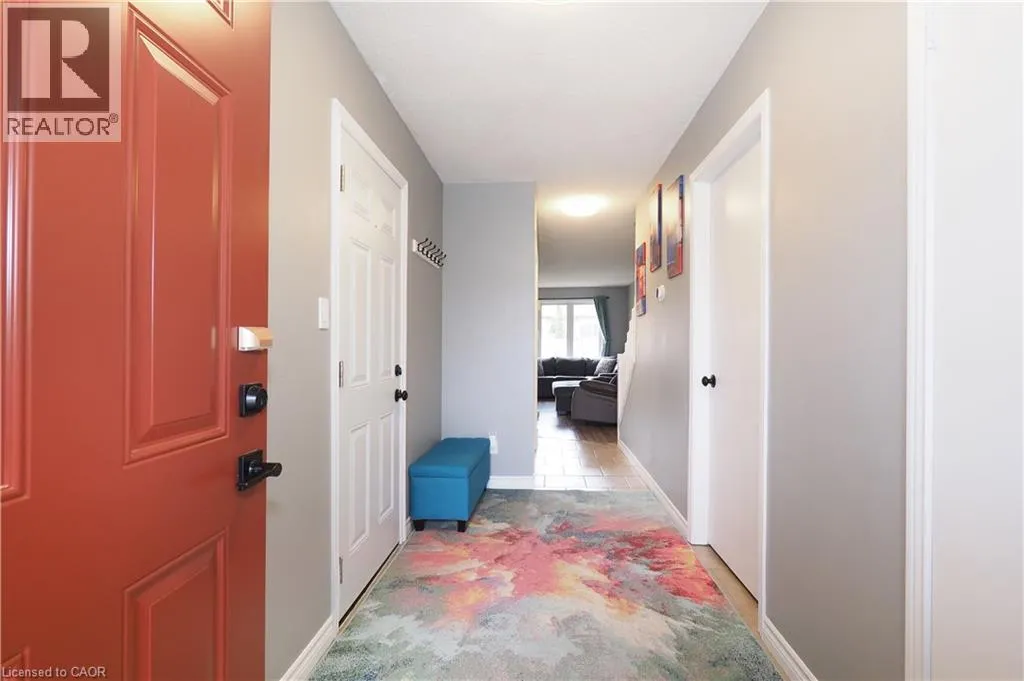 DEVONSHIRE AVE TO SPRINGBANK AVE TO HIAWATHA RD CAREFREE LIVING! Located in a QUIET family-friendly neighbourhood in coveted Woodstock's north end, and close to parks, trails, Conservation areas, shopping, 401 access and the Toyota plant â this beautiful 3 bedroom, 1 and 1/2 bath home with an attached garage is a perfect fit for first-time buyers, investors, or small families! You'll appreciate the inviting and efficiently designed kitchen that boasts ample cupboards and counter space and is situated next to the intimate dining area overlooking the sunny deck and pretty yard. The open-concept living room radiates hospitality and charm and is highlighted by a cozy gas fireplace. A convenient 2-piece powder room and welcoming foyer with access to the garage complete this level. Upstairs you will find 3 generously sized bedrooms with large closets for ample storage, and an attractive and updated 4-piece bath. The spacious primary bedroom has a walk-in closet and shared ensuite access. The basement features a spacious laundry room and plenty of storage options and potential for a rec room, home gym, media room or playroom. Bathrooms and appliances updated in 2021. Front screen door, front door and sliding glass door replaced in 2024. Roof replaced in 2025. SO MUCH SPACE! (id:27476)