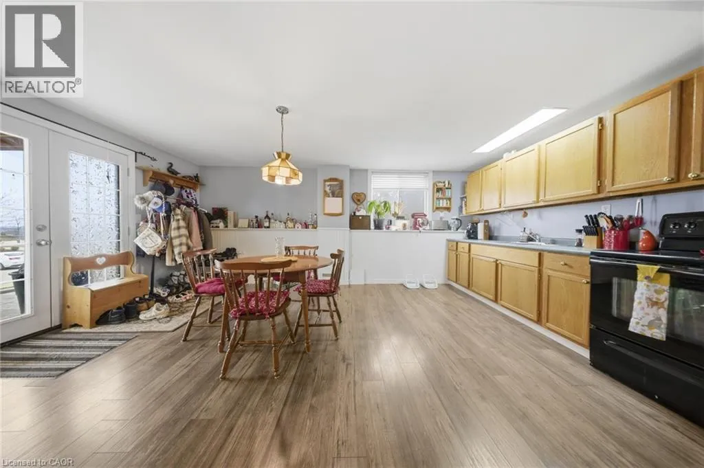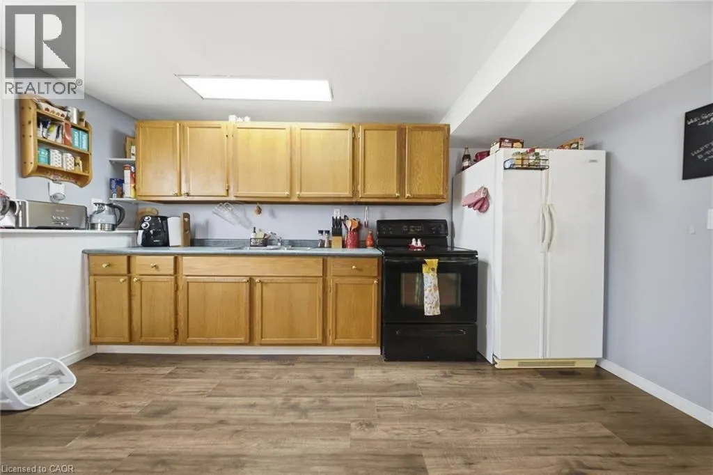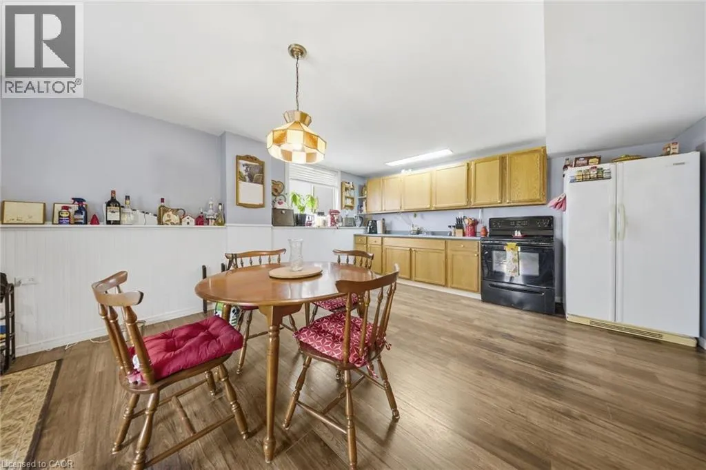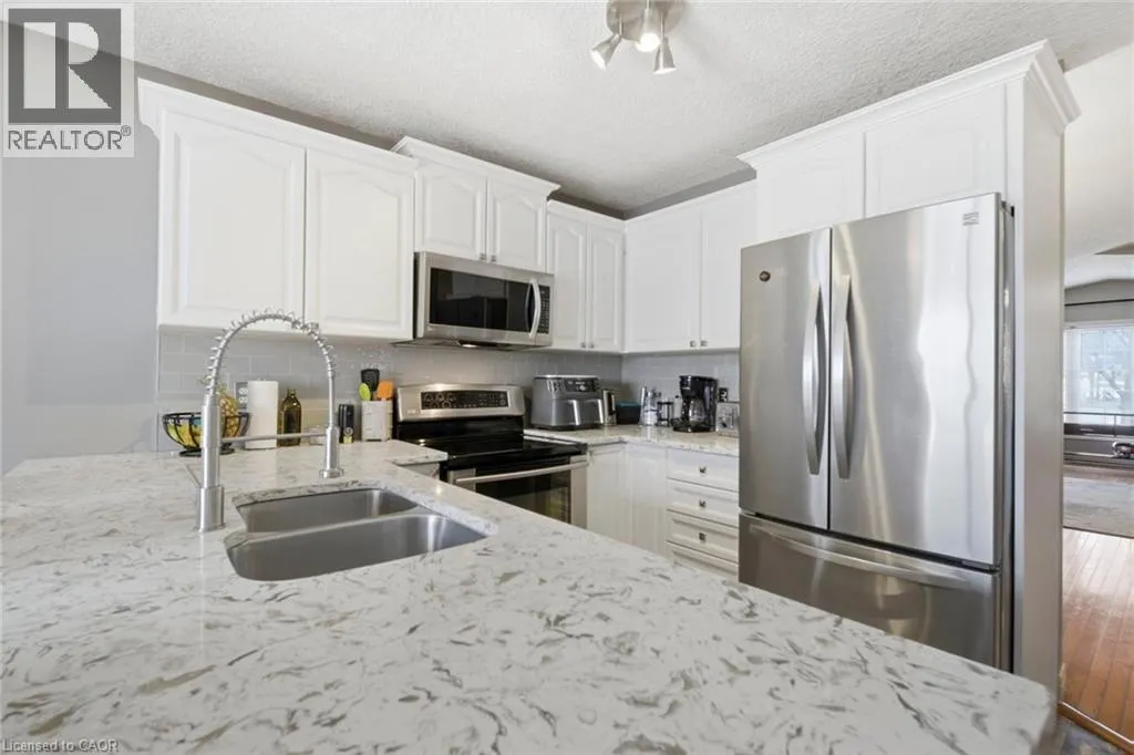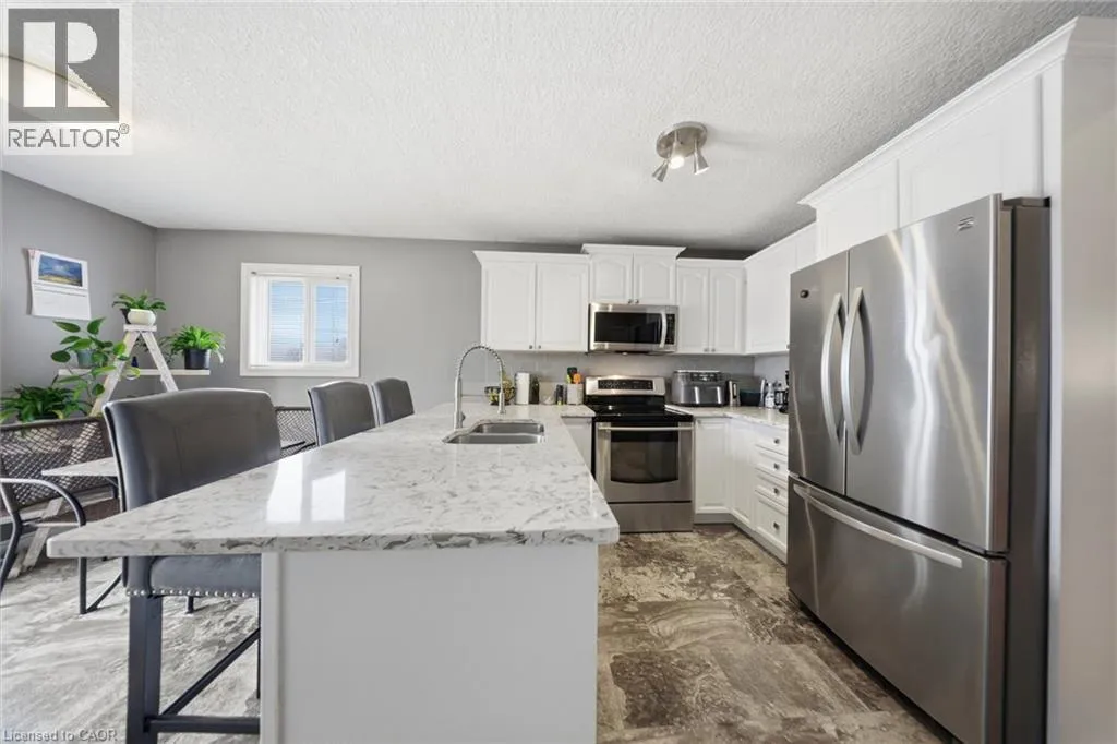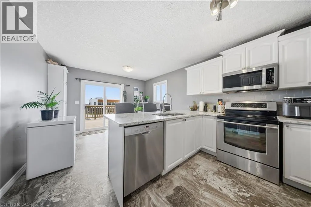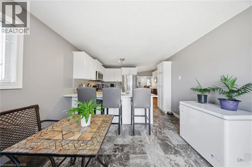 MILL ST TO ATHLONE TO STONEGATE DR Welcome to 858 Stonegate Dr., a beautifully maintained walkout bungalow in Woodstockâs highly desirable south end. The main level offers 3 bedrooms, a 4-piece bathroom, and an open-concept living and dining area enhanced by hardwood flooring and soaring ceilings. The beautifully updated eat-in kitchen (2020) walks out to the upper deck, creating an ideal space for everyday living and entertaining. The fully finished walkout basement adds exceptional versatility with an in-law suite featuring an open-concept kitchen and family room with built-ins, oversized windows, 1 bedroom with a massive walk-in closet, and a 3-piece bathroom. Shared laundry and patio doors lead to the professionally finished rear yard with interlock patio (2020) and firepit. Extensive updates include a refinished kitchen (2022), A/C (2020), interlock walkways and patios (2020), steel roof with lifetime warranty (2019), front retaining wall and seating area (2018), furnace (2016), water softener (2016), and tankless water heater (rental, 2016). A true turnkey opportunity for first-time buyers, multi-generational families, or investors, ideally located just seconds to Highway 401, Woodstock Hospital and within minutes to shopping, and everyday amenities. (id:27476)