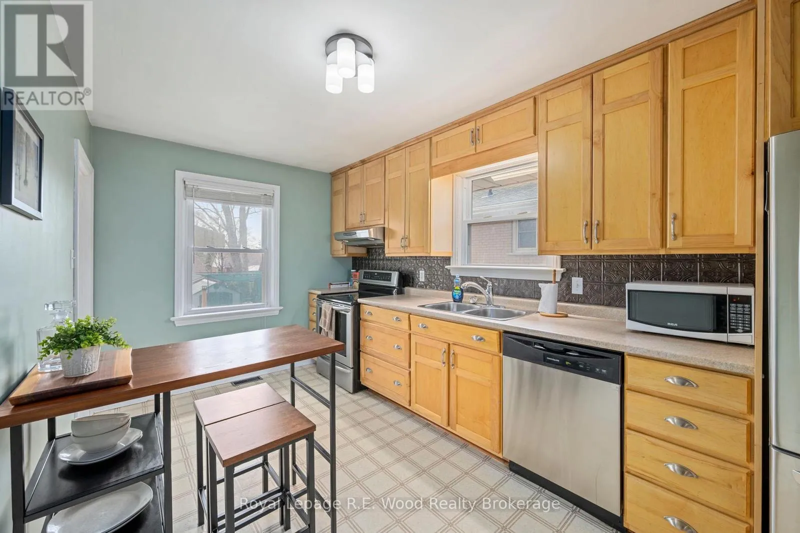 Cross Streets: Devonshire Ave. ** Directions: Heading North on Huron Street, the home is on the right (West) side of the road. Set in a quiet, established neighbourhood, 526 Huron sits just steps from Roth Park, the Thames River, and scenic trail systems. Along with the great lifestyle this location can offer, the home provides exceptional value and a dependable build quality this era of home is known for. The 3-bedroom, 2-bathroom (1+1) home blends character and function with original hardwood floors, arched entryways, refreshed kitchen cabinetry, and updated appliances. The layout offers comfortable everyday living with space to gather, while the sprawling back deck and 3-season sunroom extend your living outdoors, ideal for entertaining or unwinding after a day on the trails. Recent exterior improvements add both value and versatility, including a paved driveway, concrete walkway, and hardscaping surrounding a poured concrete pad-perfectly suited for a golf net simulation setup. A great opportunity to own, and improve a well-kept home in a location that continues to attract buyers looking for connection to nature, a family-friendly setting, and proximity to everyday amenities. (id:27476)
